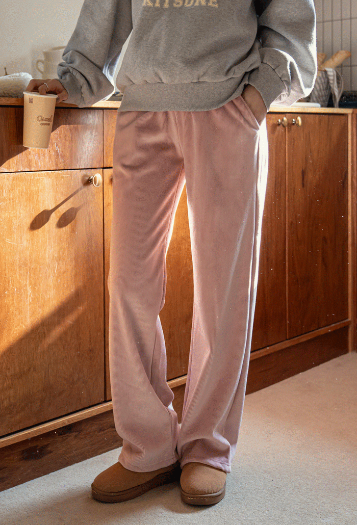 Wide knit pants to enjoy warmth -