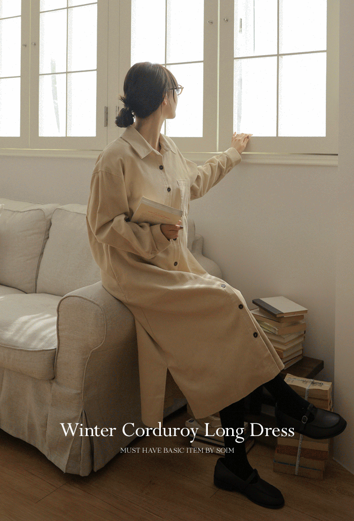 - [S-made] Maternity*Thick Golden Pocket Long Shirt Maternity Dress