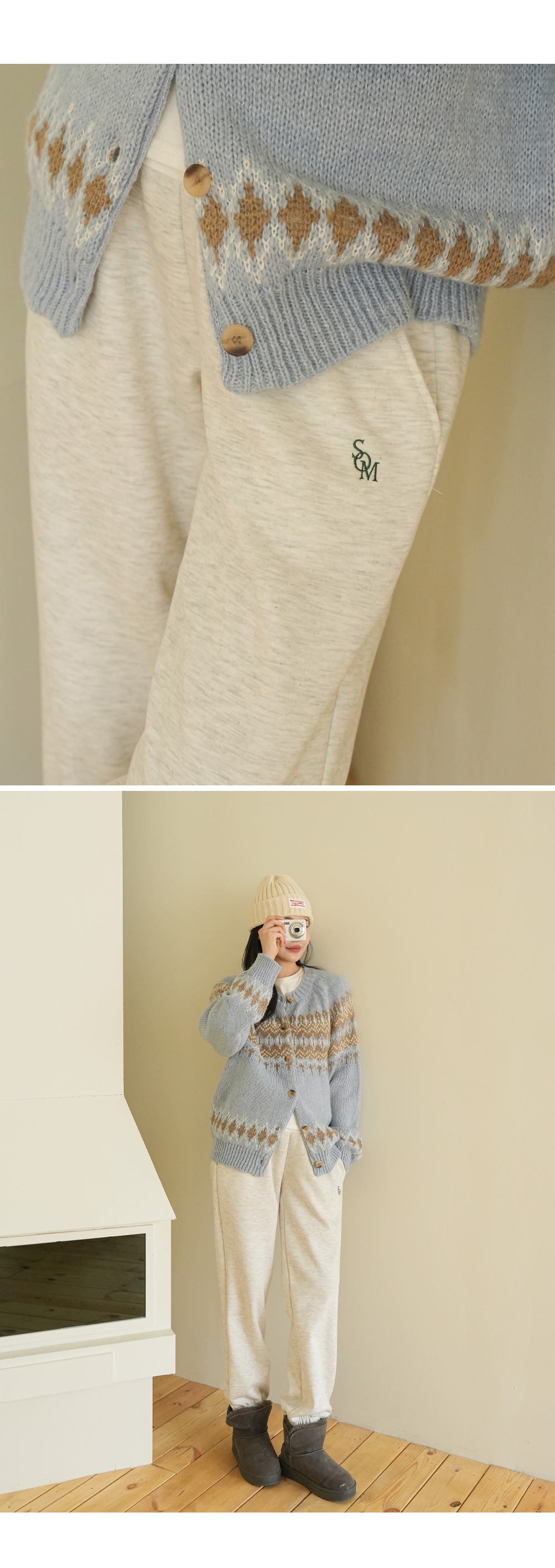 기존 조거팬츠 디자인에서 자수가 추가되어
