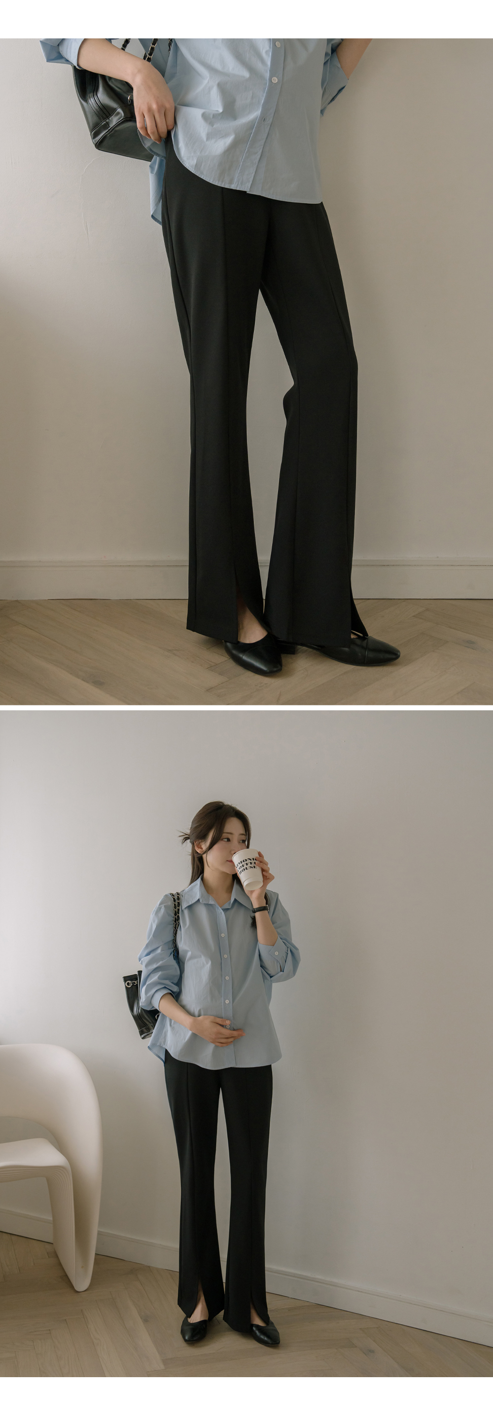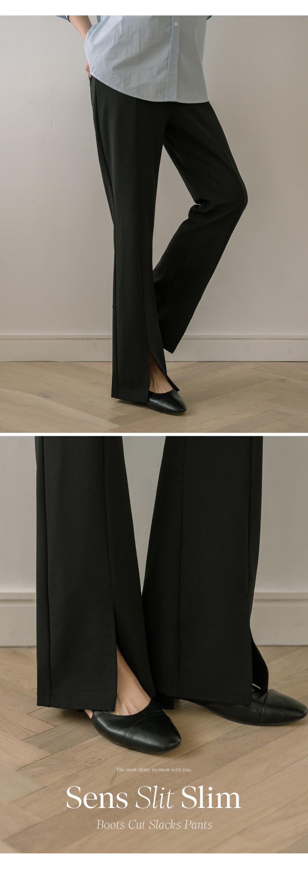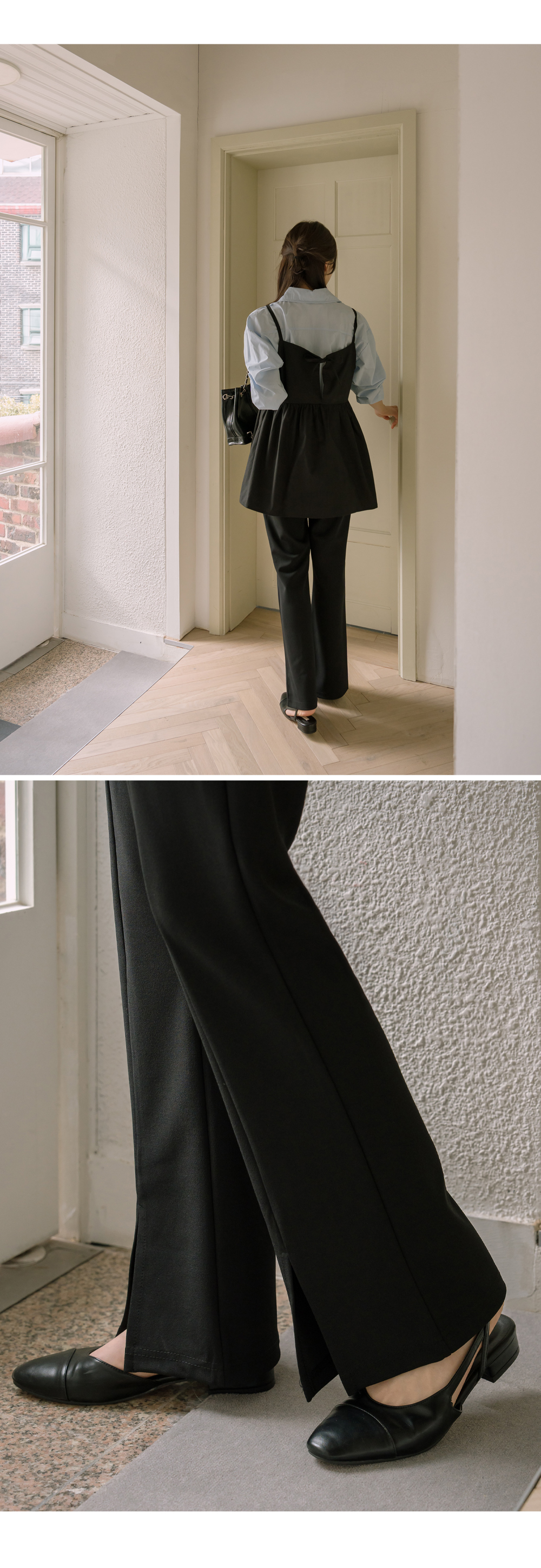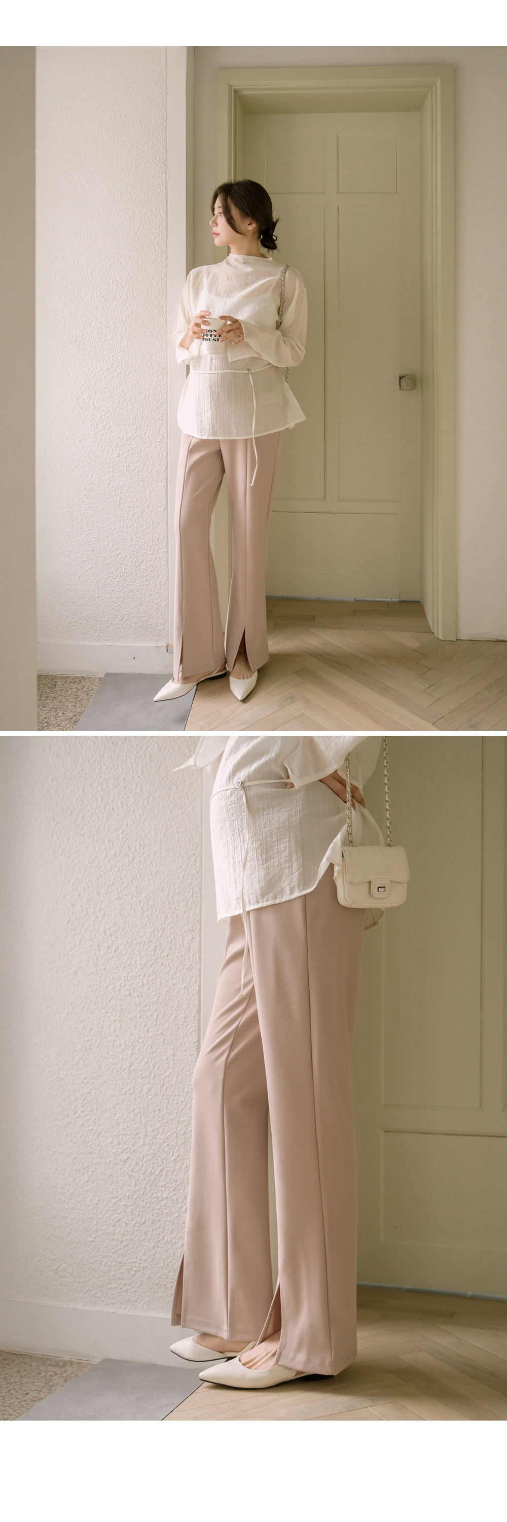 슬릿 와이드 부츠컷 팬츠"