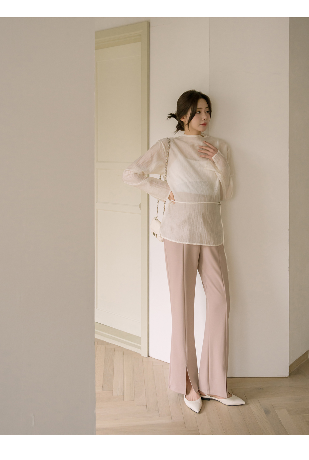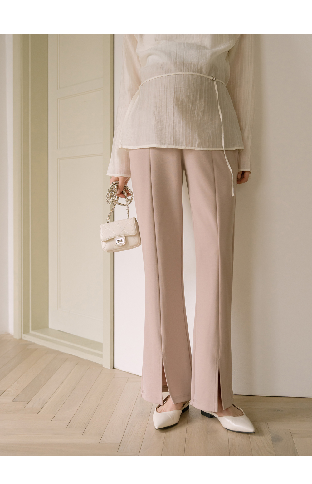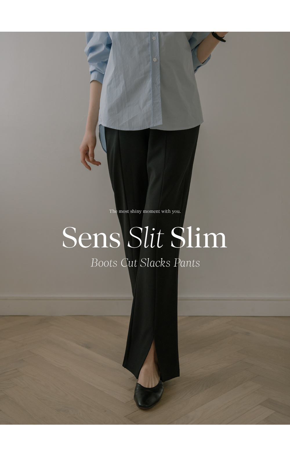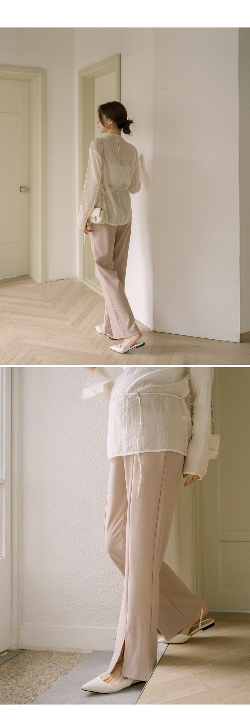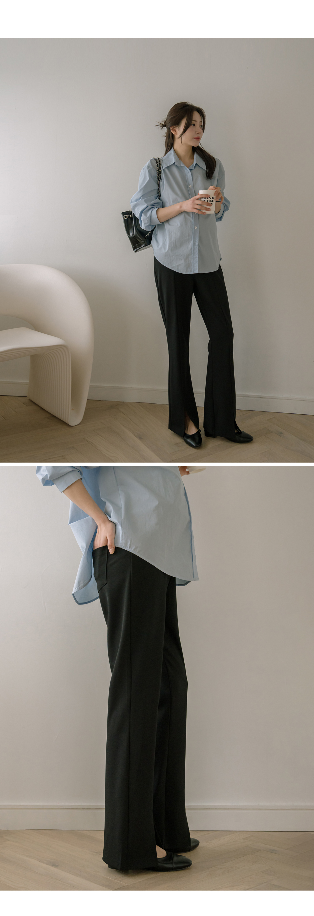 슬릿 와이드 부츠컷 팬츠"