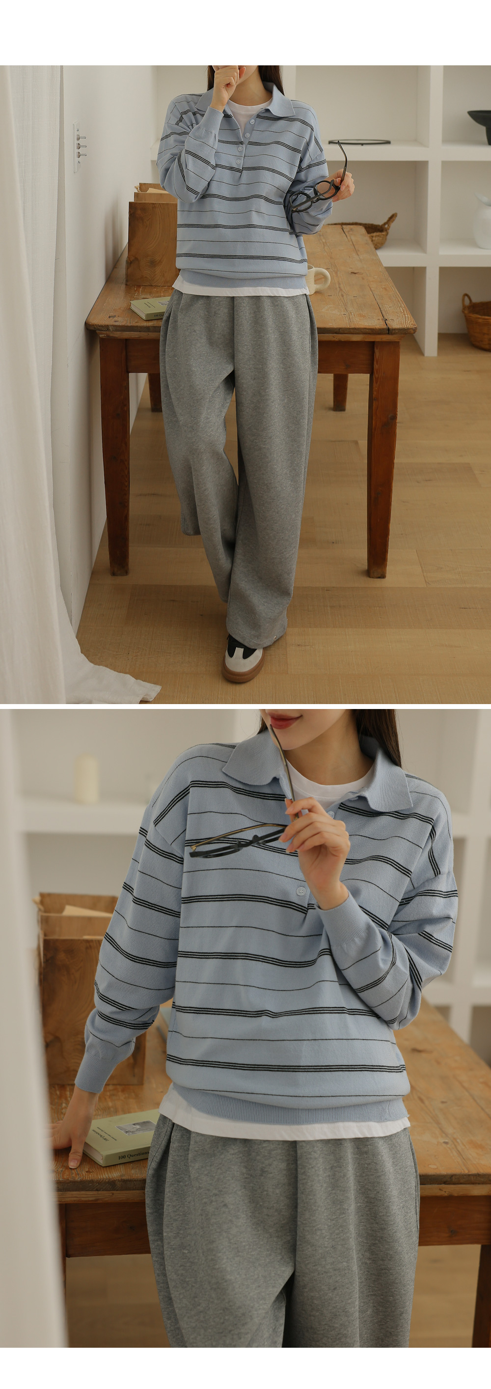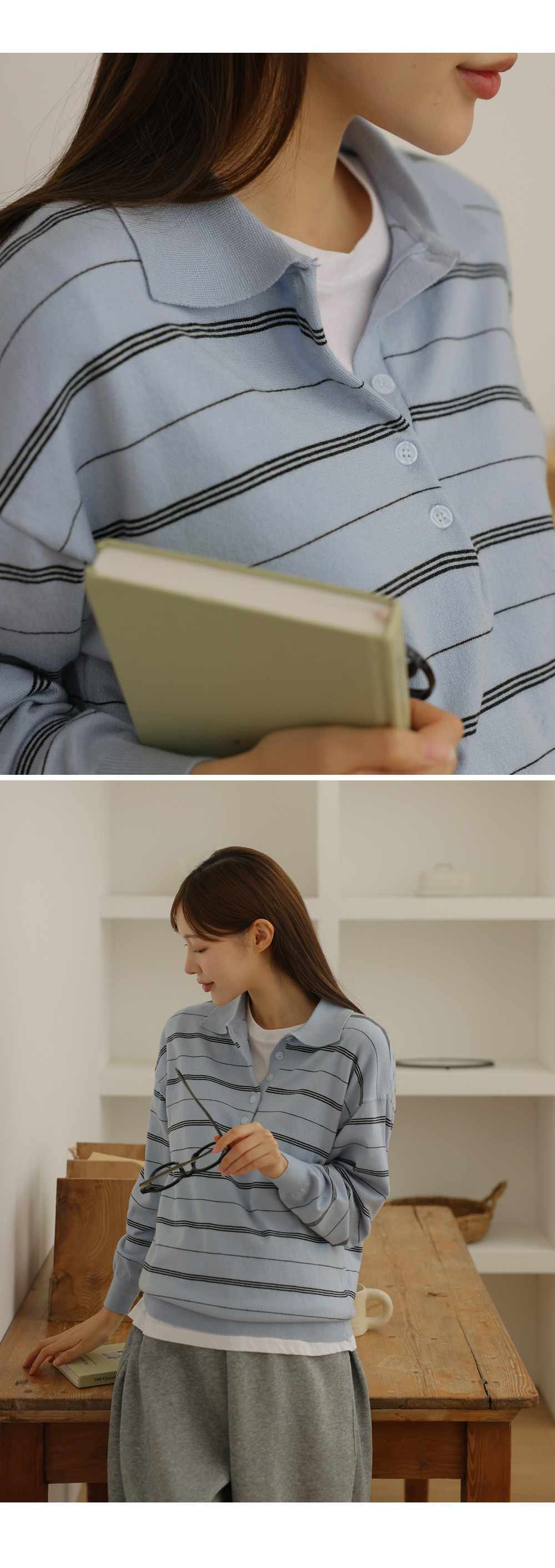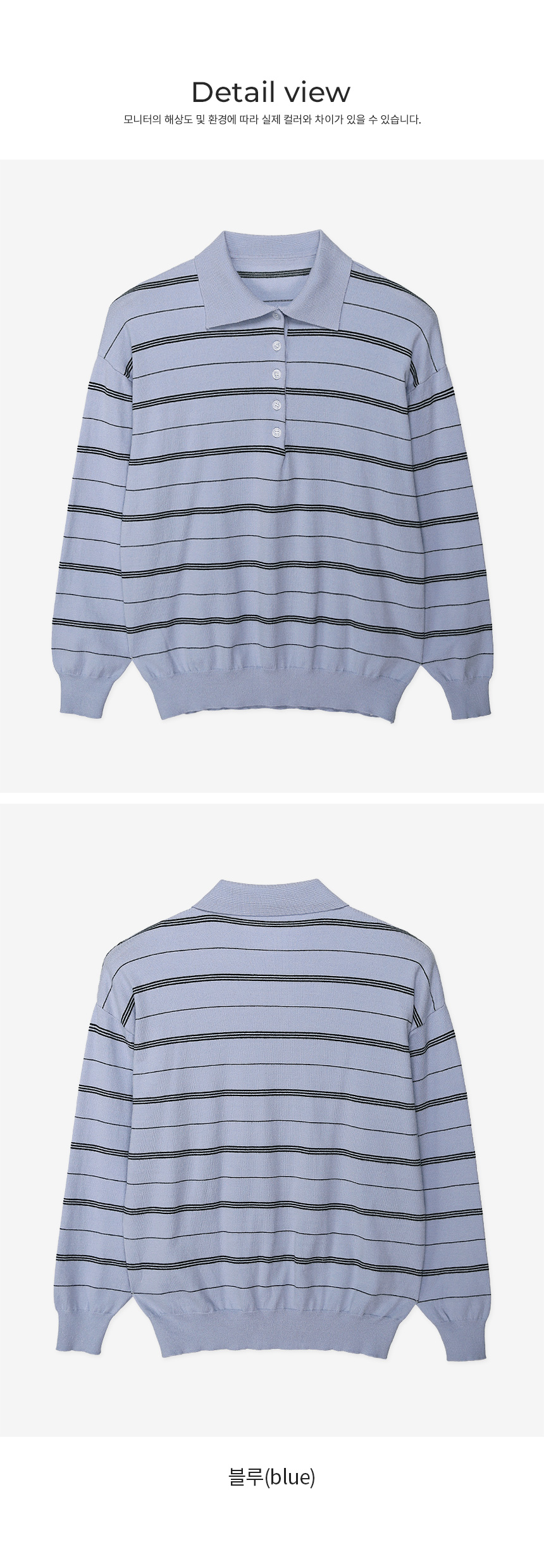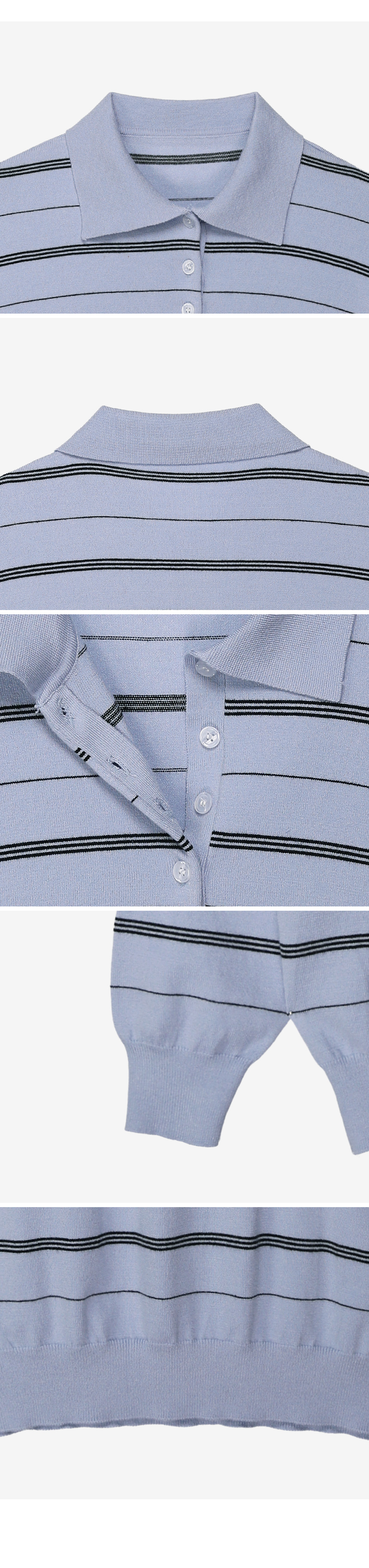 - 카라넥과 얇은 스트라이프 패턴으로