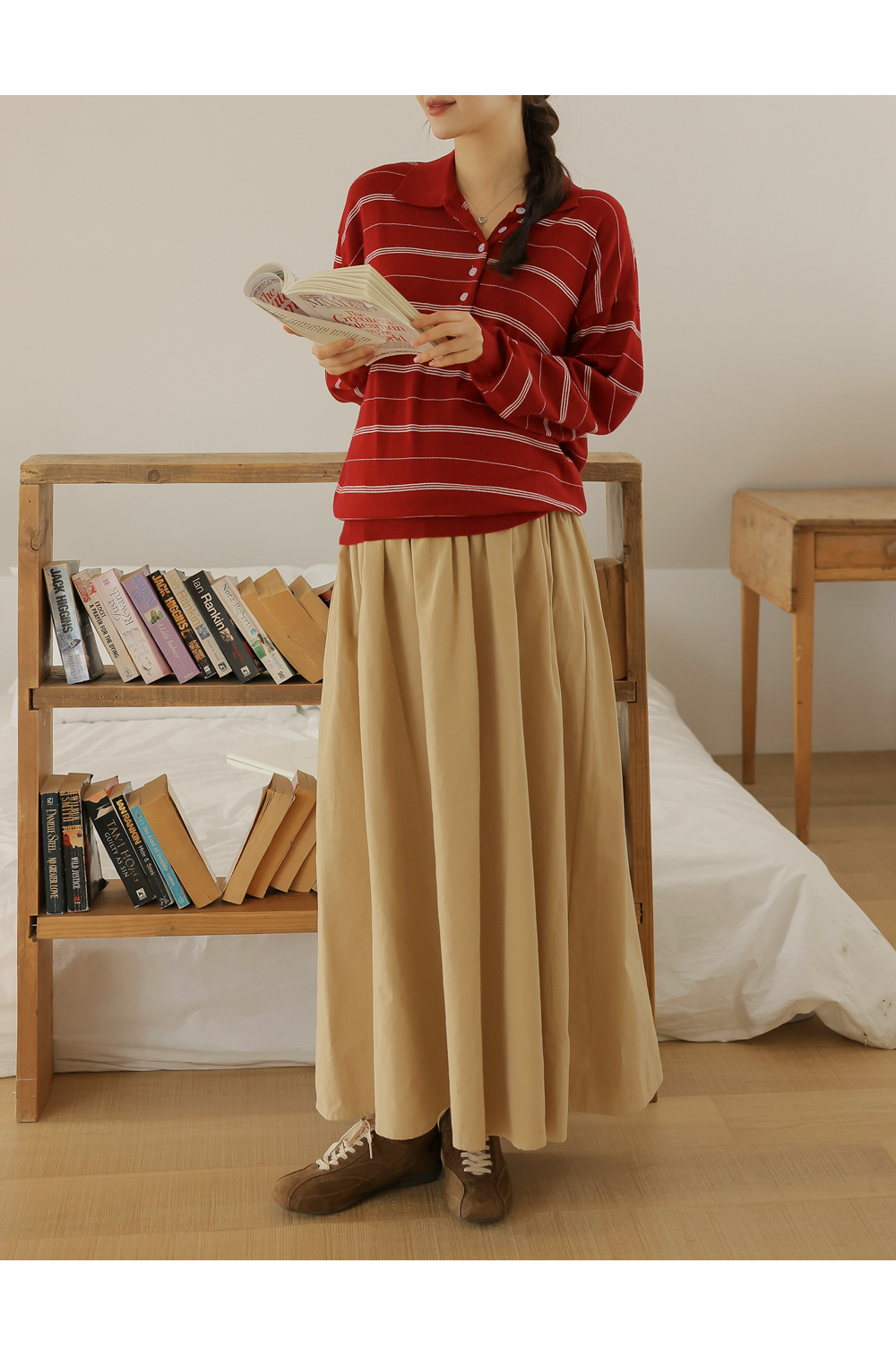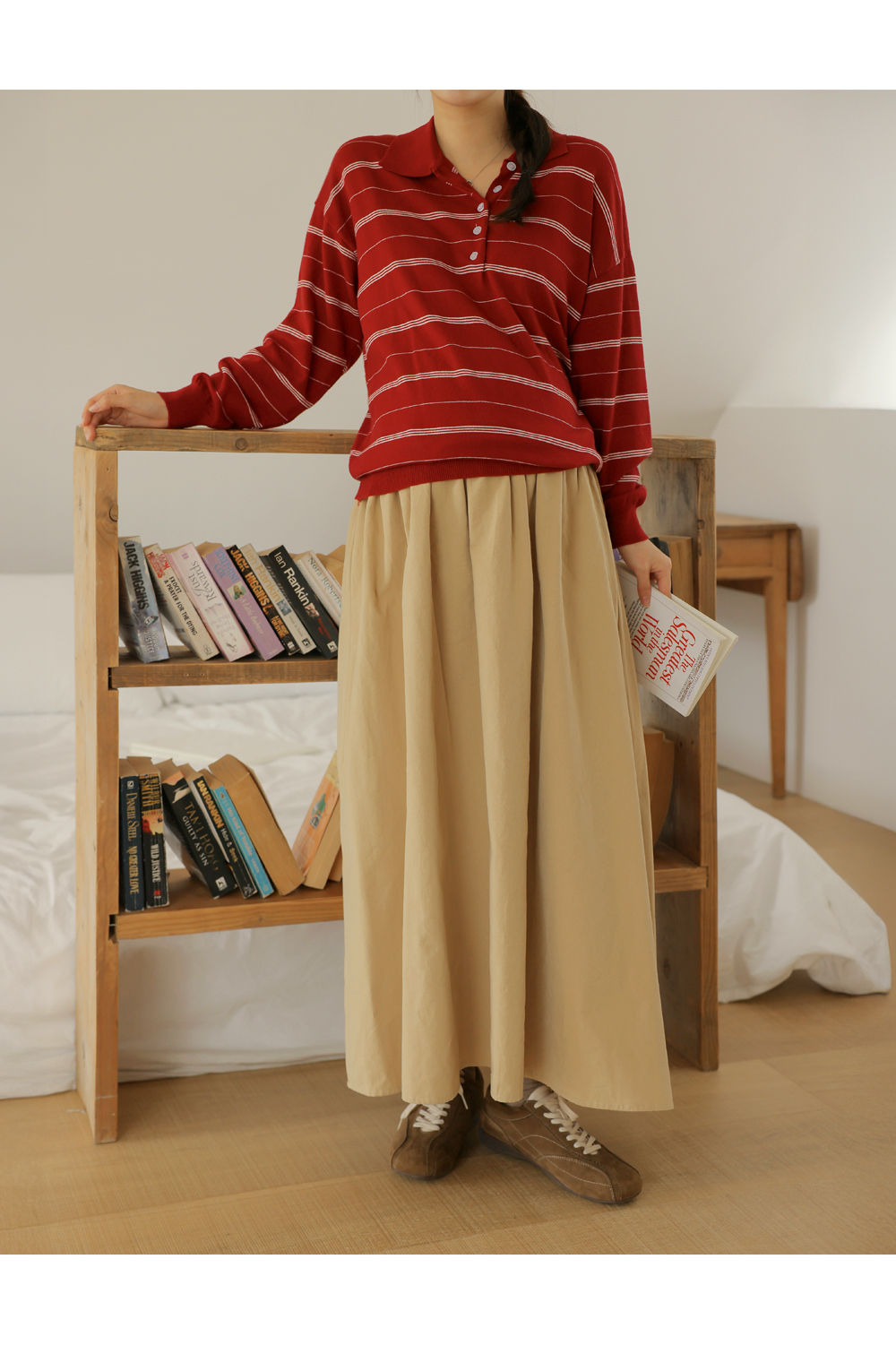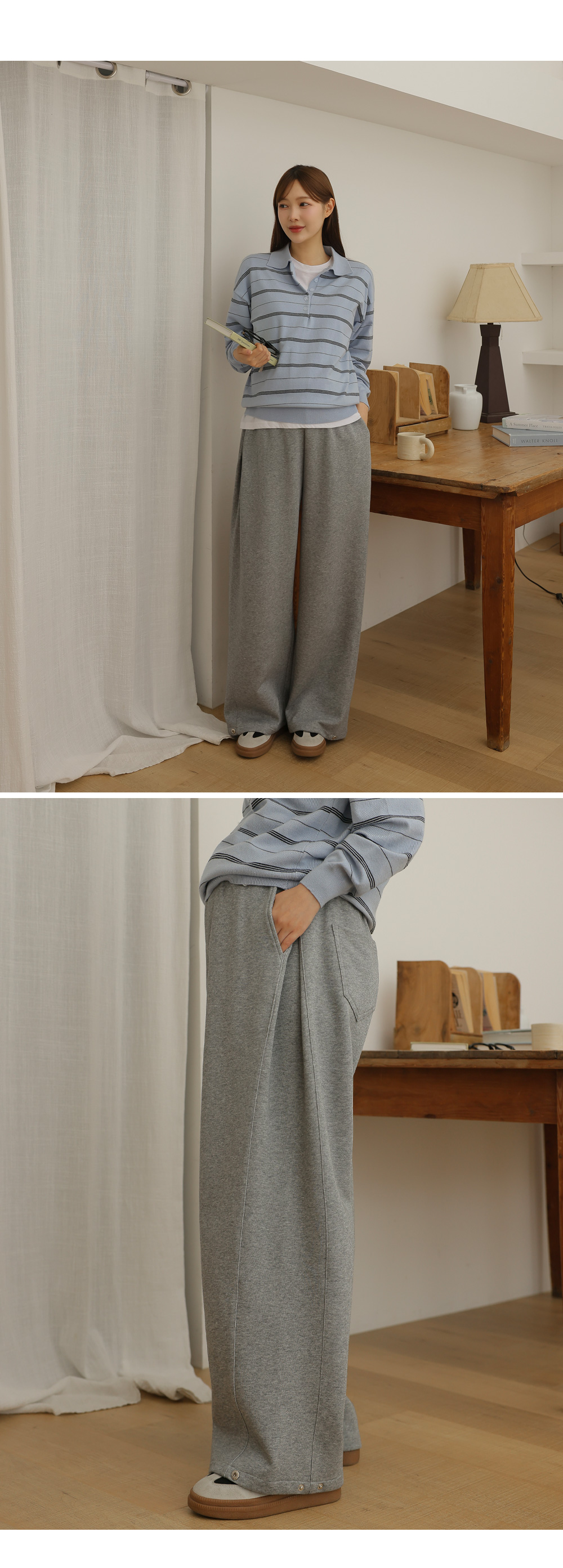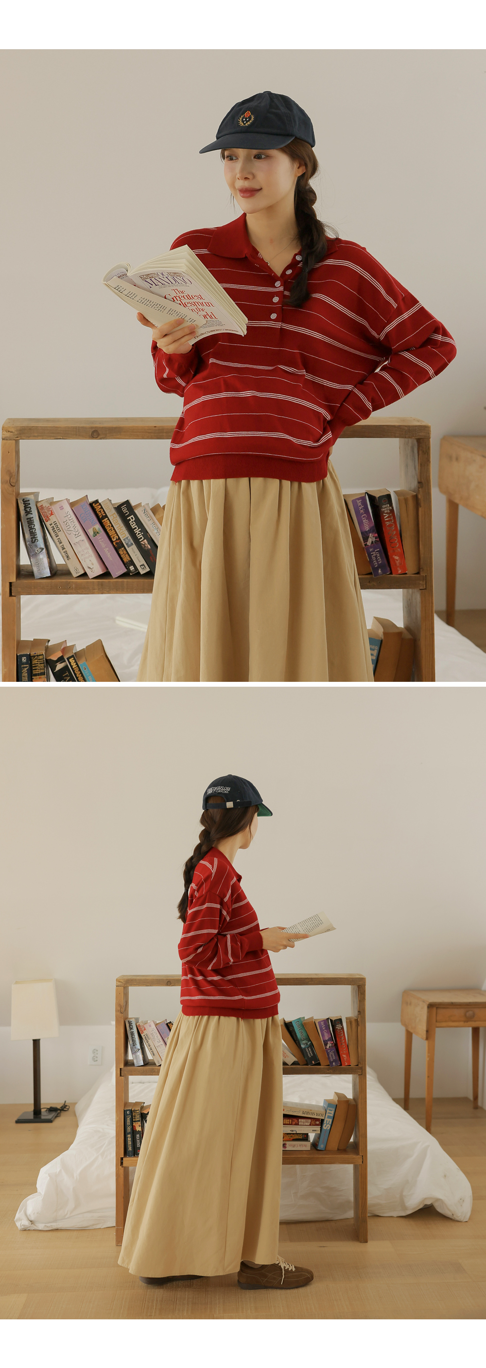 - 카라넥과 얇은 스트라이프 패턴으로