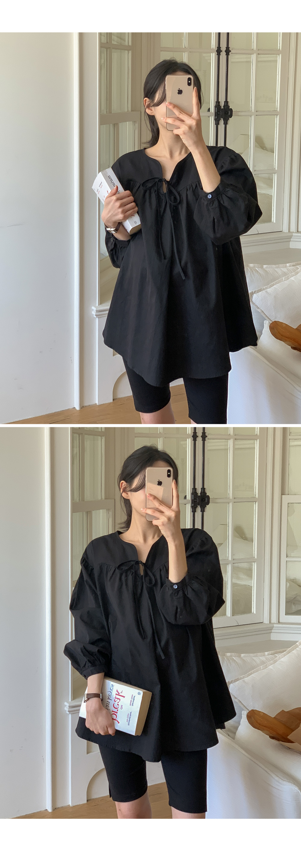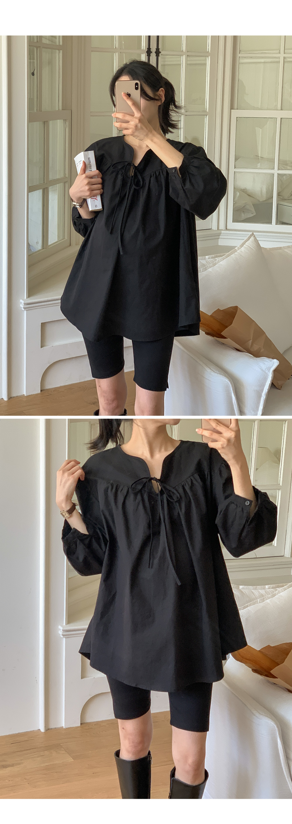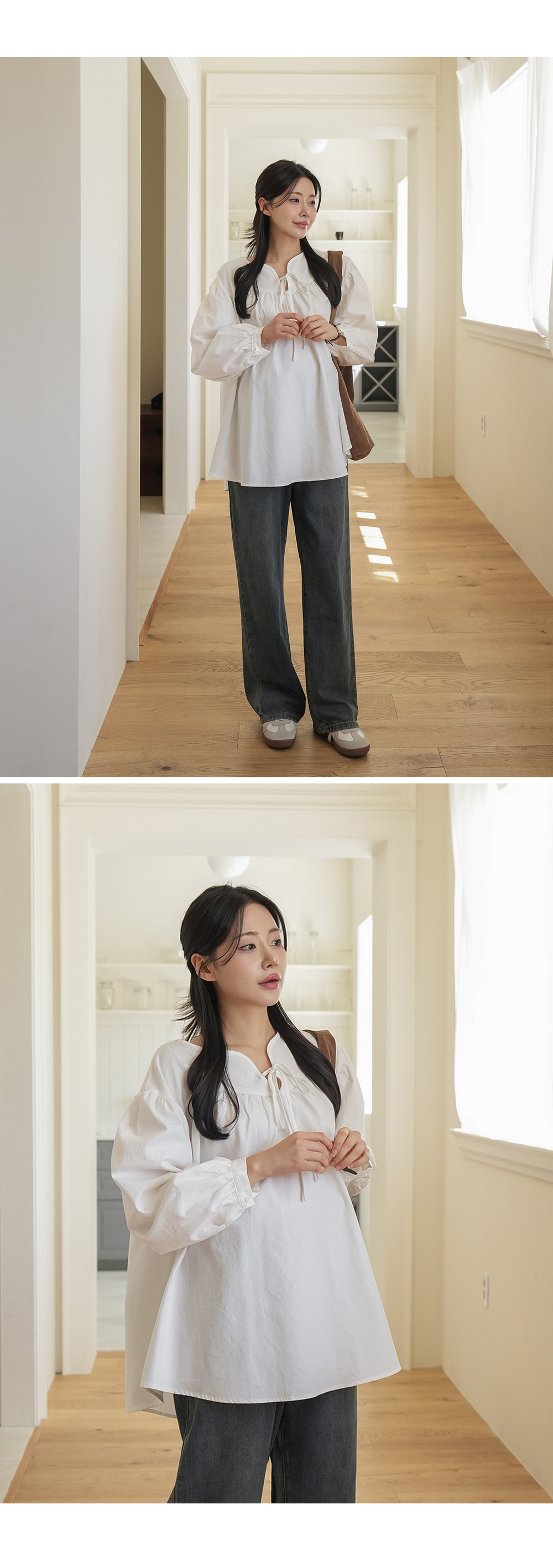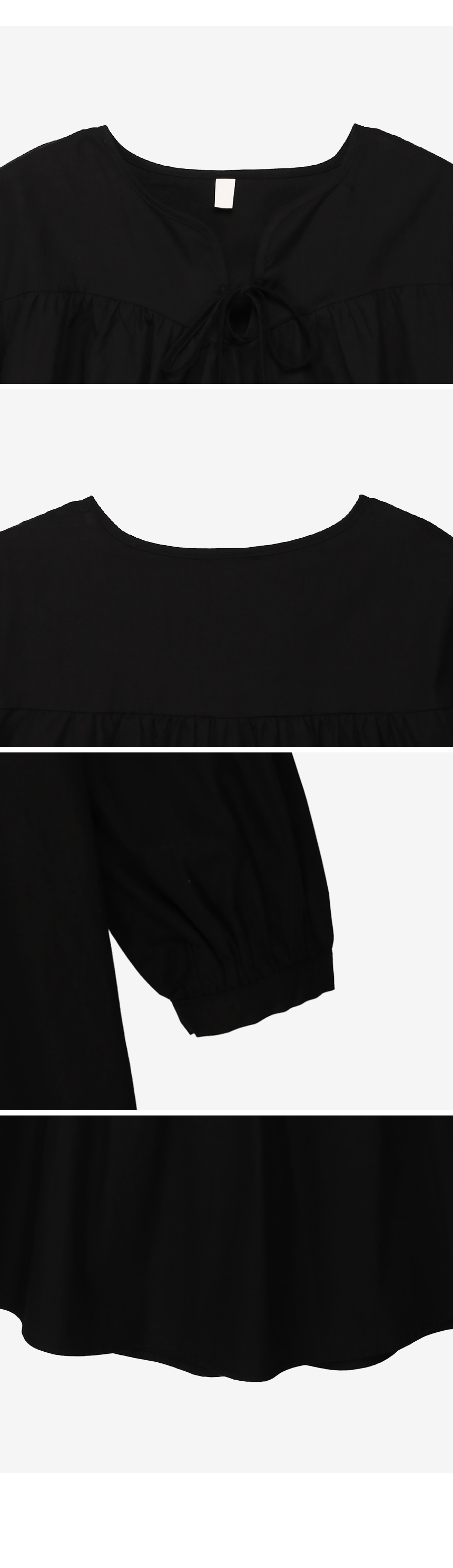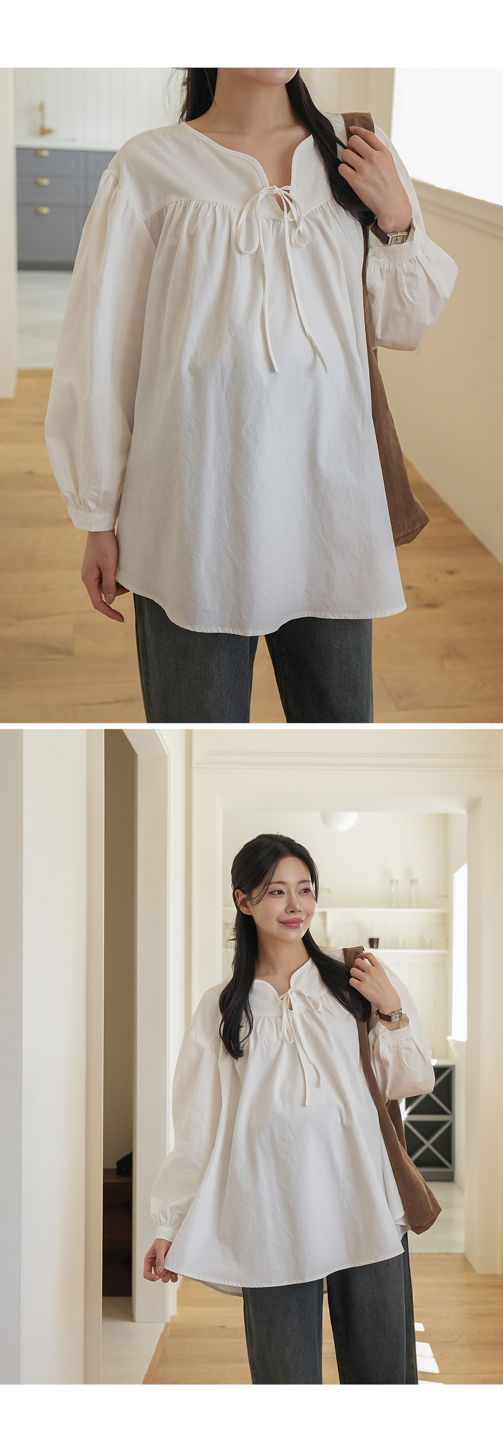 -네크라인의 리본과 은은한 셔링이 여성스러운 무드를