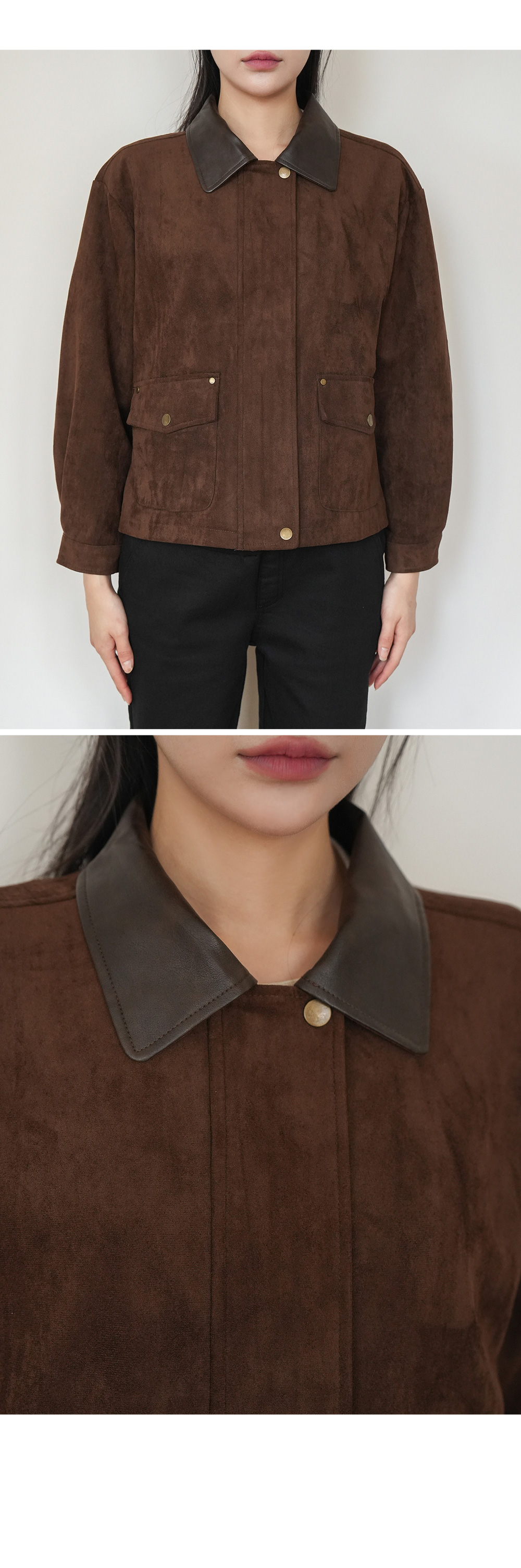배색 레더 카라가 더해져