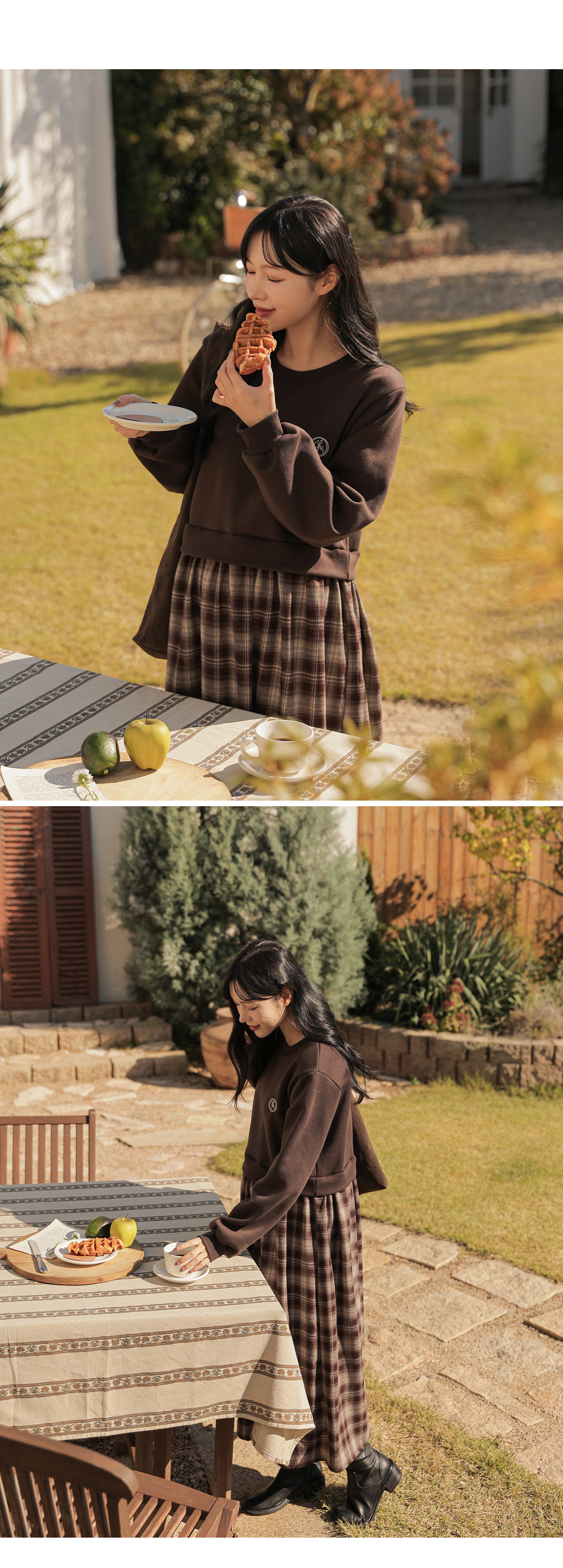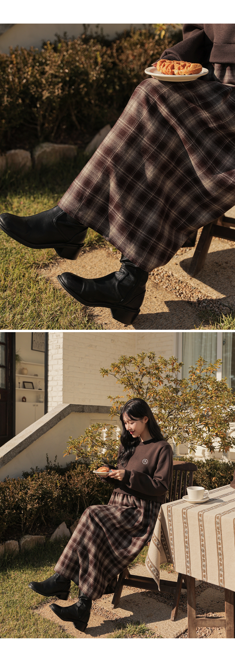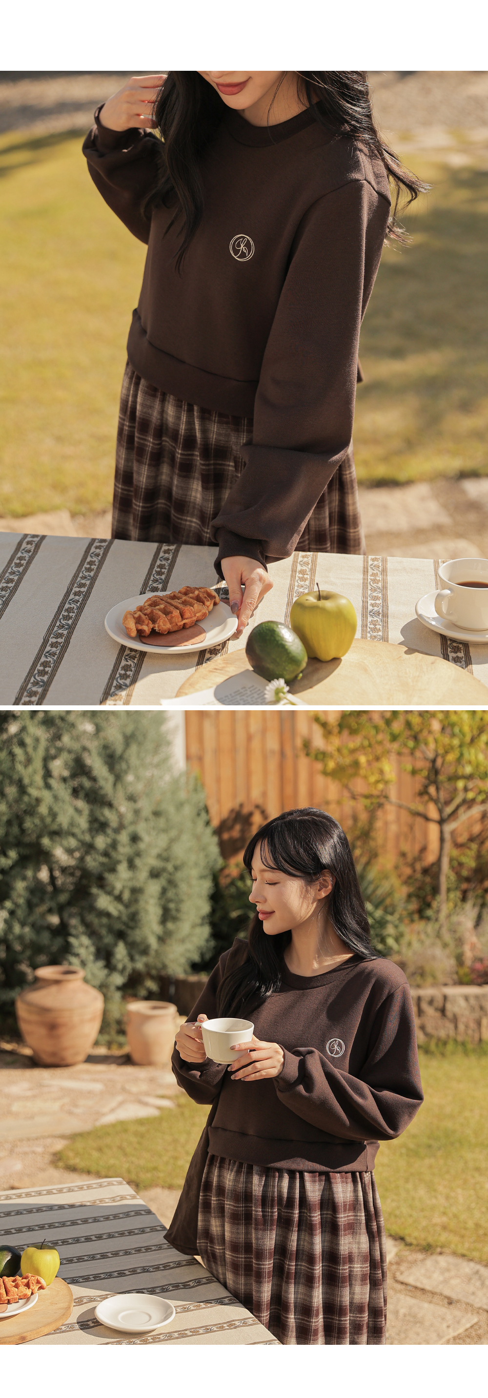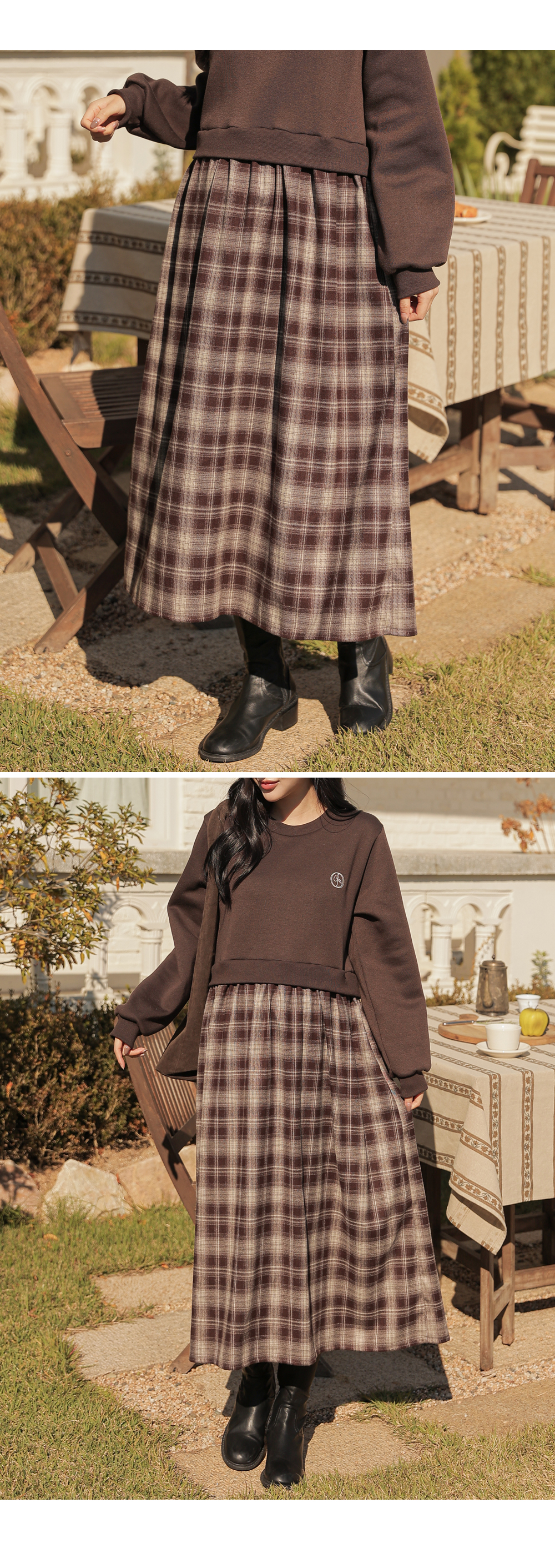 Warm fleece man-to-man and check skirt meet