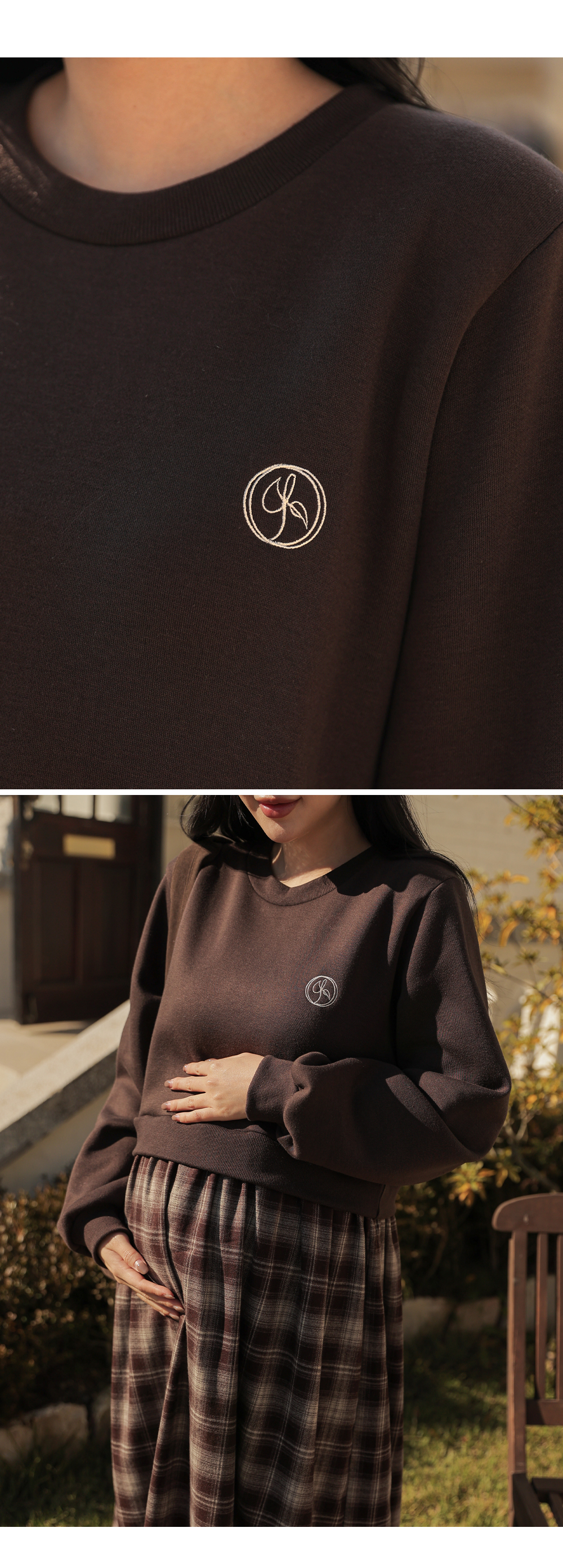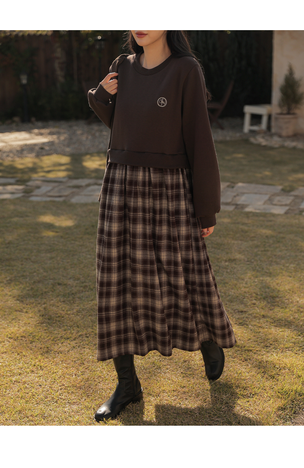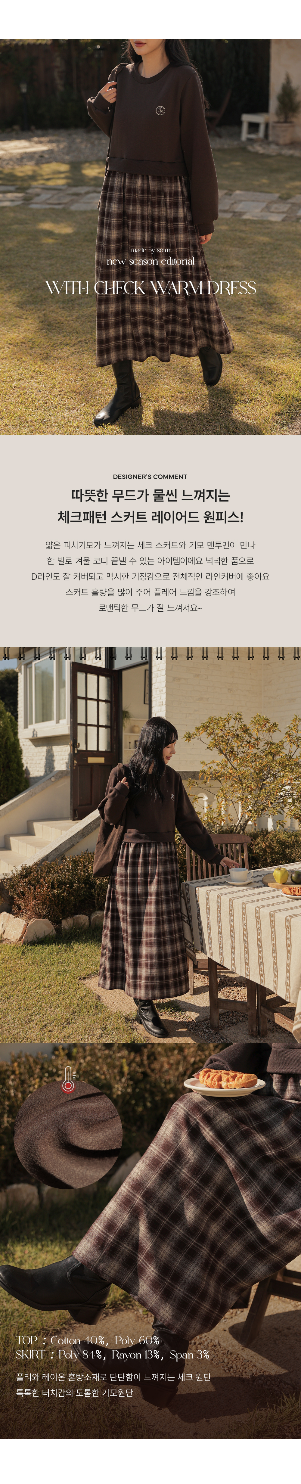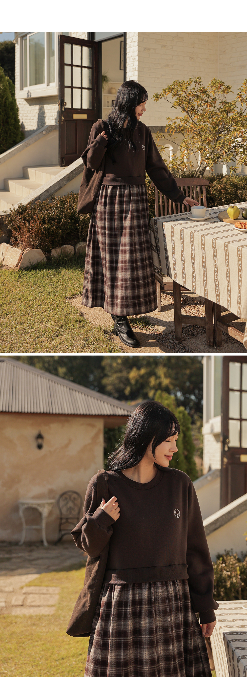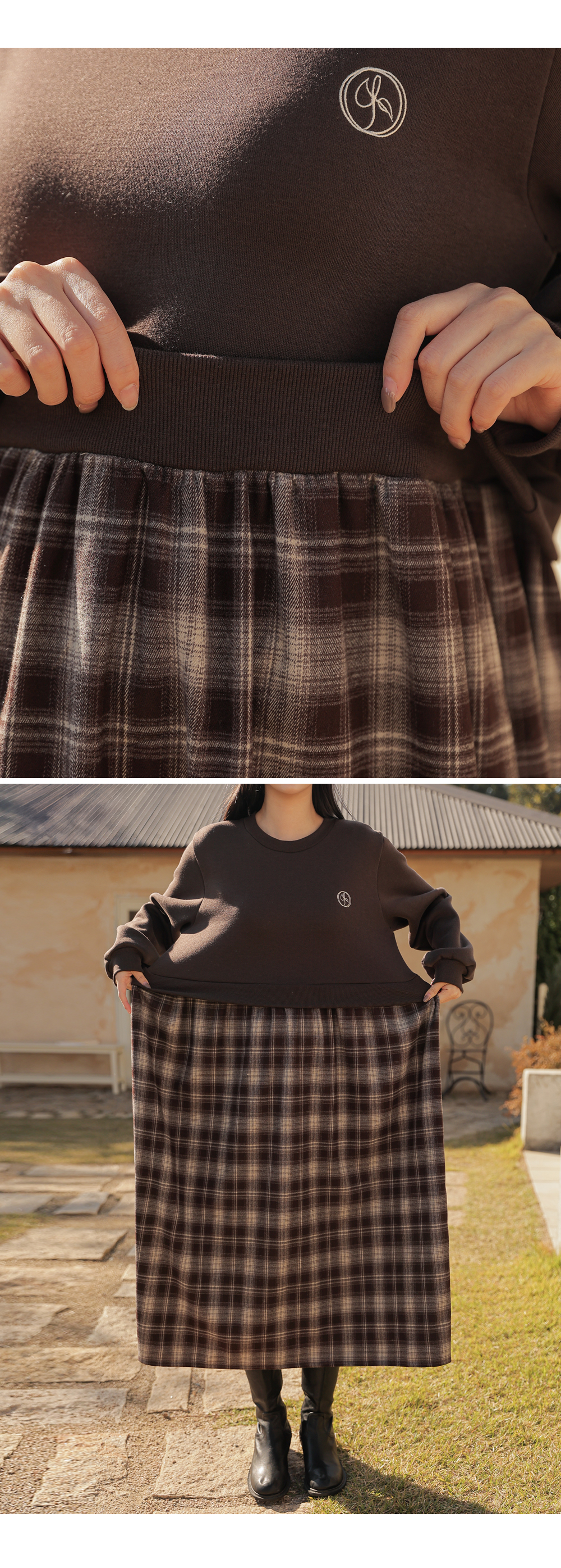 Warm fleece man-to-man and check skirt meet