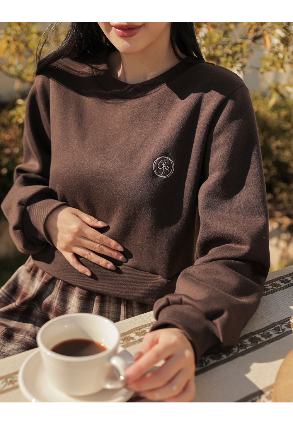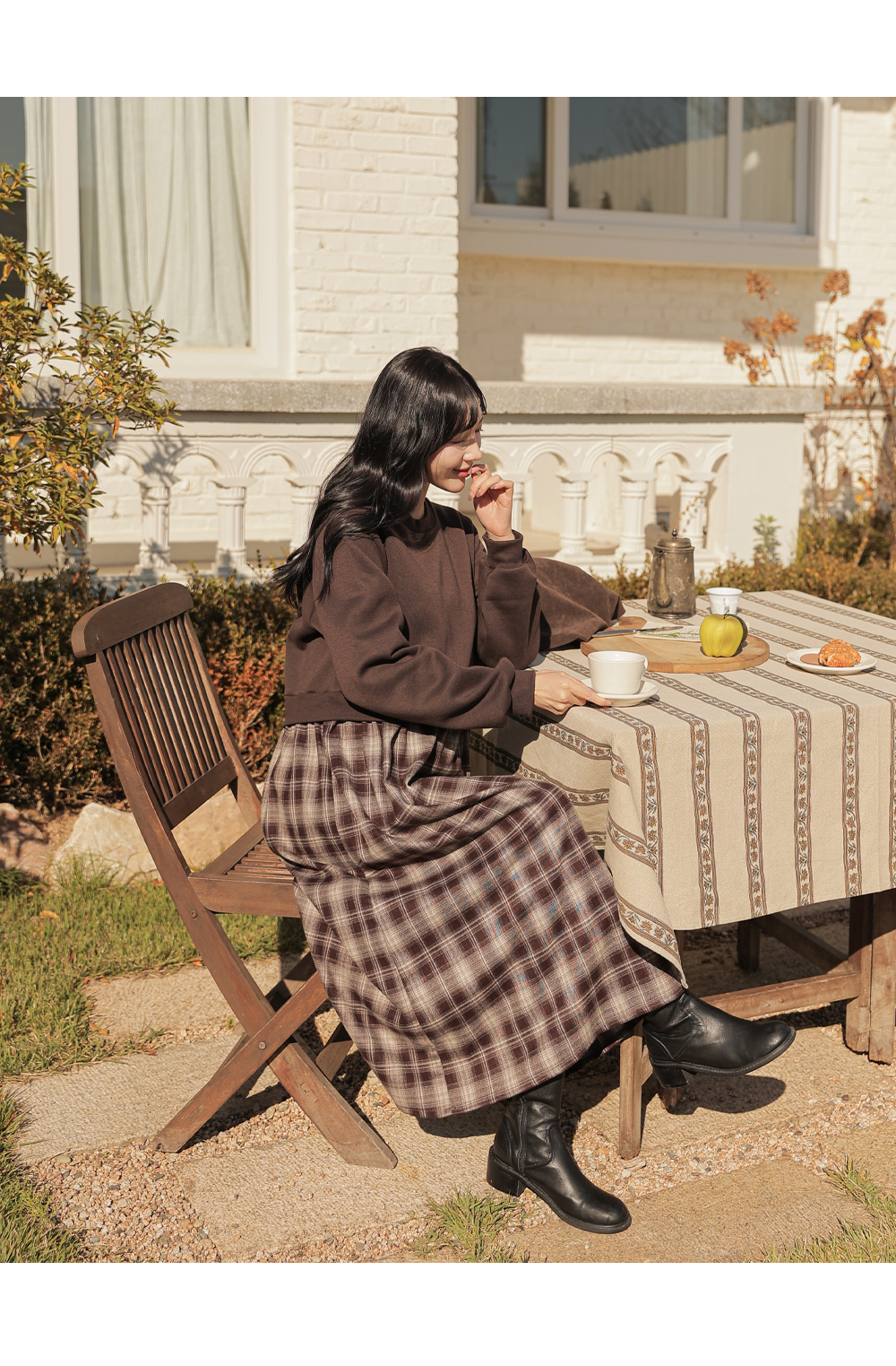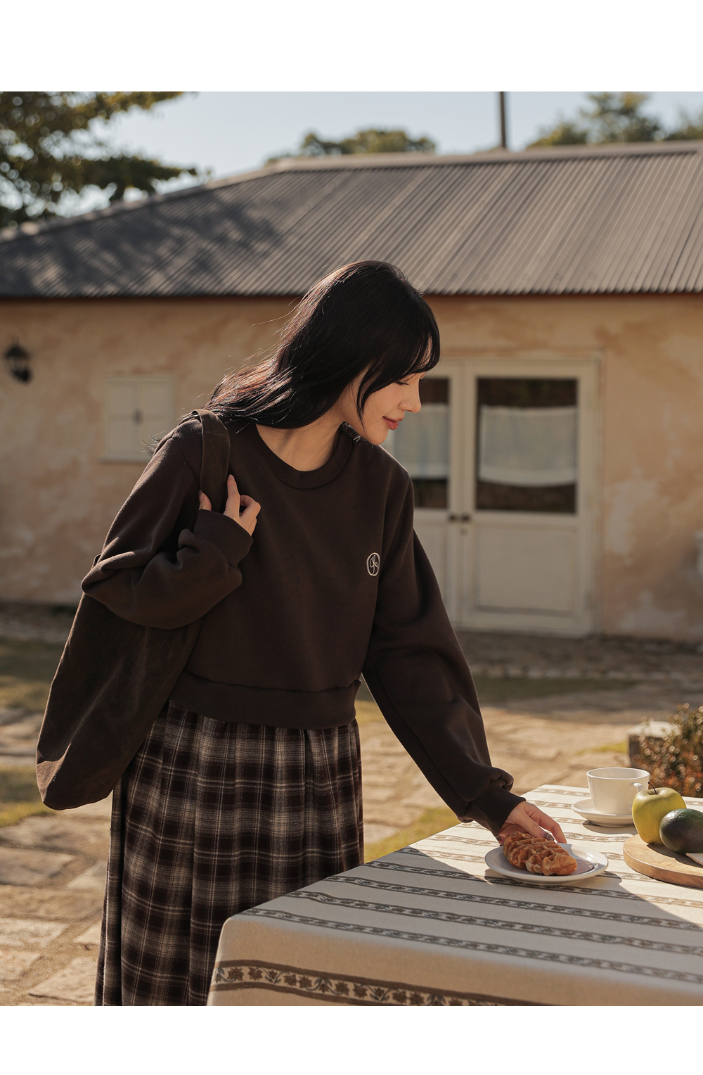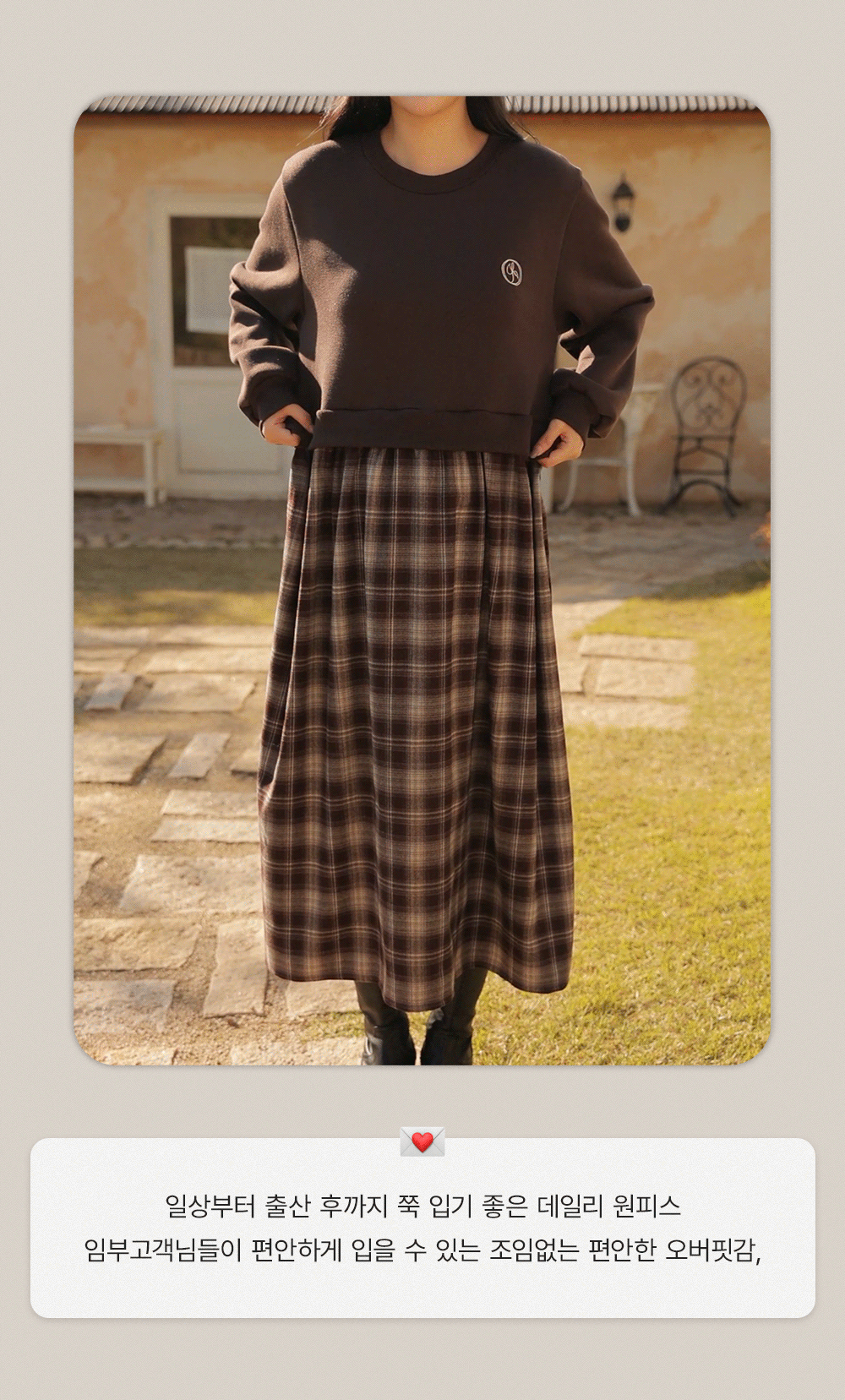 Warm fleece man-to-man and check skirt meet