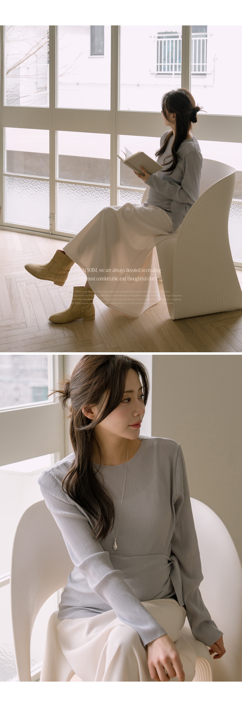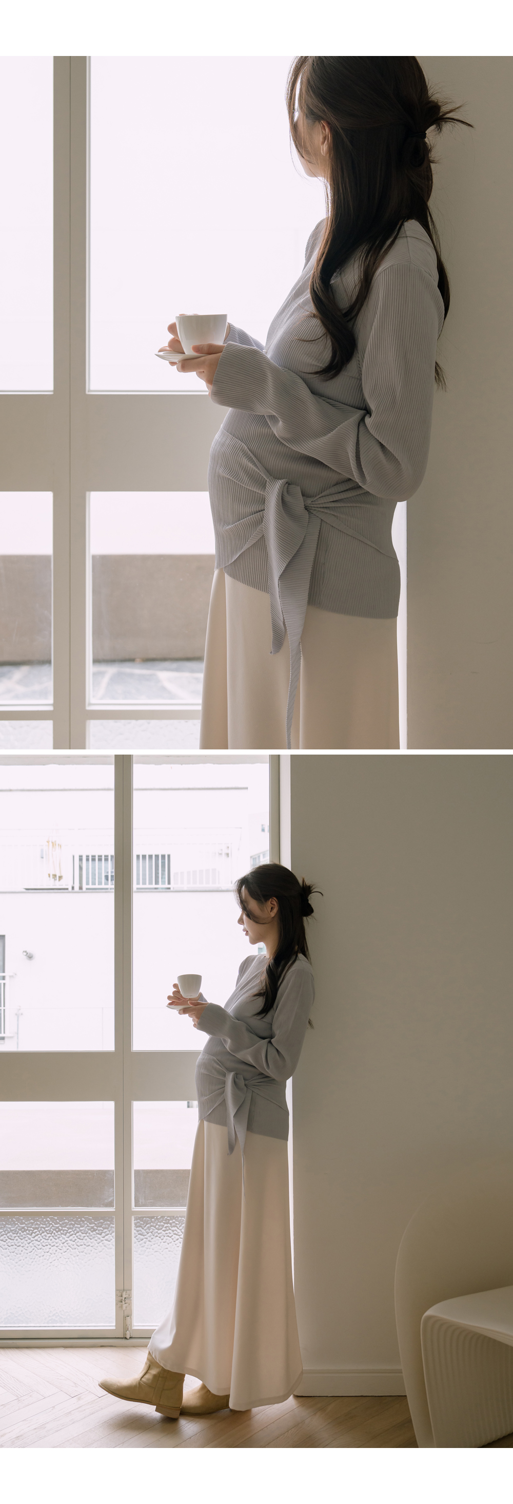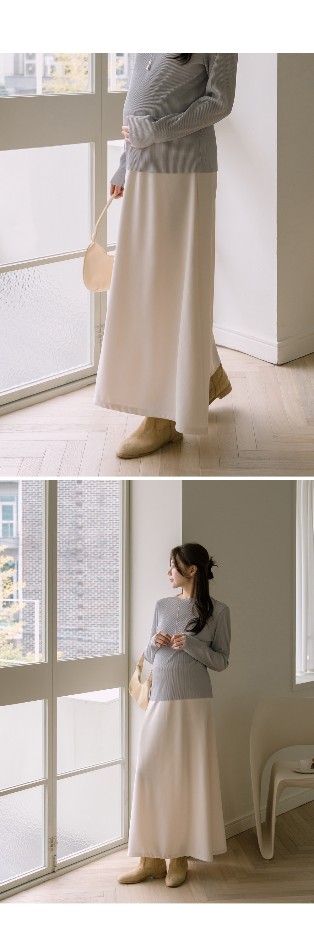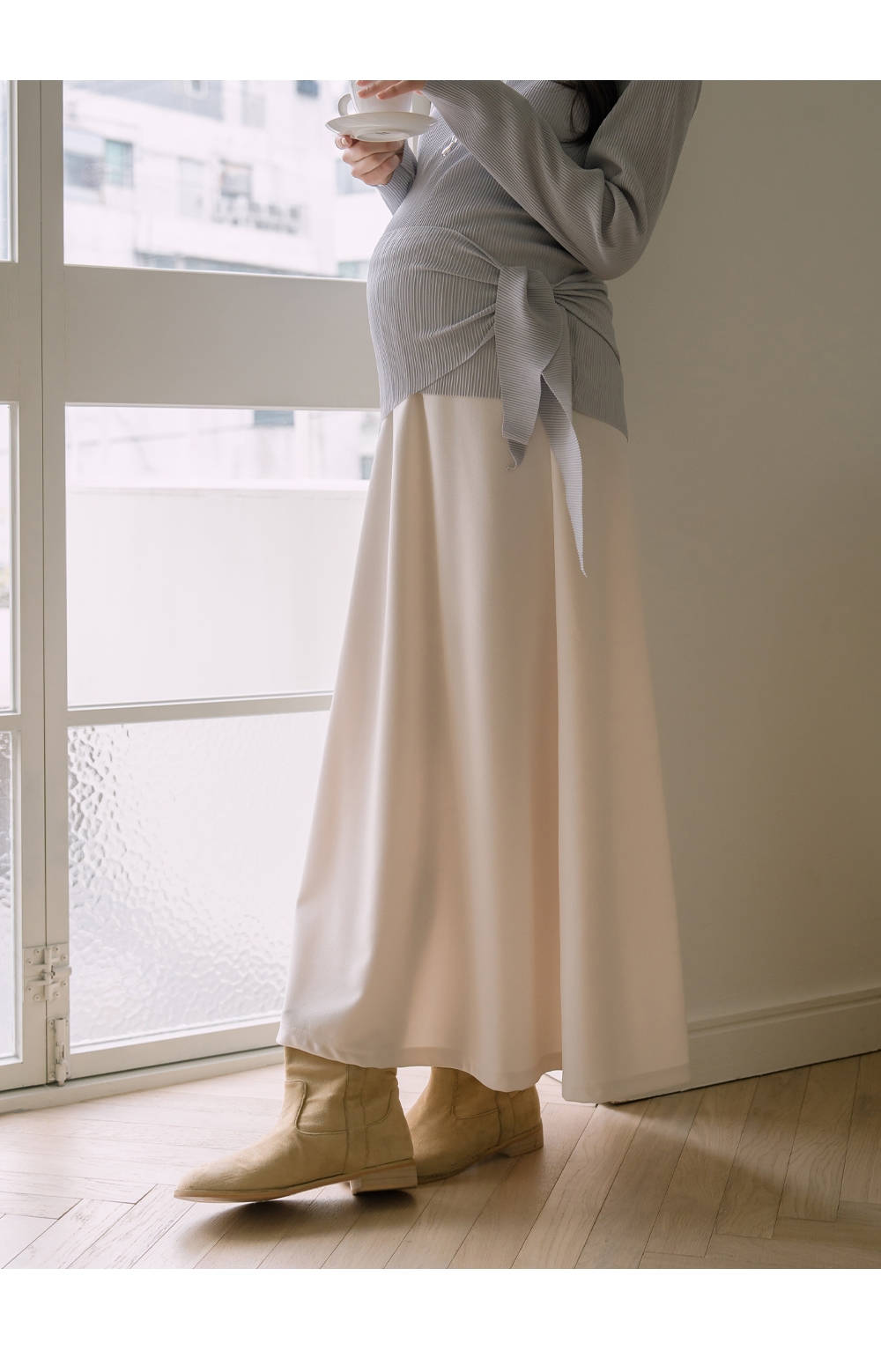 맥시한 기장감으로 우아한 무드의 임산부스커트