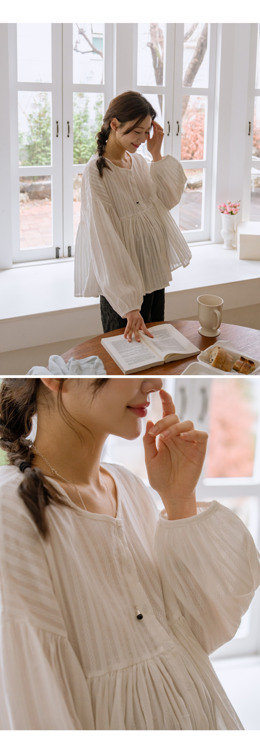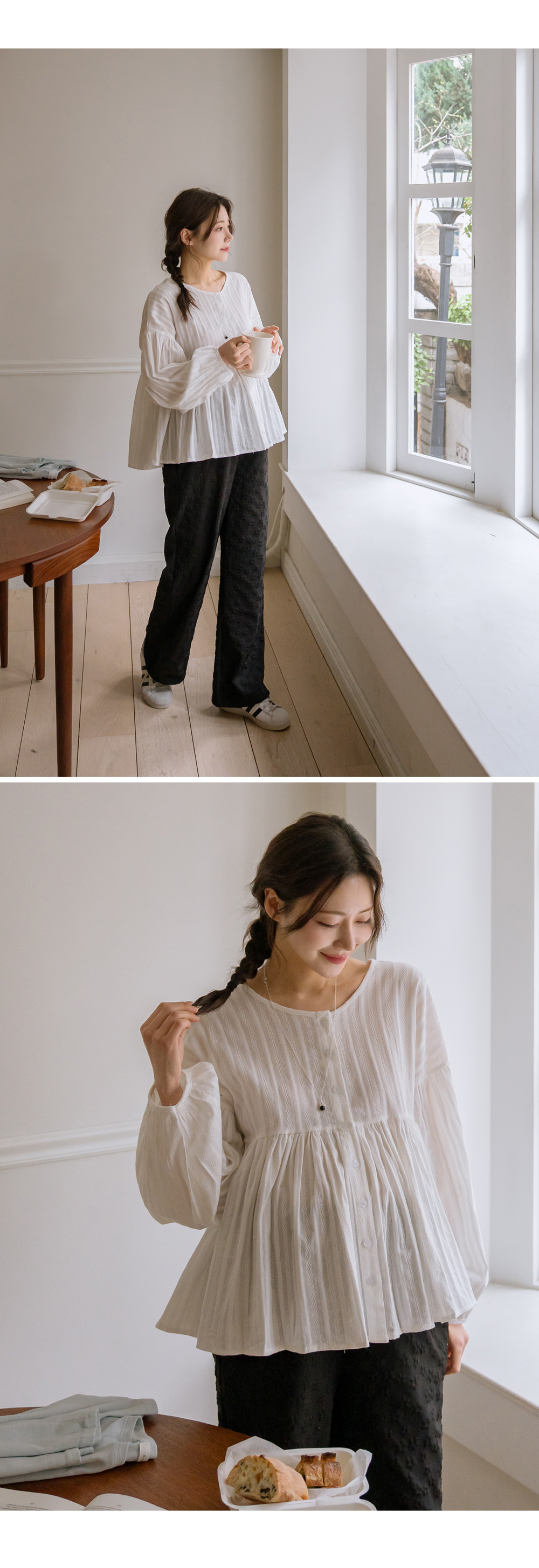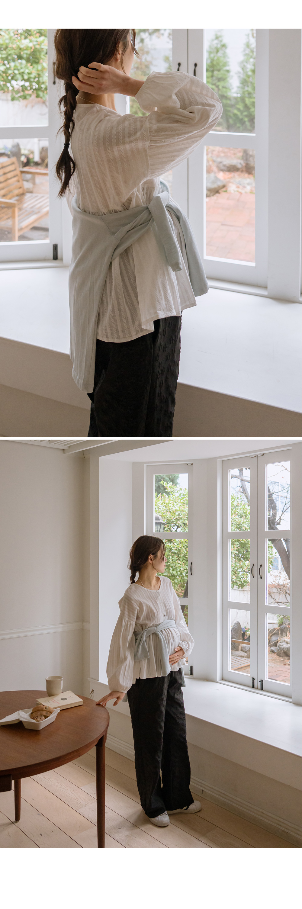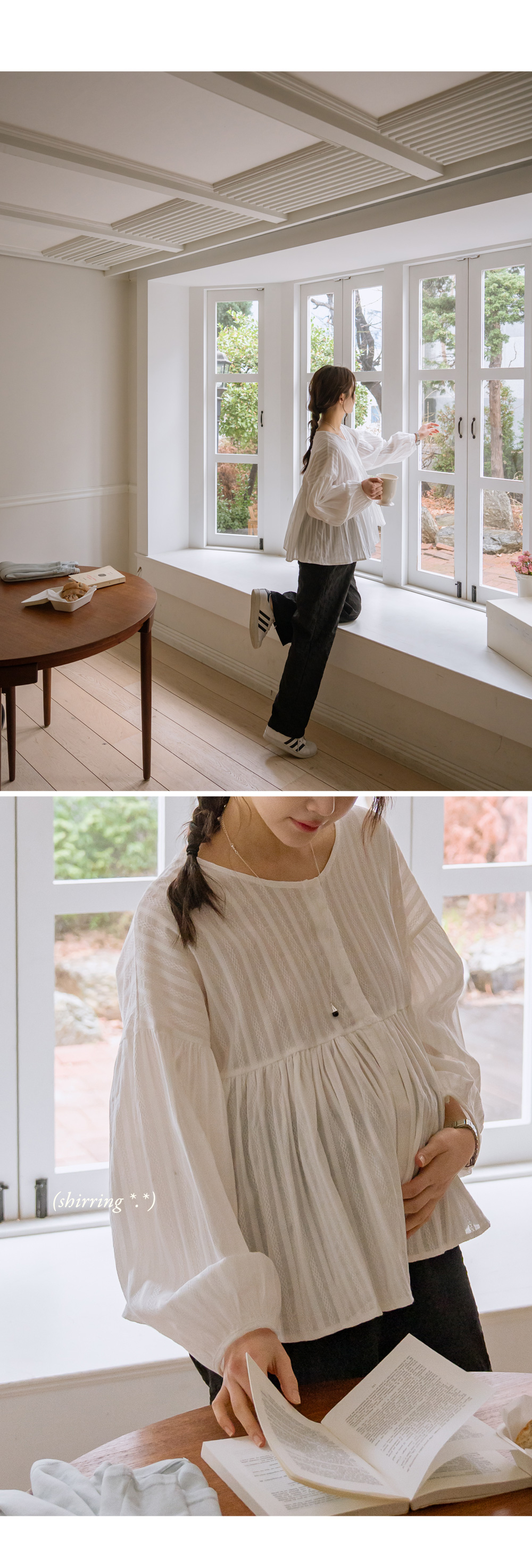 러블리한 무드의 셔링 볼륨 블라우스로,