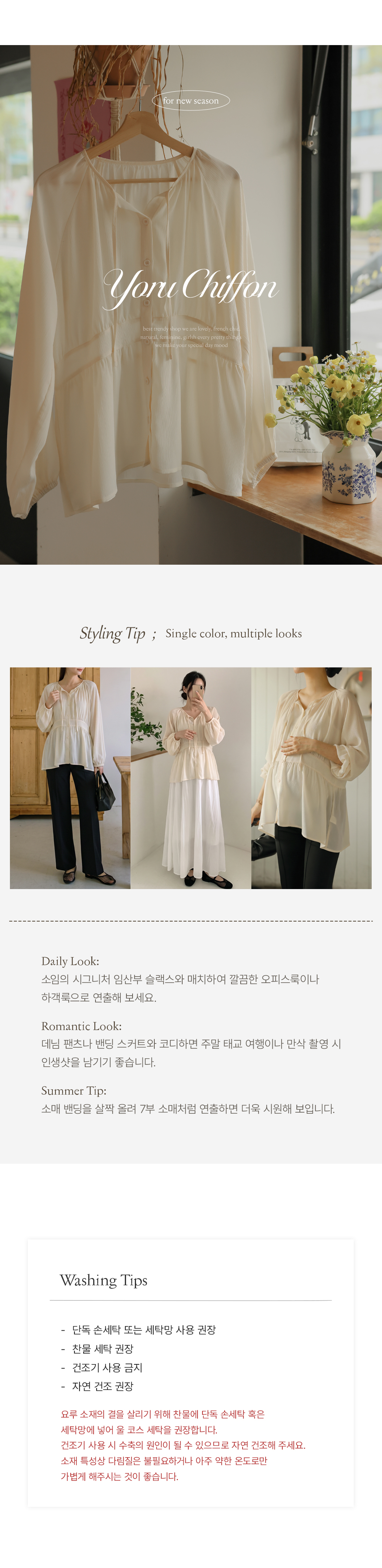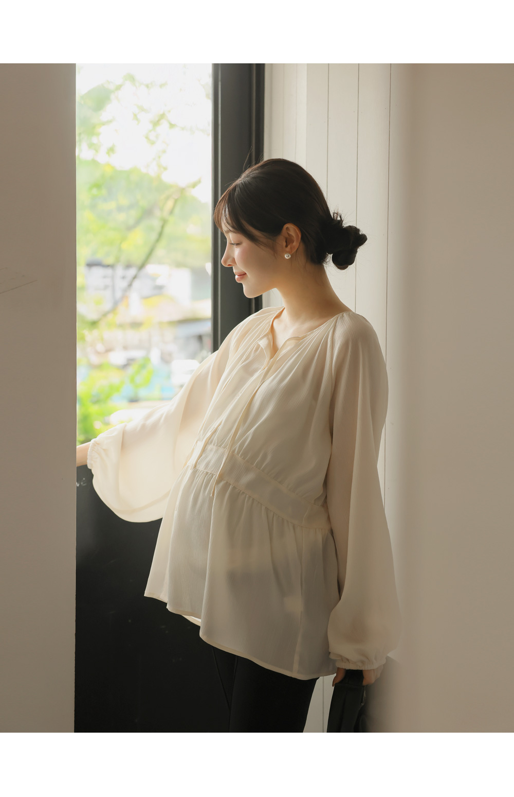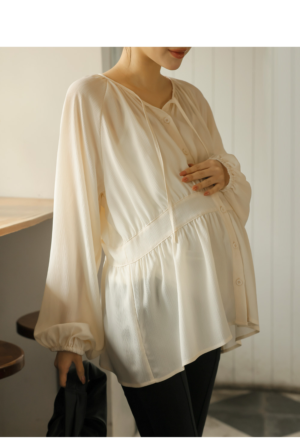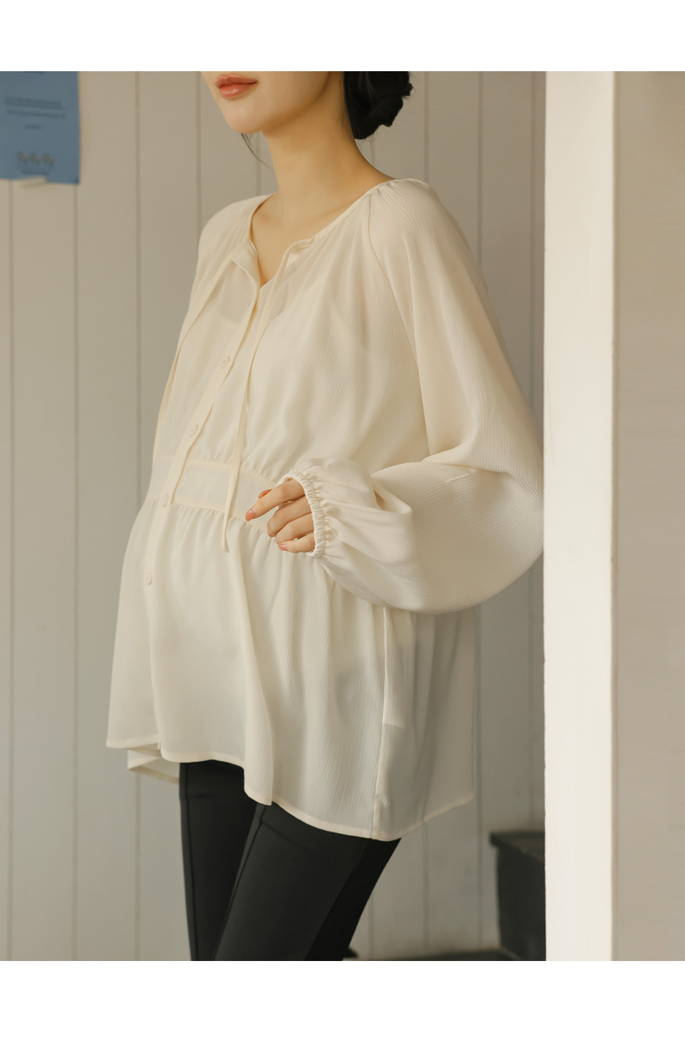 [Innocent & Delicate/Chiffon Blouse] [S-made] Maternity* Yoru Chiffon Balloon Puff Maternity Blouse