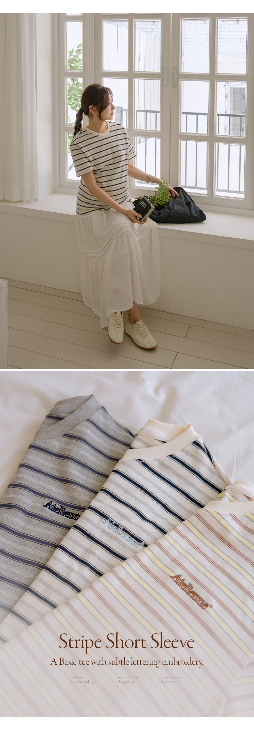 Product information시선을 사로잡는 톤 조합으로 존재감을 확실히 살려주는 스트라이프 티셔츠입니다.엔자임 워싱 기법으로 제작해 빳빳하지 않고 부드러운 터치감을 자랑합니다. 은은한 컬러 위에 자수 포인트를 더해 감각적인 디테일을 완성했습니다. 심플한 하의에만 매치해도 손쉽게 감각적인 스타일링이 연출됩니다. 간절기에는 아우터 속 이너로, 여름에는 단독으로 활용할 수 있어 오래도록 입기 좋은 티셔츠입니다. |