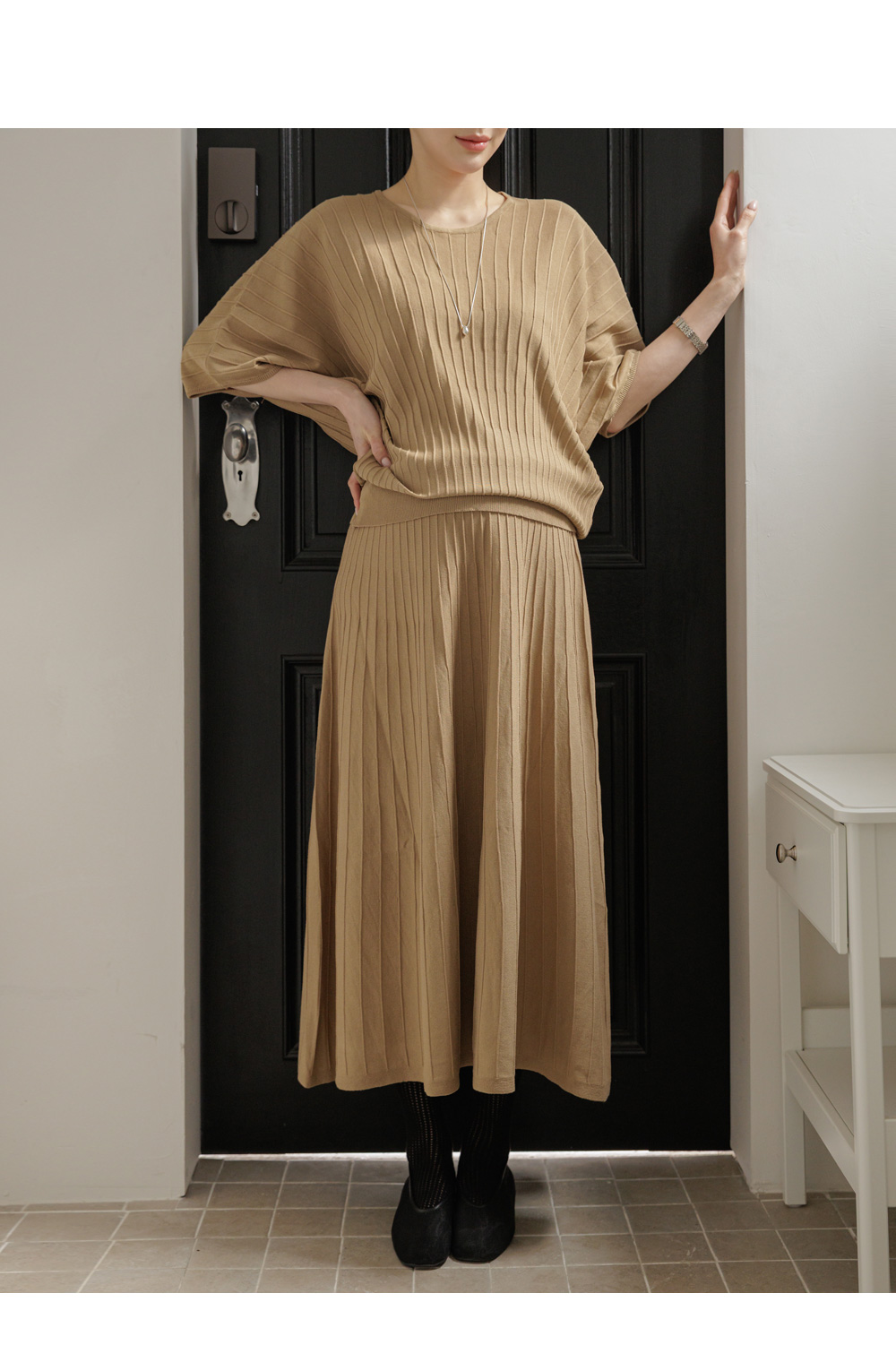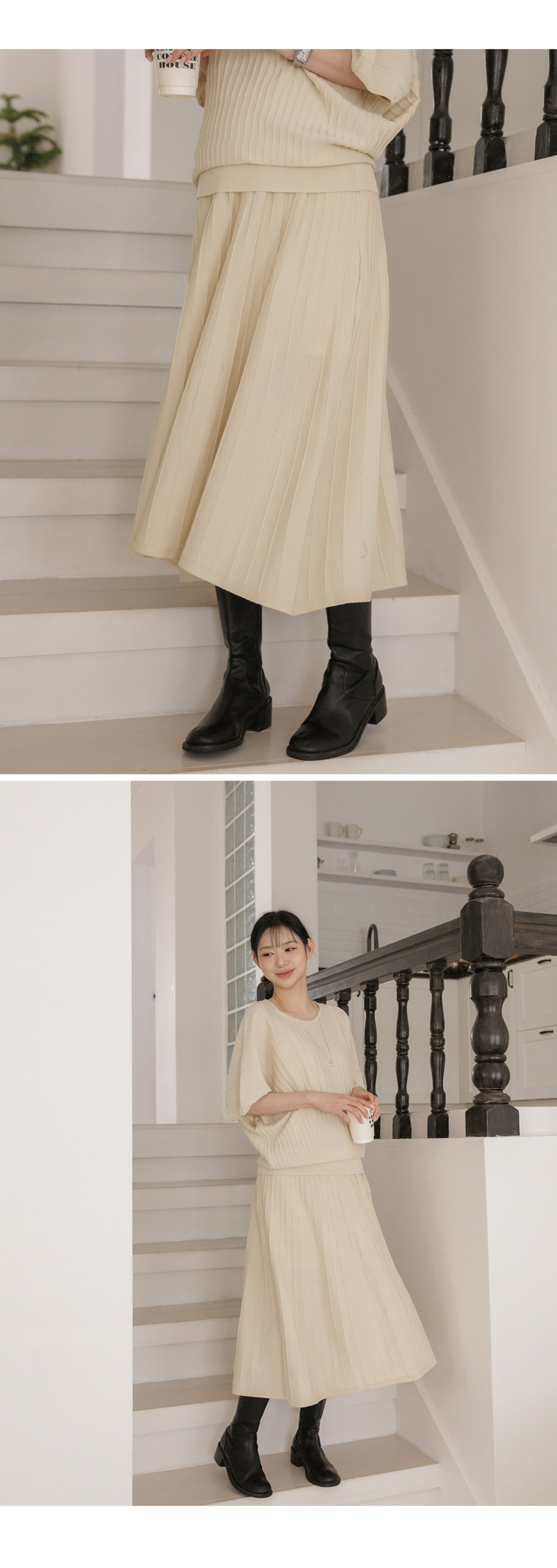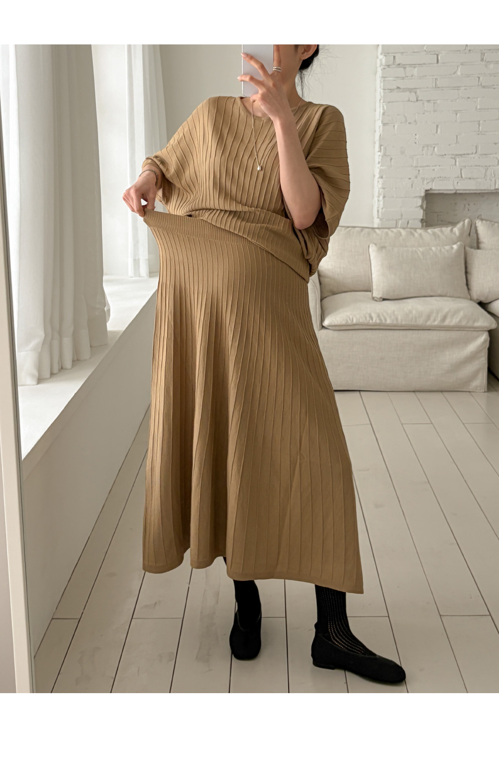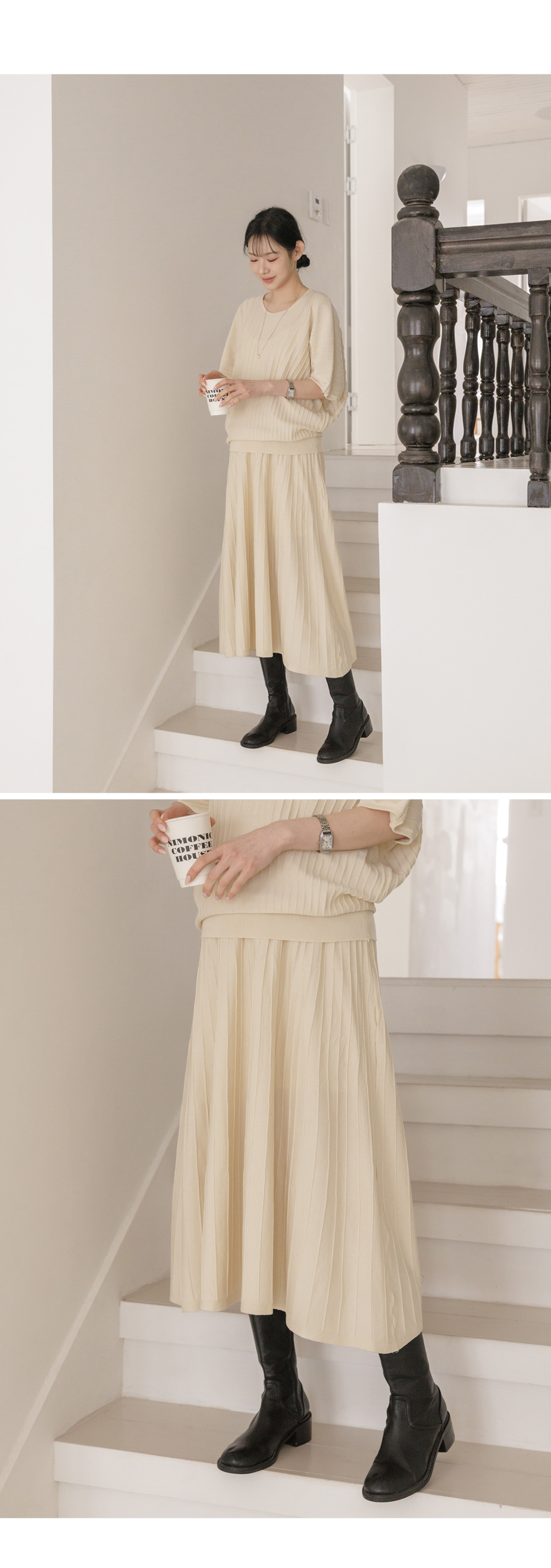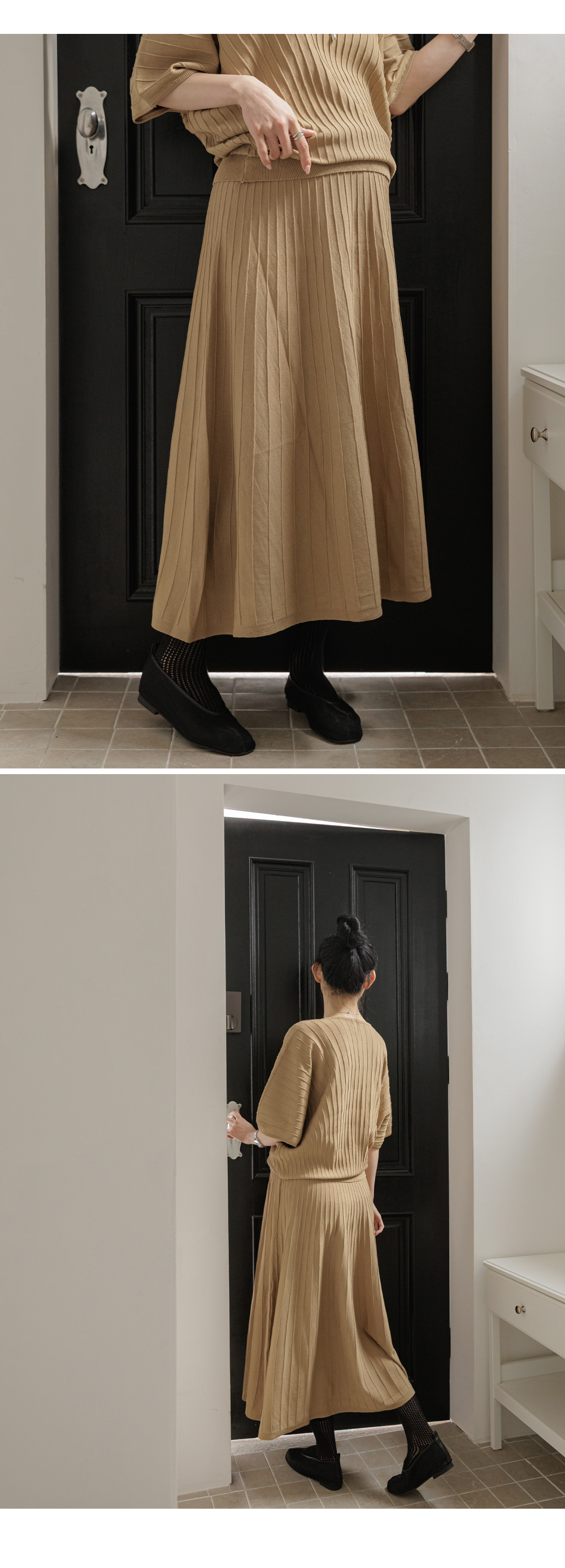 Product information임신 전후로 활용하기 좋은 니트 투피스입니다.어깨선이 자연스럽게 떨어지는 가오리핏입니다. 임산부 배도 안정적으로 커버해주는 허리 밴딩디자인입니다. 체형 커버에 도움을 주는 플레어 실루엣입니다. |