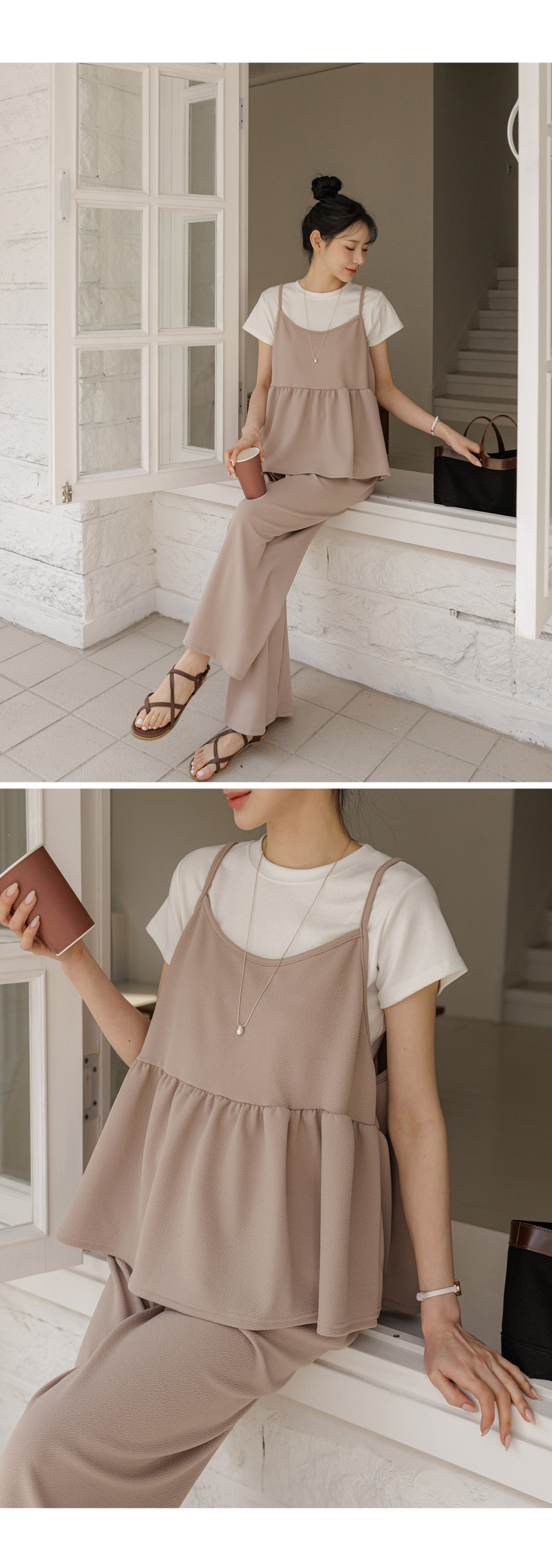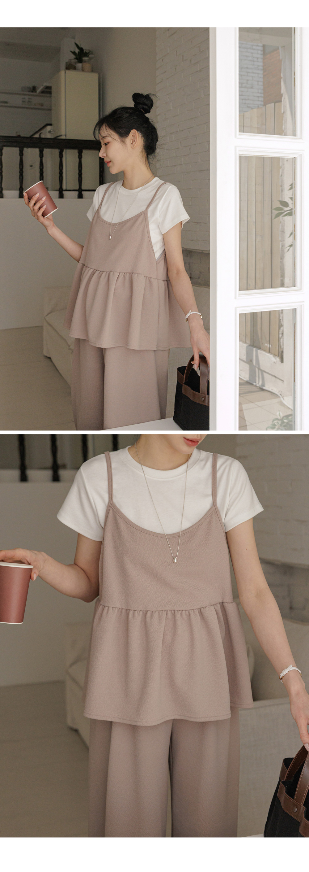 Product information임신 전후로 활용하기 좋은 투피스 입니다.다양한 스타일로 즐기기 좋은 뷔스티에 디자인입니다. 편안한 착용감이 돋보이는 여유로운 품 입니다. 체형커버에 효과적인 와이드핏 입니다. |