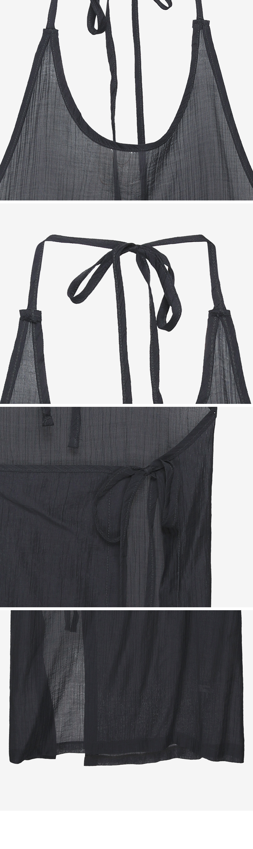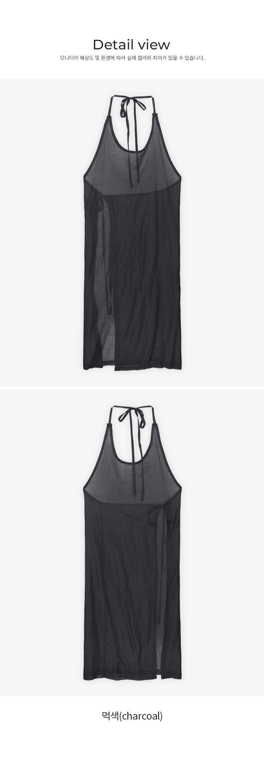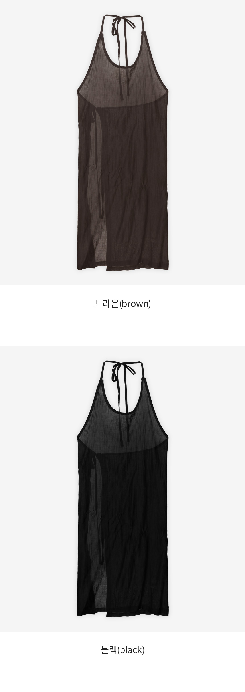 Product information시어한 소재에 은은한 비침이 매력적인 시스루 랩 원피스입니다.랩 디자인으로 체형에 맞게 실루엣을 조절할 수 있습니다. 홀터넥 디자인으로 암홀 끼임 없이 편안하게 착용할 수 있으며, 트렌디한 무드를 더해주는 아이템입니다. 가볍고 유연하게 흐르는 핏으로, 바람에 살랑살랑 움직일 때마다 포인트가 되어줍니다. |