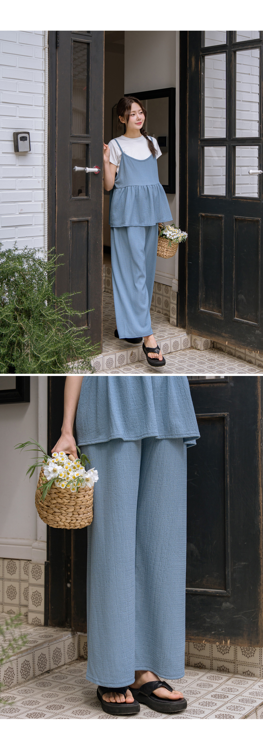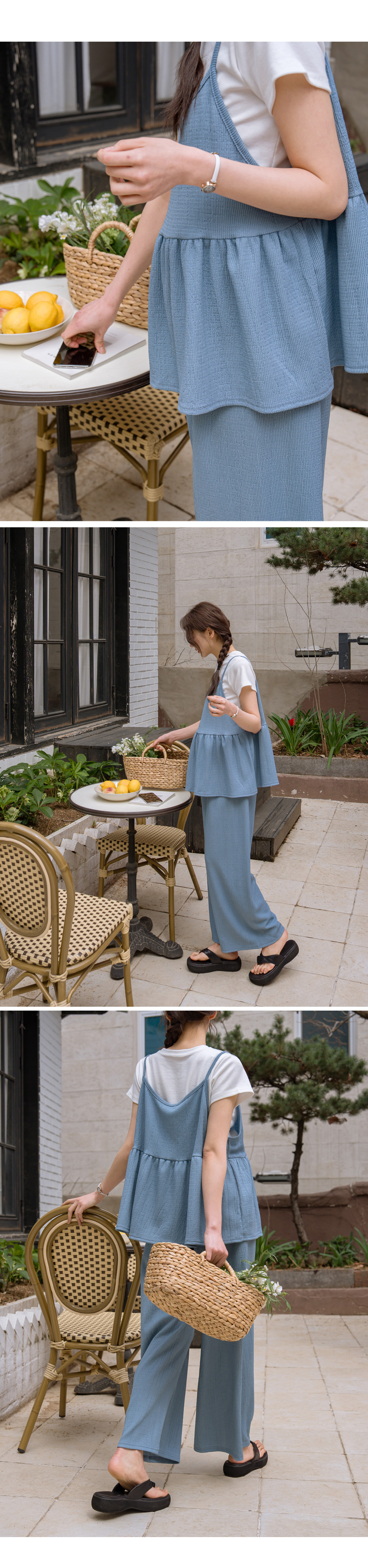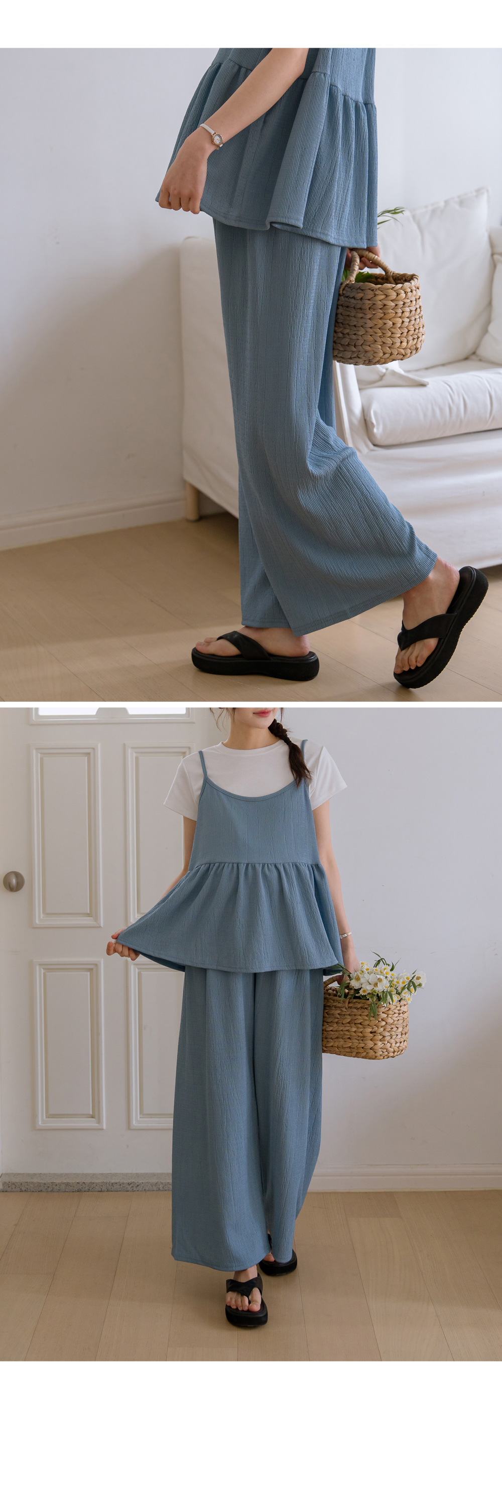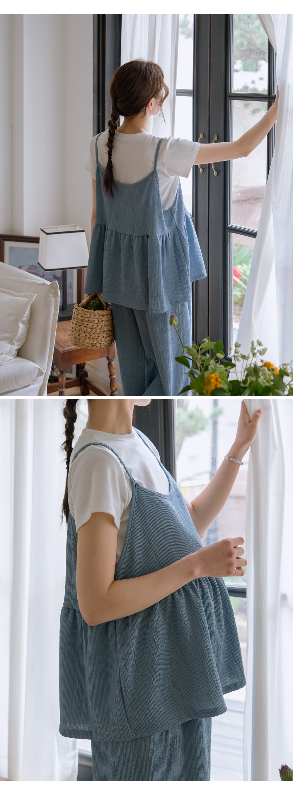 Product information달라붙지 않는 보들보들한 요루 면 소재를 사용하여 여름 내내 쾌적한 착용감을 선사합니다.러블리한 프릴 뷔스티에와 신축성 끝판왕 와이드 팬츠 구성으로 편안함과 스타일을 모두 잡았습니다. 원단 자체의 우수한 텐션감과 부드러운 허리 밴딩이 만삭 D라인을 자극 없이 포근하게 감싸줍니다. 가슴 아래로 퍼지는 프릴 디자인이 배 라인을 자연스럽게 커버하며 여성스러운 무드를 완성합니다. 티셔츠와 레이어드하기 좋은 뷔스티에 디자인으로 노출 부담 없이 센스 있는 코디가 가능합니다. 군살을 싹 가려주는 와이드 핏과 찰랑이는 소재감이 다리 라인을 더욱 길고 슬림해 보이게 합니다. 활동성이 뛰어난 고신축 소재로 제작되어 임신 초기부터 만삭, 산후 홈웨어까지 활용도가 높습니다. |
