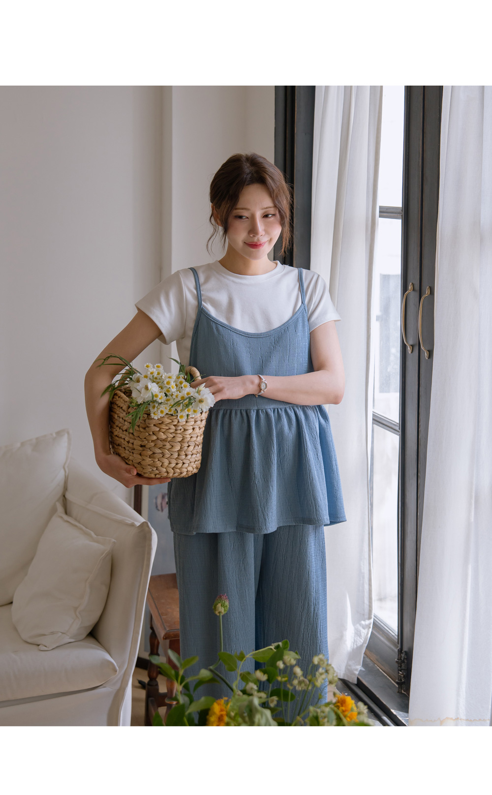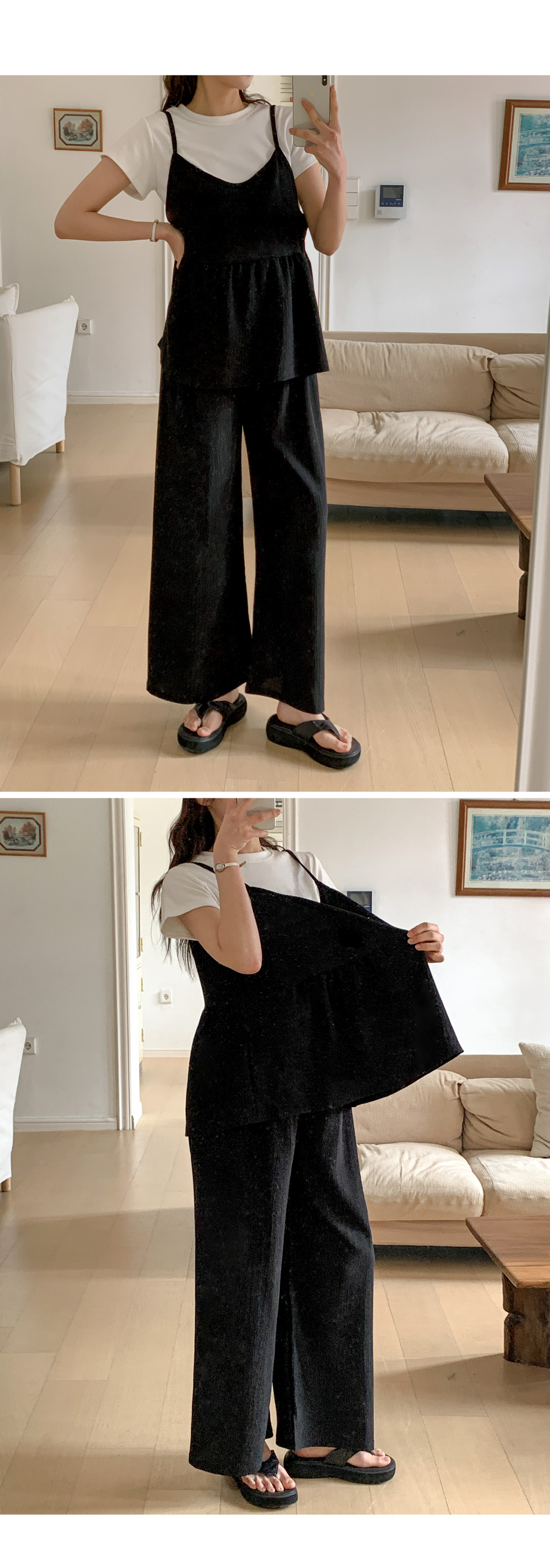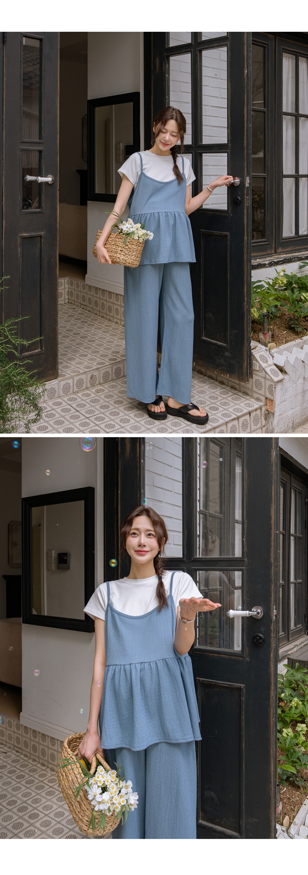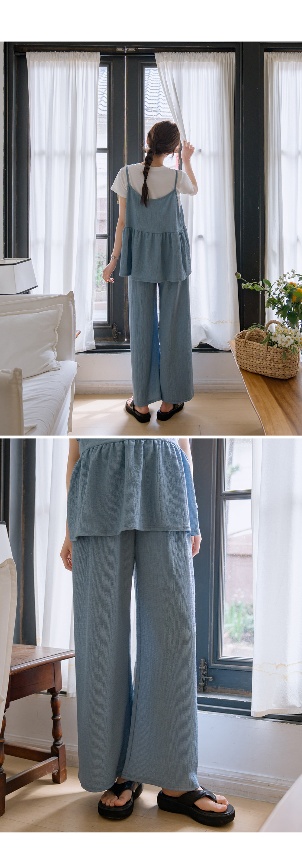 Product information달라붙지 않는 보들보들한 요루 면 소재를 사용하여 여름 내내 쾌적한 착용감을 선사합니다.러블리한 프릴 뷔스티에와 신축성 끝판왕 와이드 팬츠 구성으로 편안함과 스타일을 모두 잡았습니다. 원단 자체의 우수한 텐션감과 부드러운 허리 밴딩이 만삭 D라인을 자극 없이 포근하게 감싸줍니다. 가슴 아래로 퍼지는 프릴 디자인이 배 라인을 자연스럽게 커버하며 여성스러운 무드를 완성합니다. 티셔츠와 레이어드하기 좋은 뷔스티에 디자인으로 노출 부담 없이 센스 있는 코디가 가능합니다. 군살을 싹 가려주는 와이드 핏과 찰랑이는 소재감이 다리 라인을 더욱 길고 슬림해 보이게 합니다. 활동성이 뛰어난 고신축 소재로 제작되어 임신 초기부터 만삭, 산후 홈웨어까지 활용도가 높습니다. |