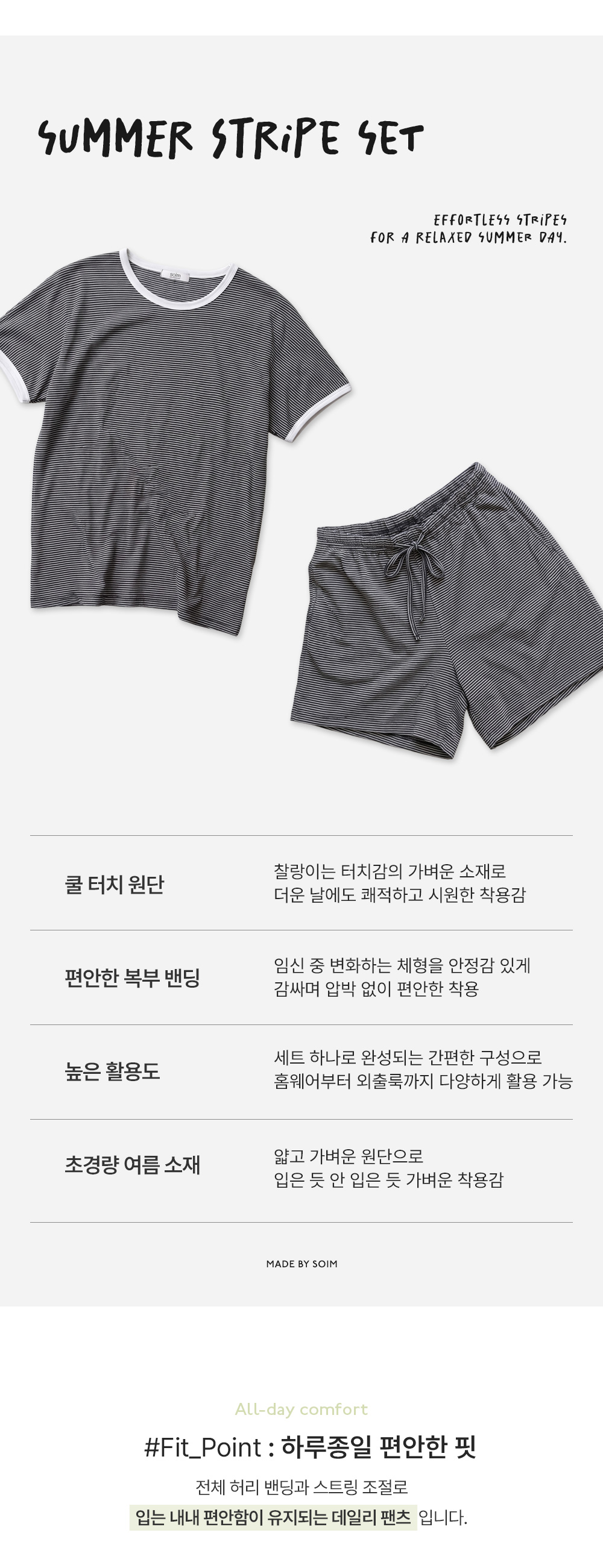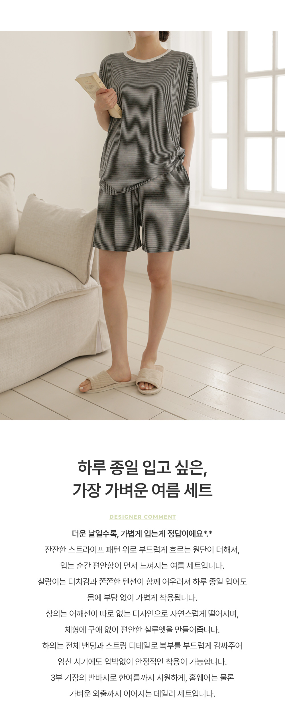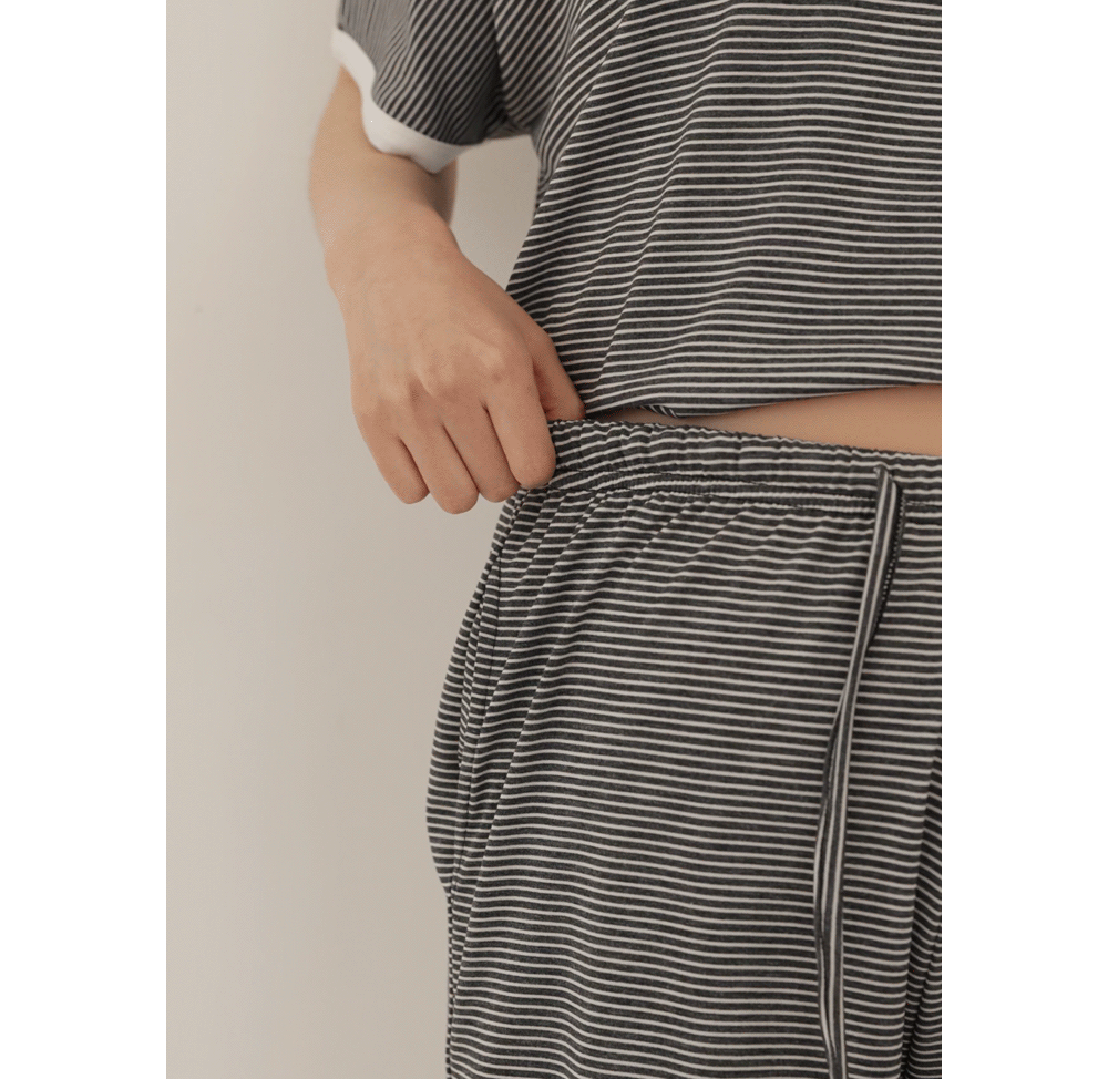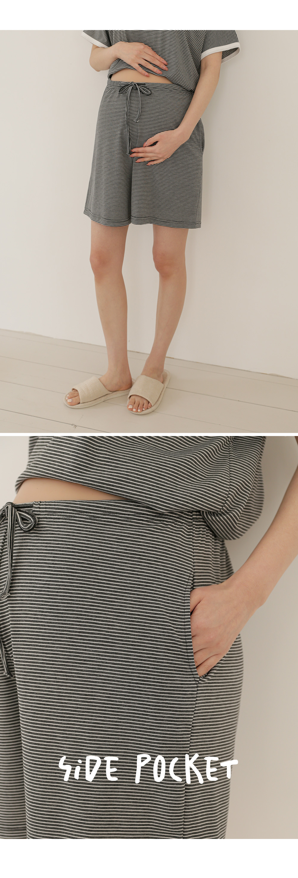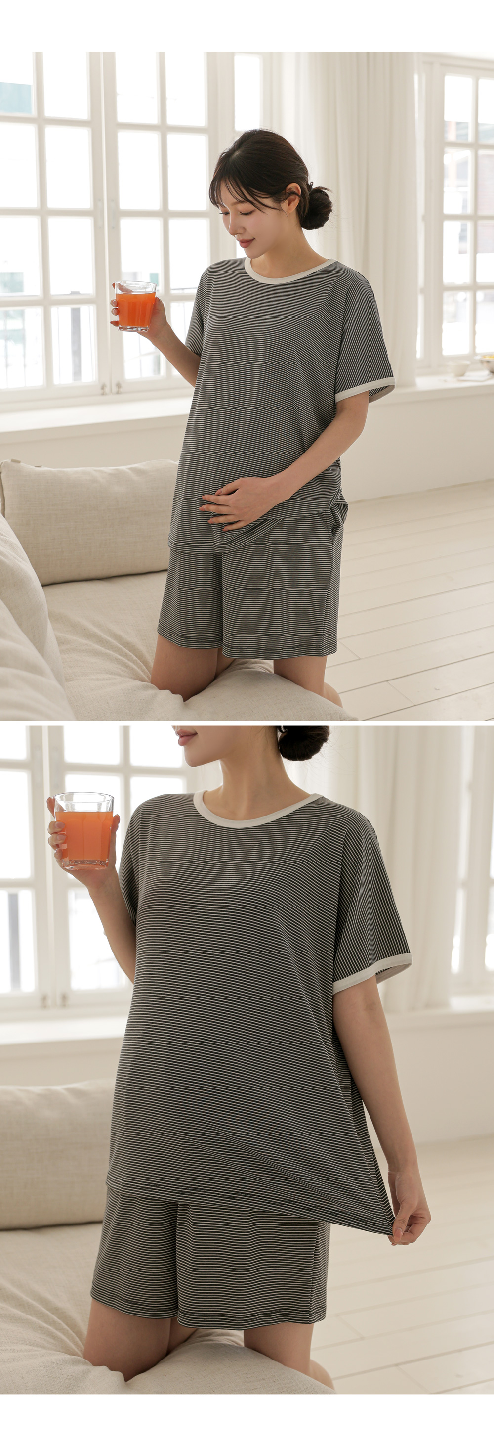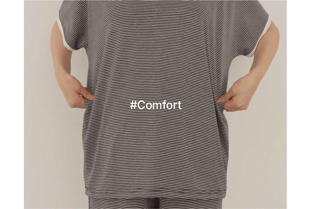 [Good Tension/COOL Material/Summer Loungewear] [S-made] Maternity*Summer Tension Stripe Maternity Set
