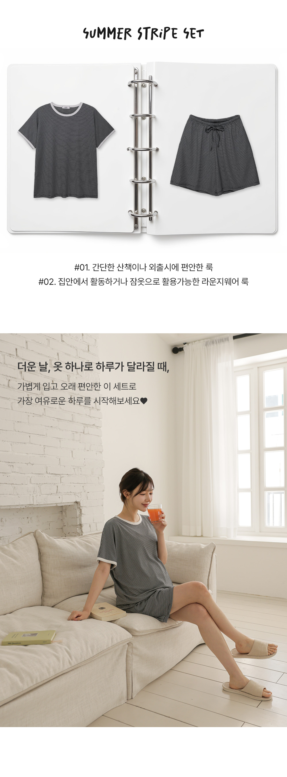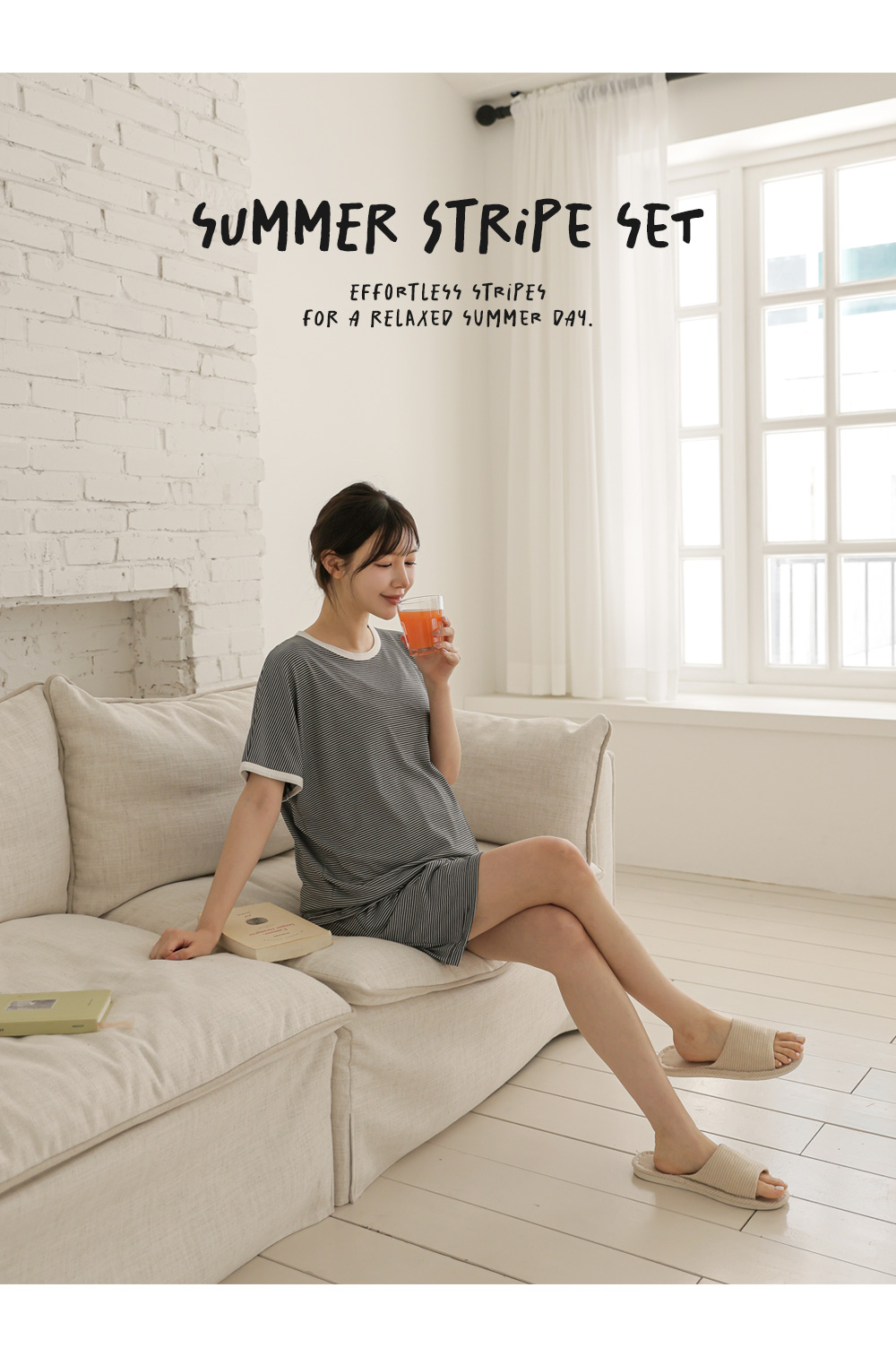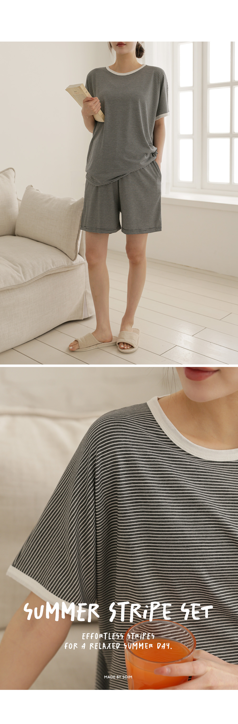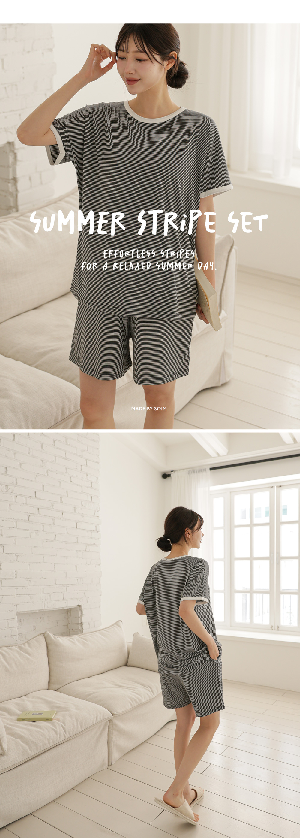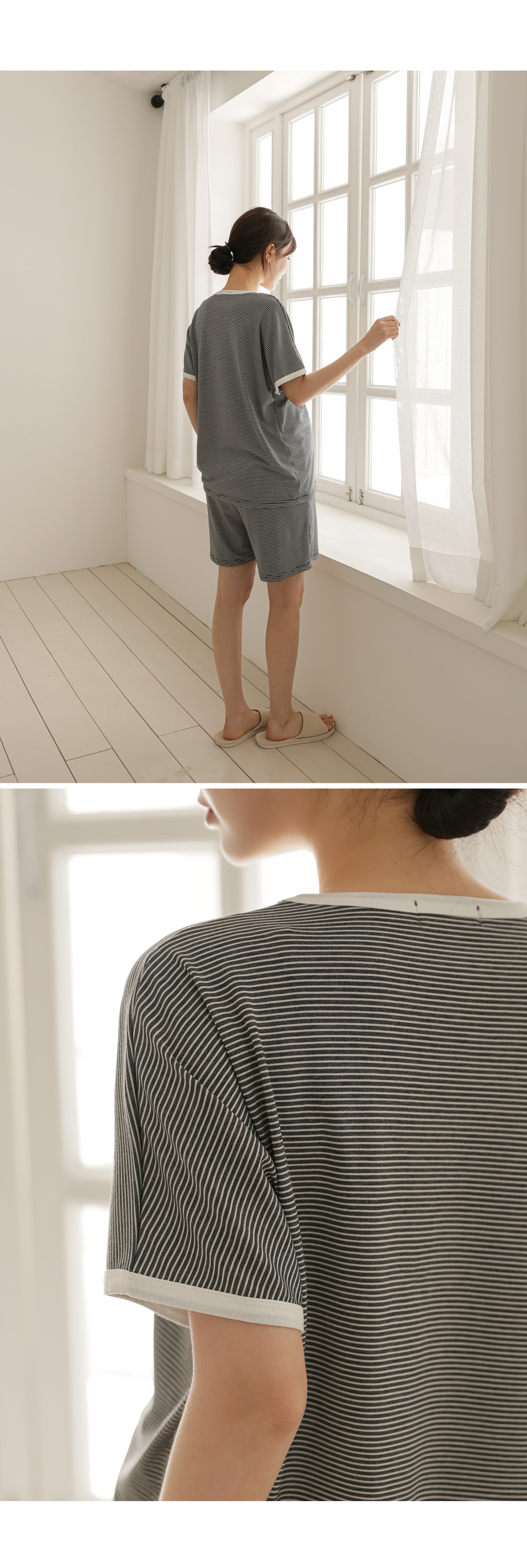 [Good Tension/COOL Material/Summer Loungewear] [S-made] Maternity*Summer Tension Stripe Maternity Set