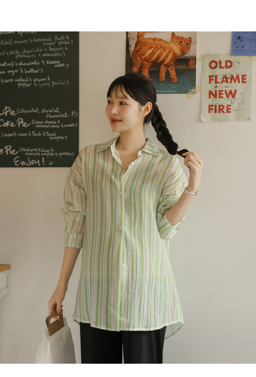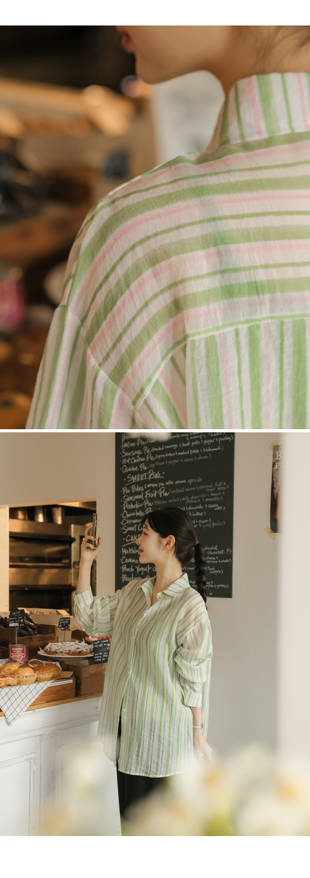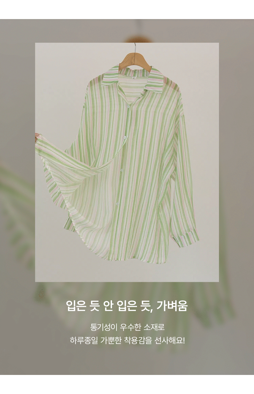 Product information가볍고 시원한 소재감입니다.체형을 커버해주는 루즈핏입니다. 스트라이프 패턴 디자인입니다. 출산 전후로 활용하기 좋은 셔츠입니다. |