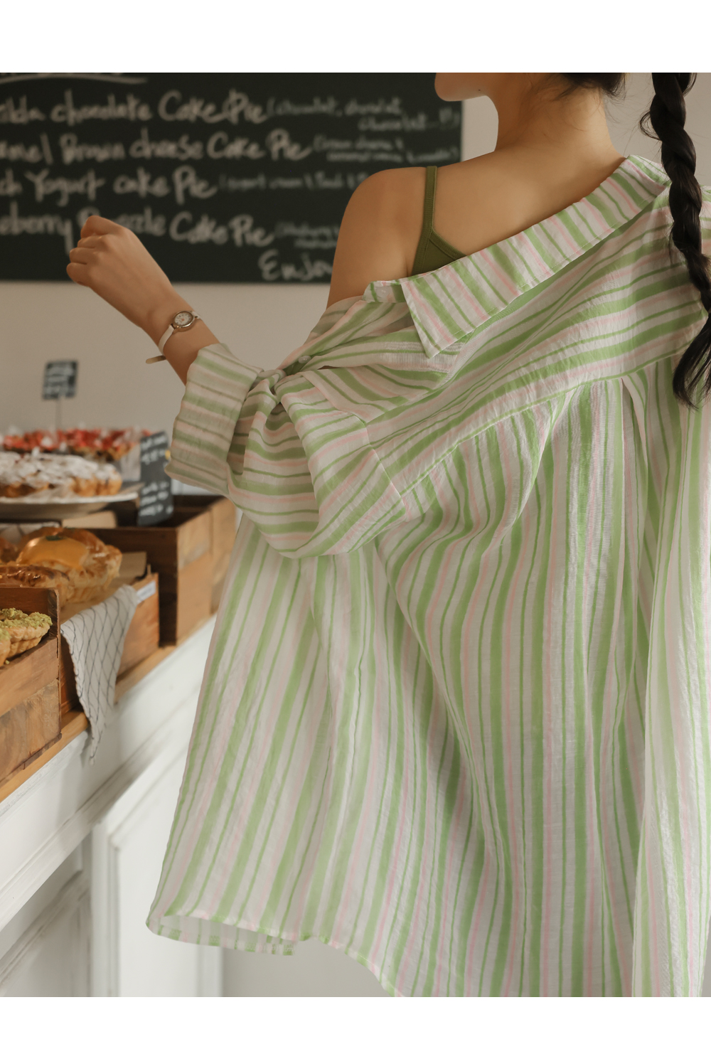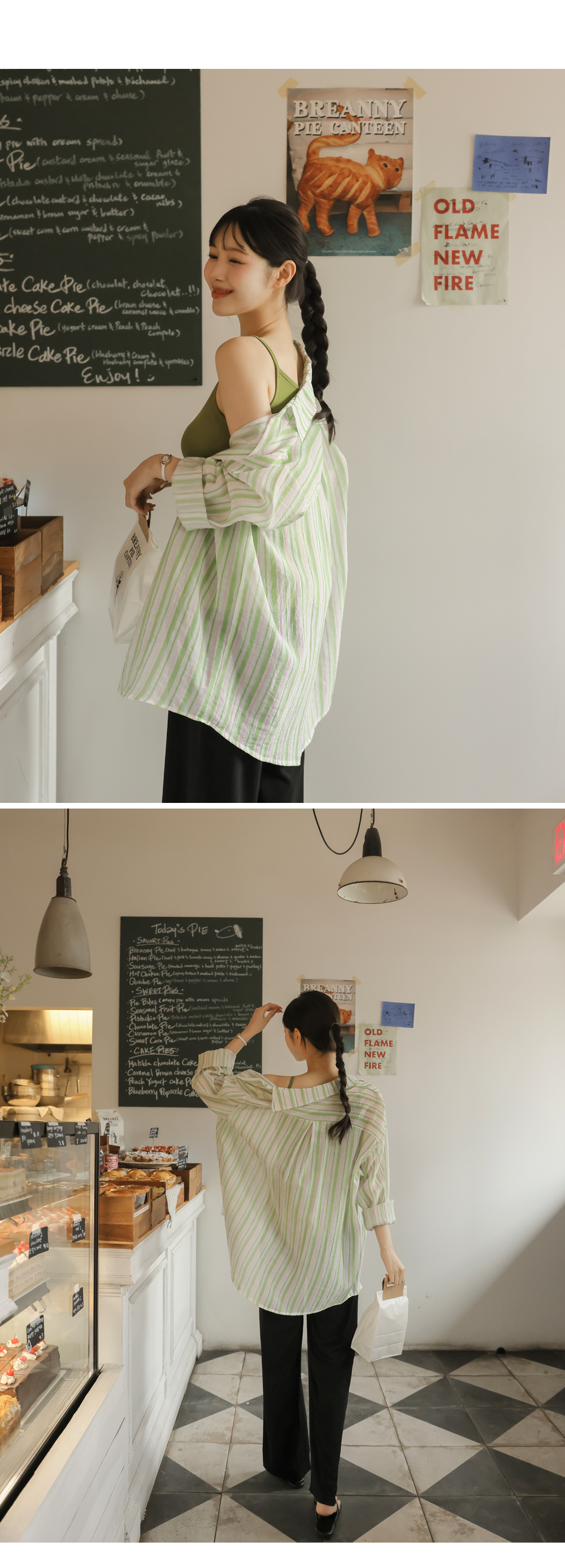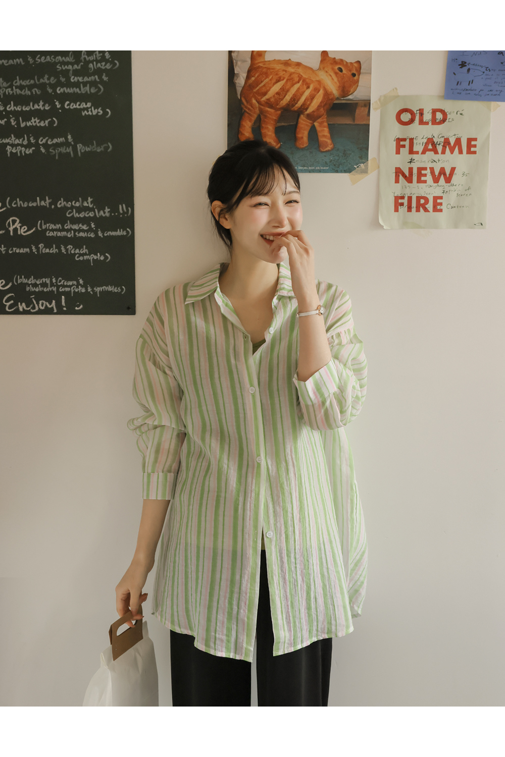 Product information가볍고 시원한 소재감입니다.체형을 커버해주는 루즈핏입니다. 스트라이프 패턴 디자인입니다. 출산 전후로 활용하기 좋은 셔츠입니다. |