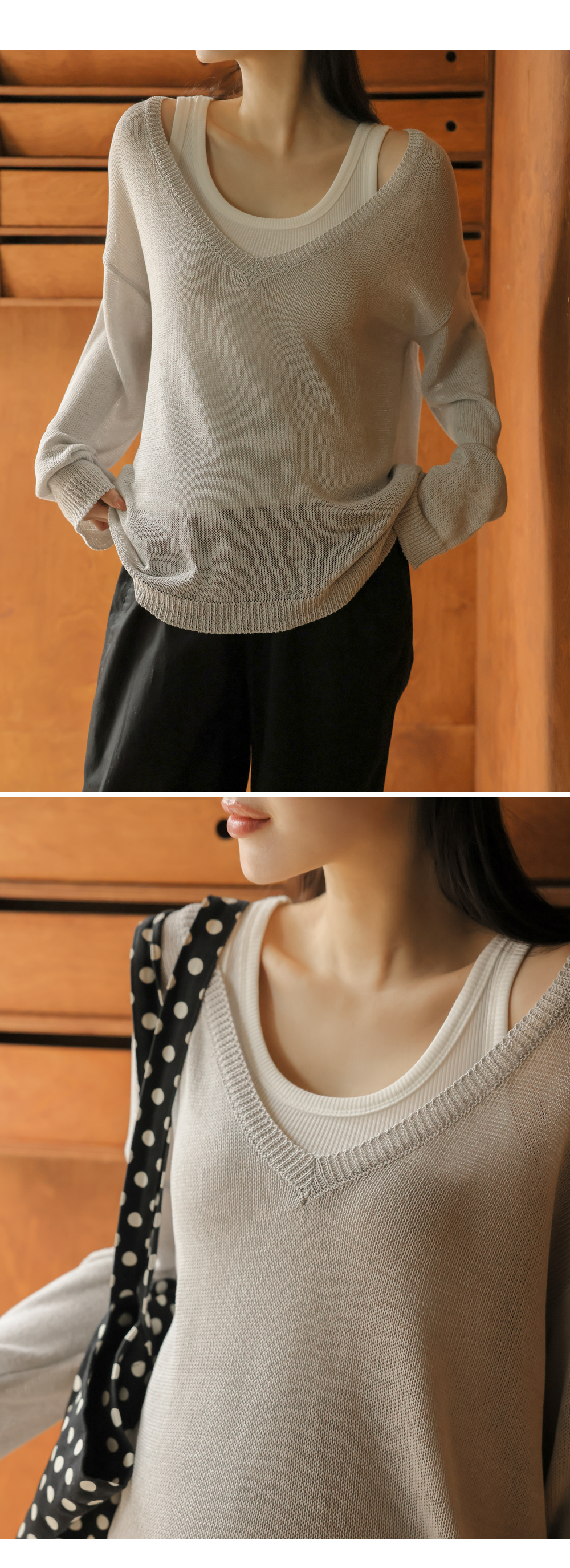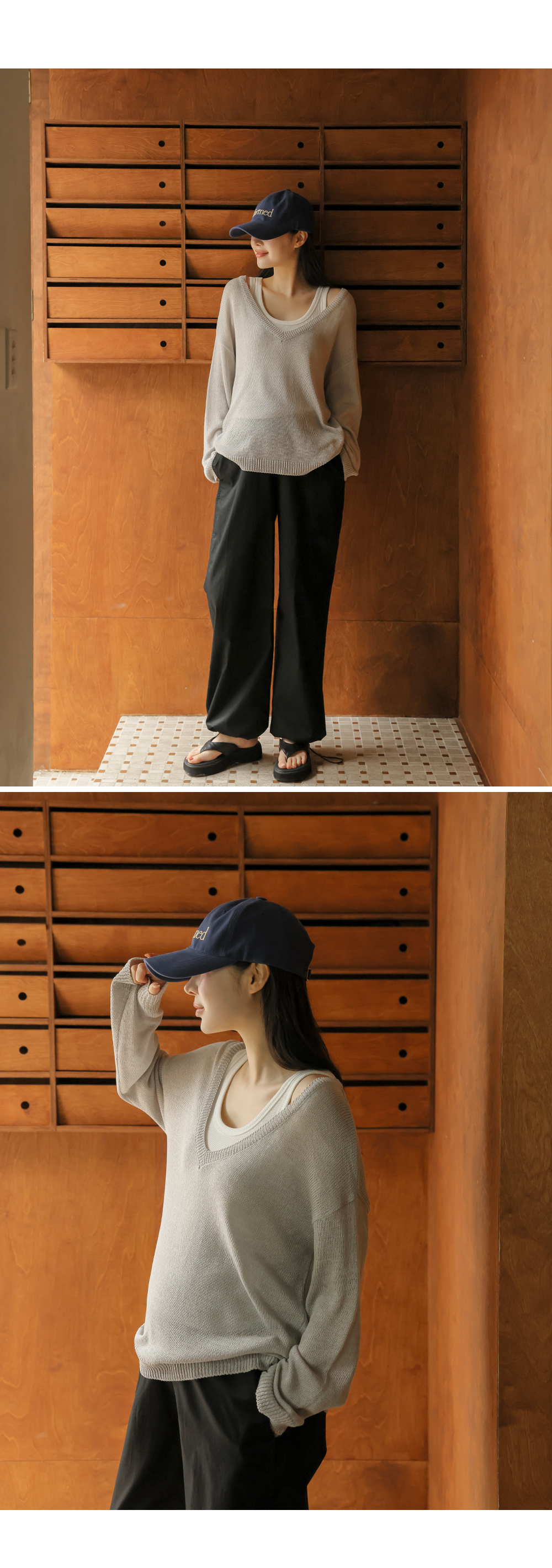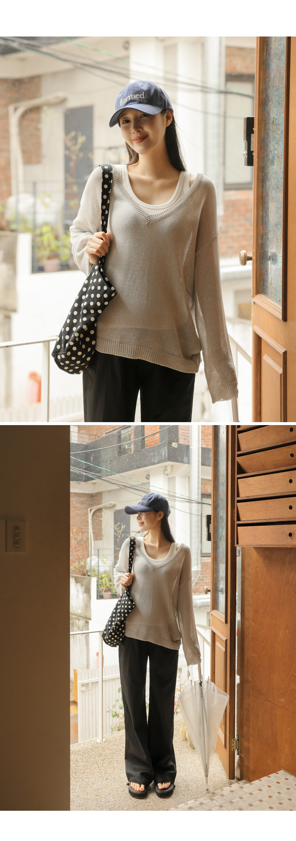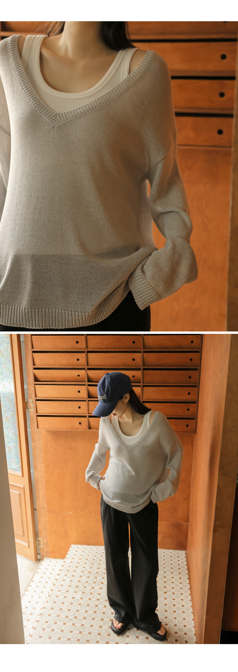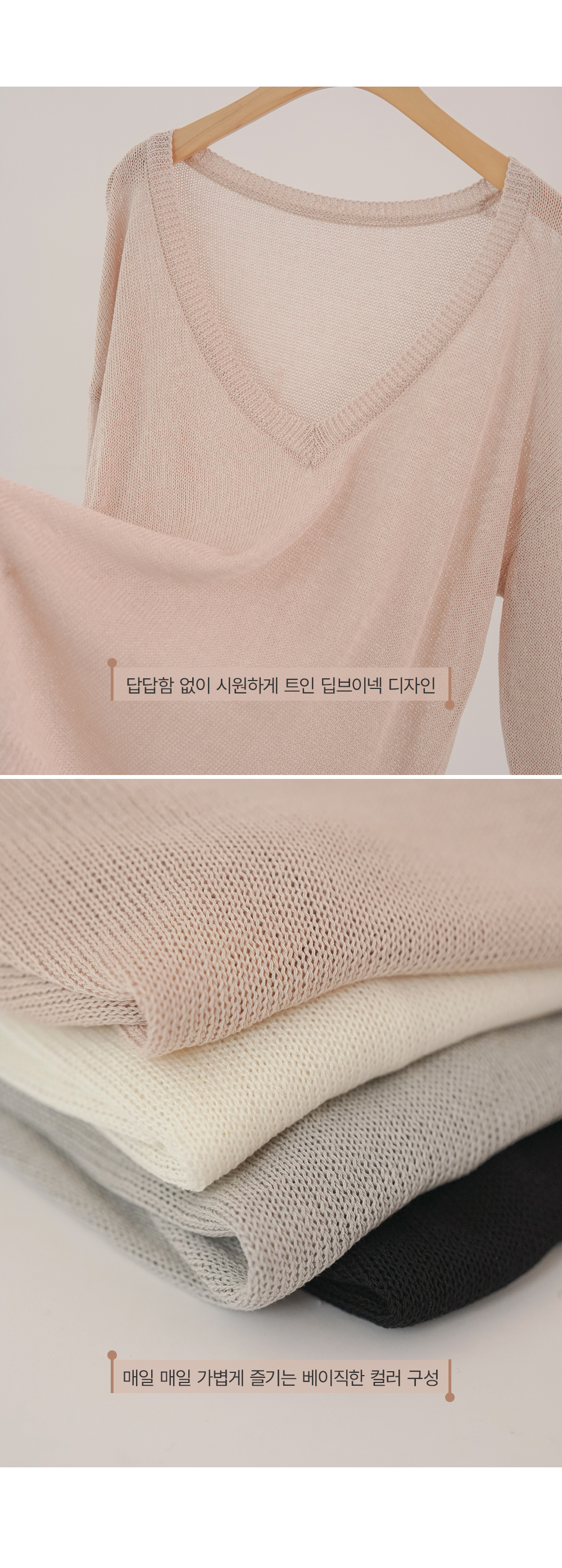 Product information답답함 없는 딥브이넥 디자인입니다.출산 전후로 활용하기 좋은 루즈핏입니다. 가벼운 니트 짜임으로 통기성 좋은 니트입니다. |