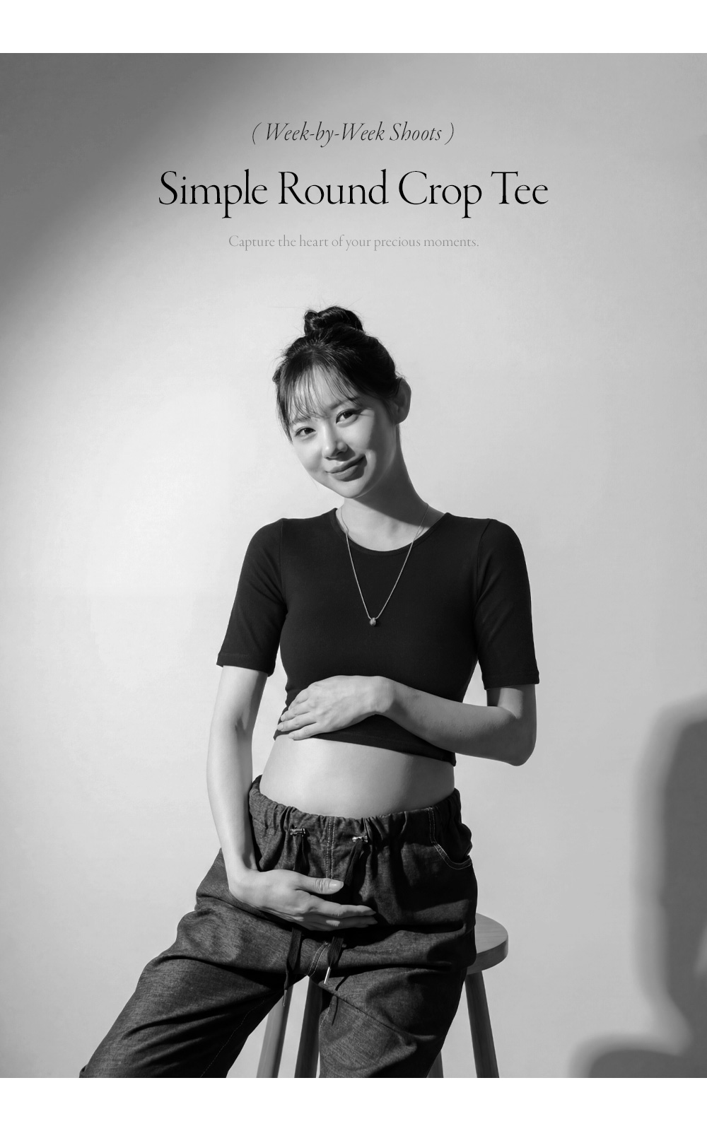 Maternity*Simple Round Crop Short Sleeves T-shirt (Maternity/Pregnancy Photo Shoot)