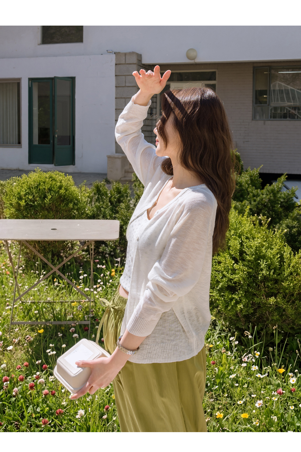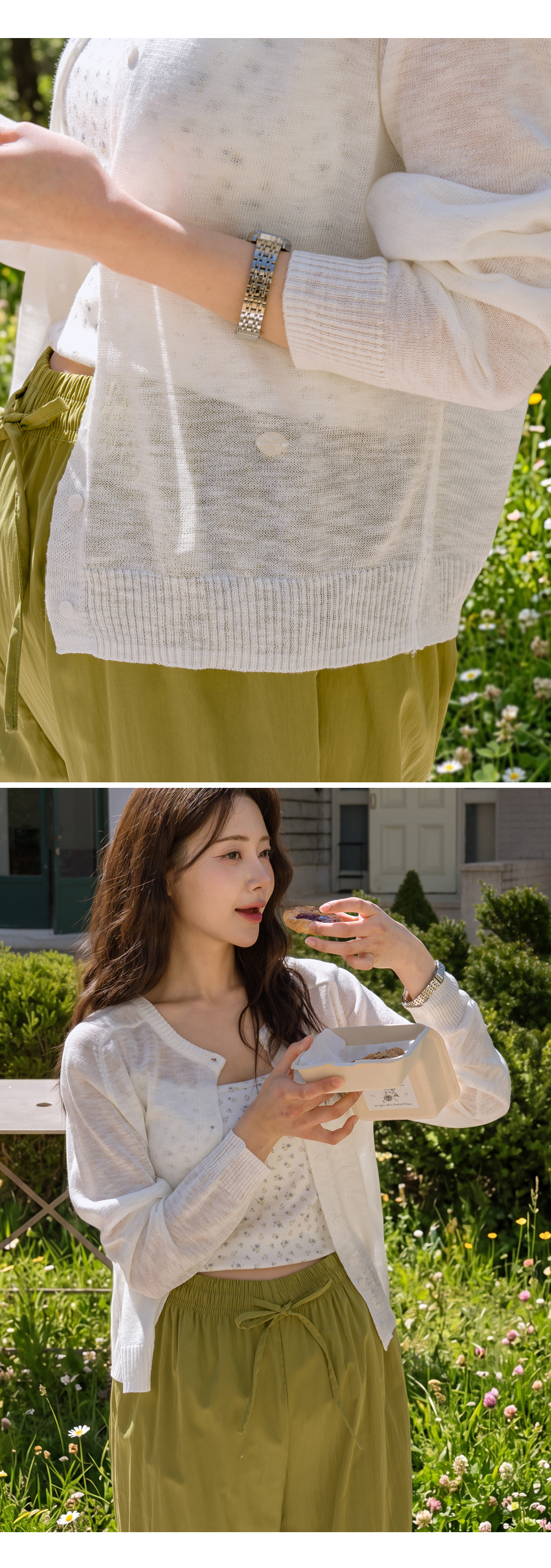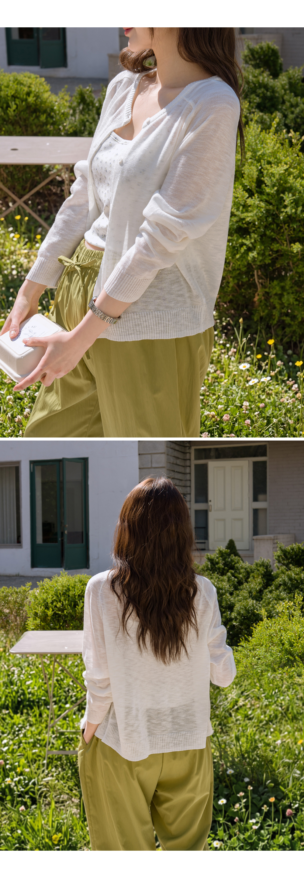 Product information통기성 좋은 린넨 혼방 소재로 제작되어 한여름에도 끈적임 없이 쾌적한 착용감을 유지합니다.밑단에 더해진 감각적인 펜던트 디테일이 룩에 은은한 포인트와 고급스러운 분위기를 더해줍니다. 유행을 타지 않는 베이직한 라운드넥 디자인으로 다양한 이너와 매치하기 좋아 활용도가 높습니다. 가볍고 얇은 두께감으로 뜨거운 자외선을 차단해 주며, 실내외 어디서든 부담 없이 걸치기 좋습니다. 내추럴한 실루엣: 몸을 따라 자연스럽게 떨어지는 루즈한 핏이 체형을 보정해 주며 세련된 데일리룩을 완성합니다. |