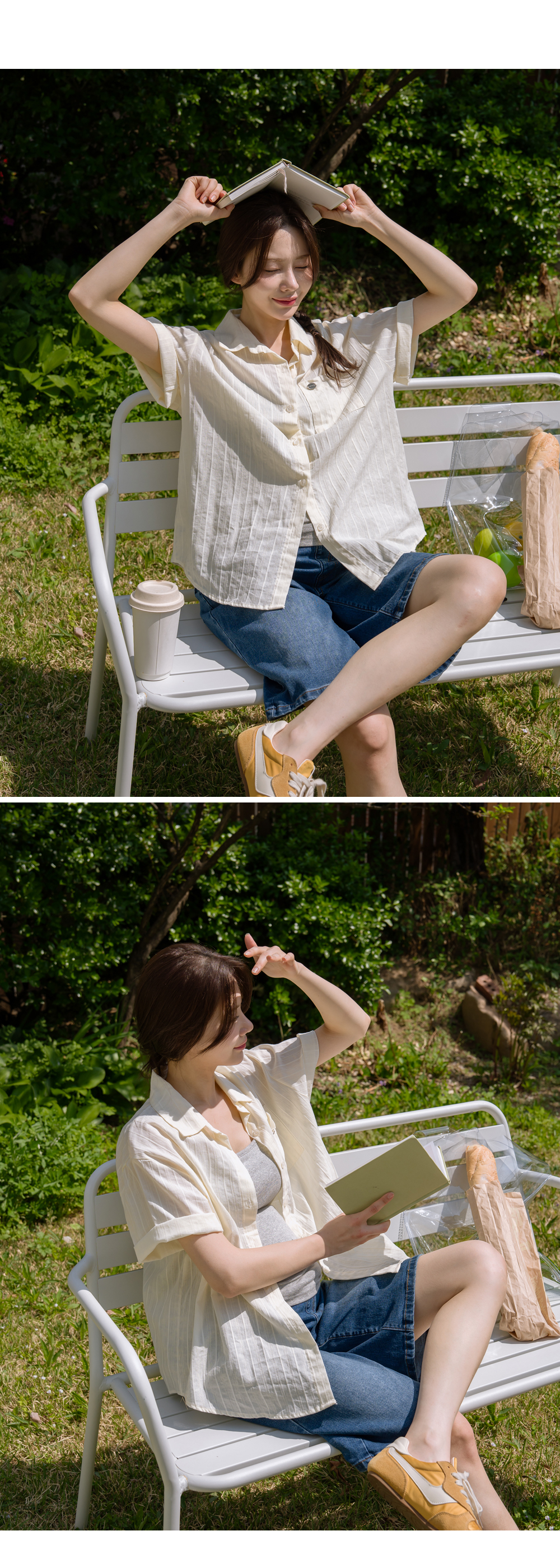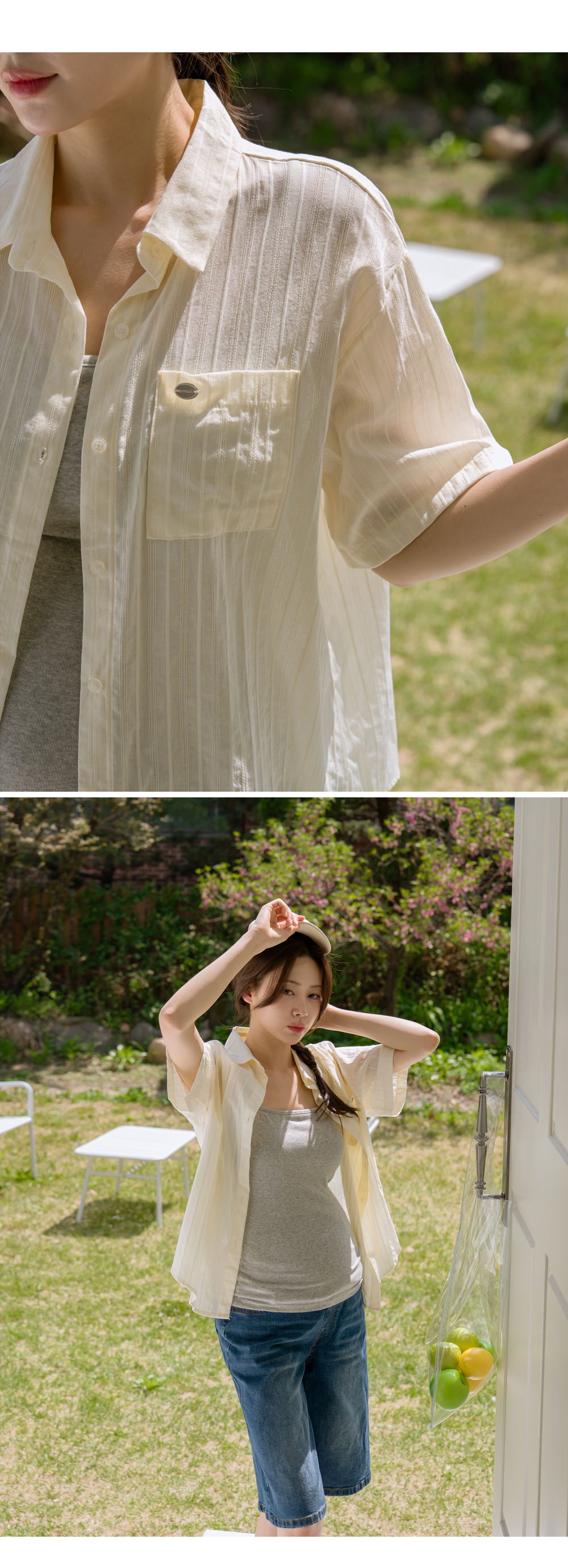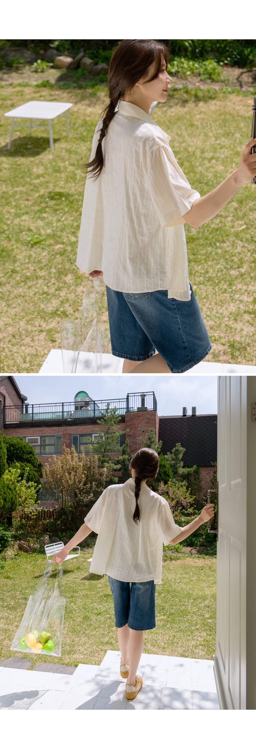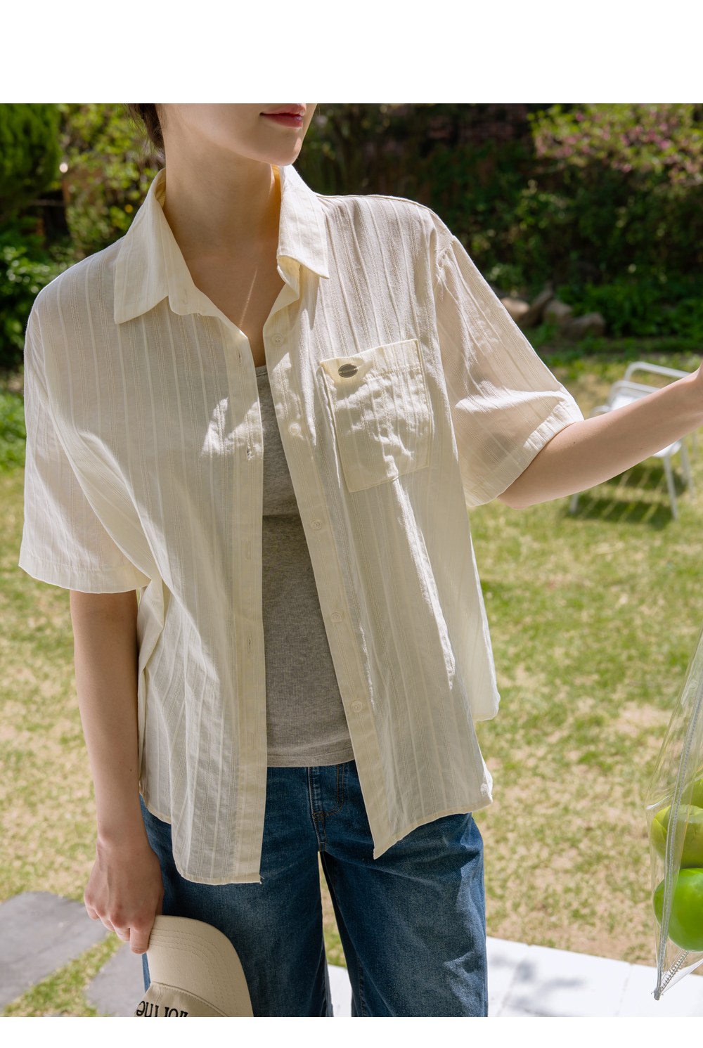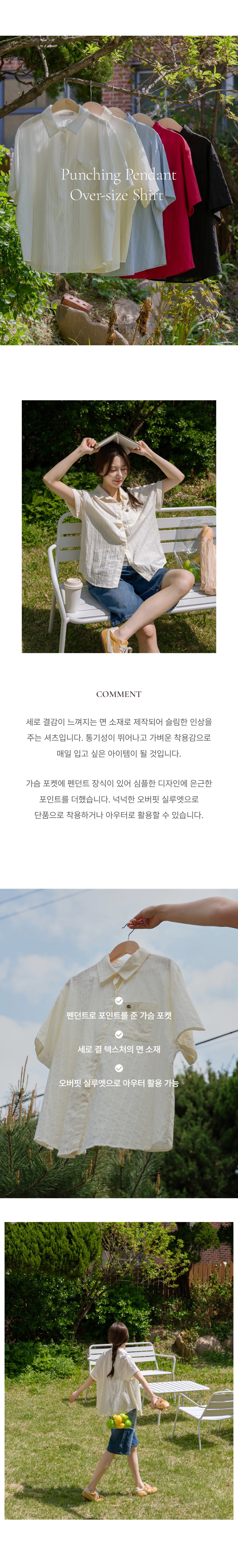 Product information면 소재로 제작된 반팔 셔츠입니다세로 결감이 있는 텍스처가 적용된 원단입니다 잔잔한 스트라이프 형태로 보이는 패턴입니다 얇은 두께감의 통기성 있는 소재입니다 여유 있는 오버핏 실루엣으로 제작되었습니다 가슴 포켓 디테일이 포함된 디자인입니다 포켓에 펜던트 장식이 부착된 제품입니다 |