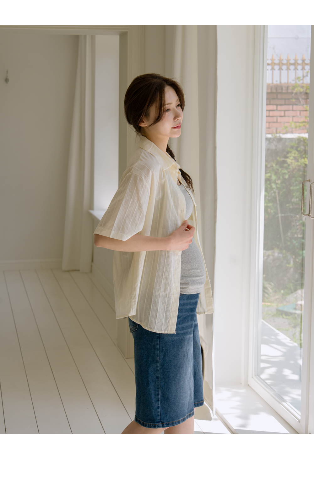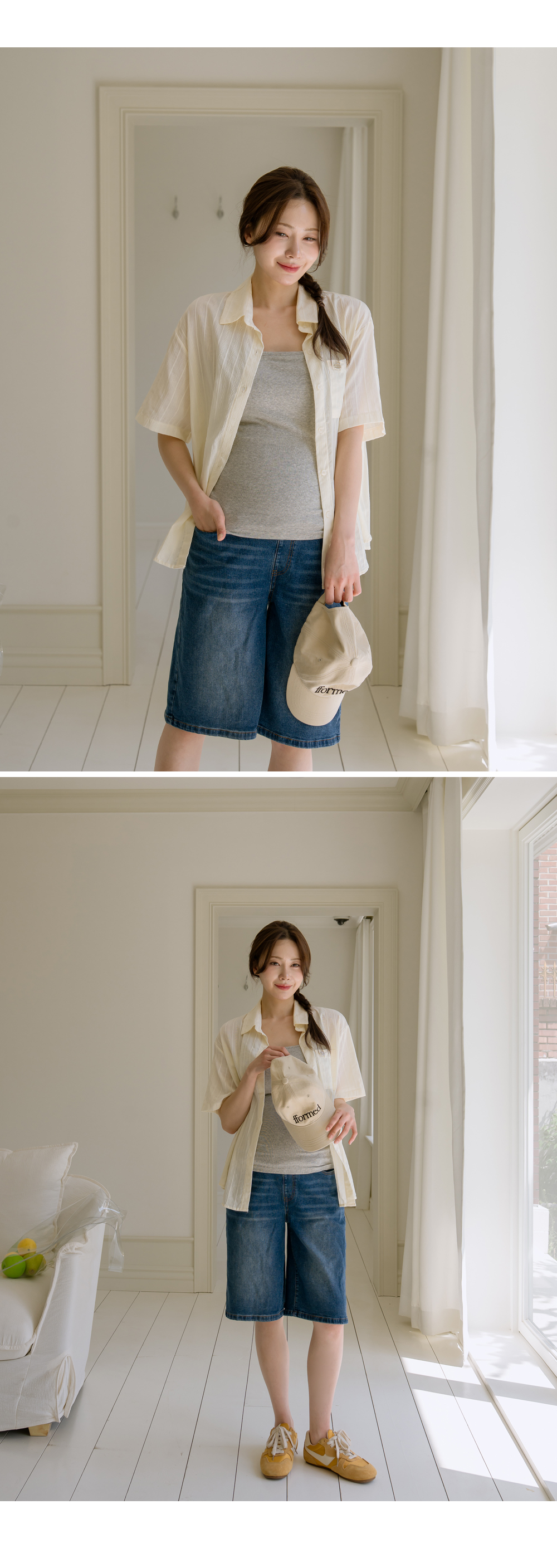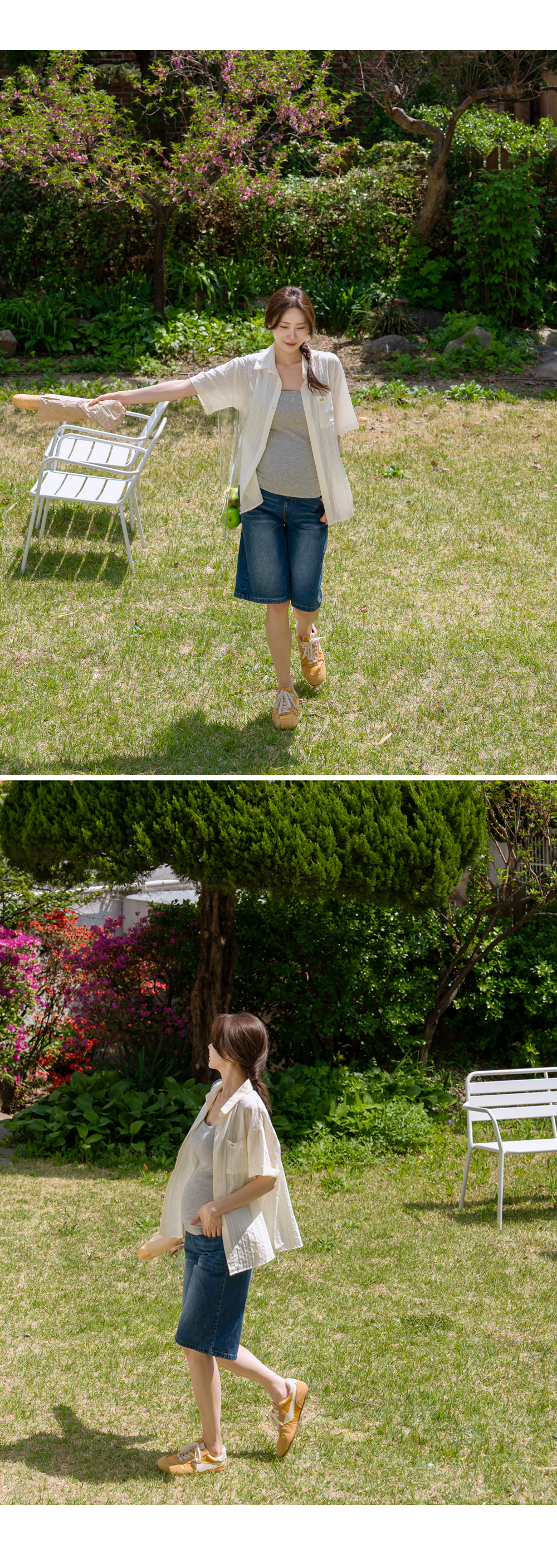 - [🌷Bermuda Shorts/Jean Shorts] [S-made] Maternity* Reverse Pocket Washed Knee-length Maternity Jeans