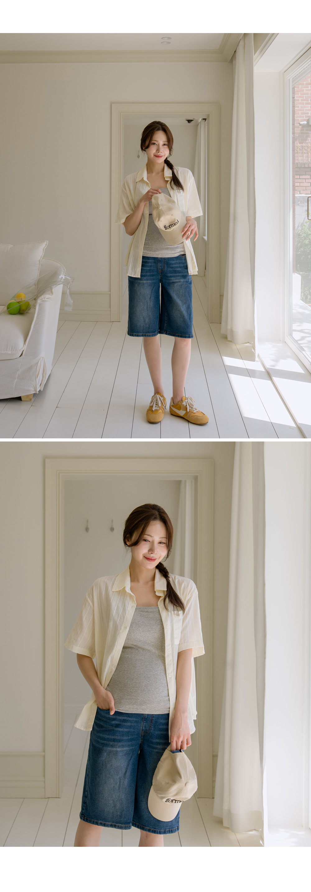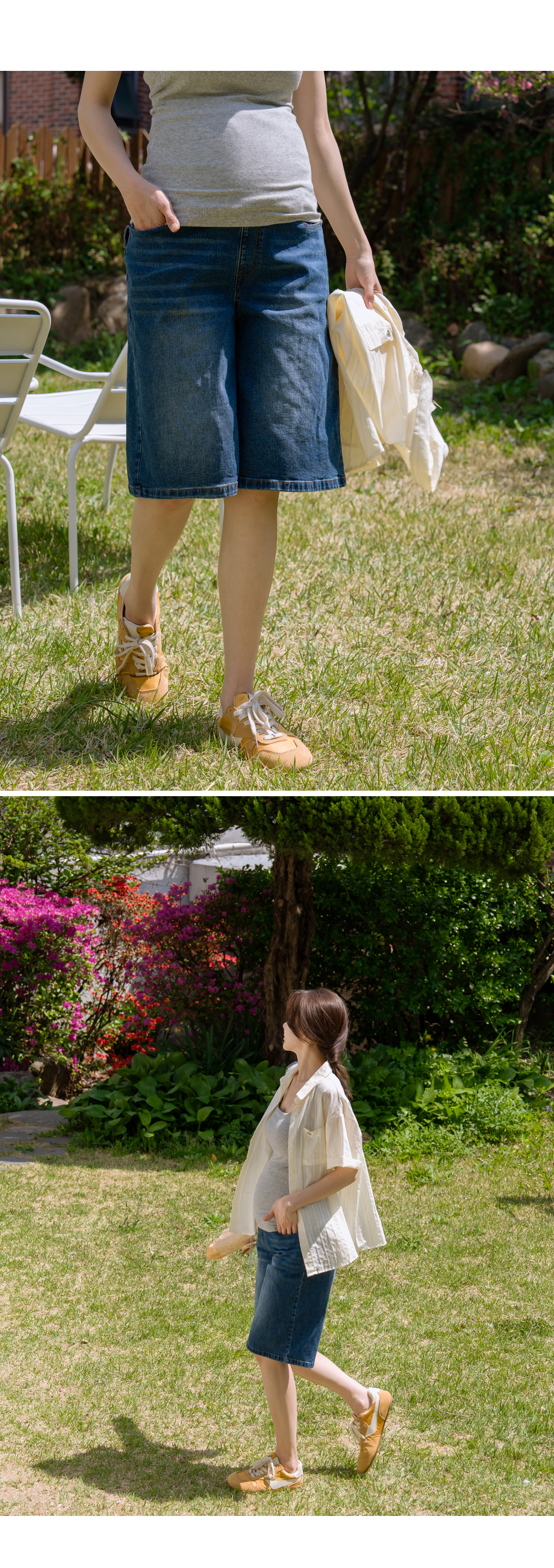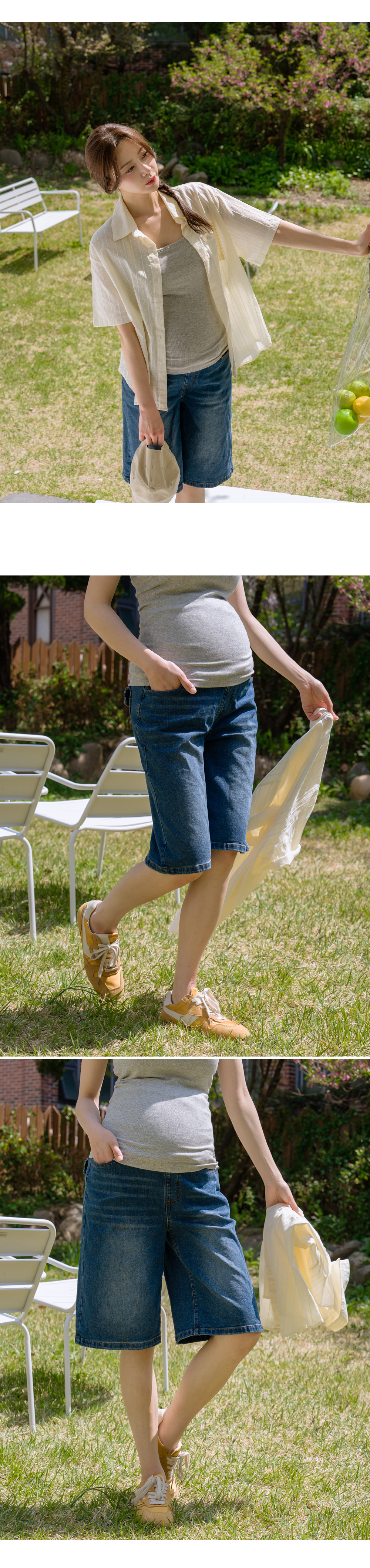 [๐ทBermuda Shorts/Jean Shorts] [S-made] Maternity* Reverse Pocket Washed Knee-length Maternity Jeans