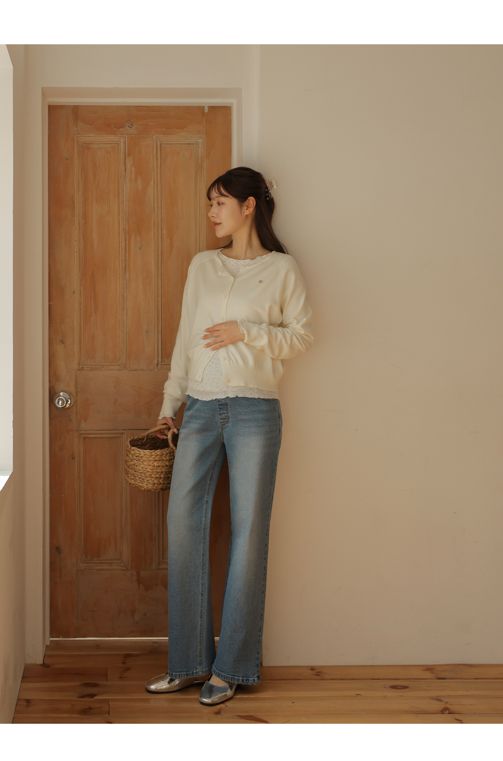 [200% usability/layered/excellent feel] [S-made] Maternity*Shavet pendant round maternity cardigan