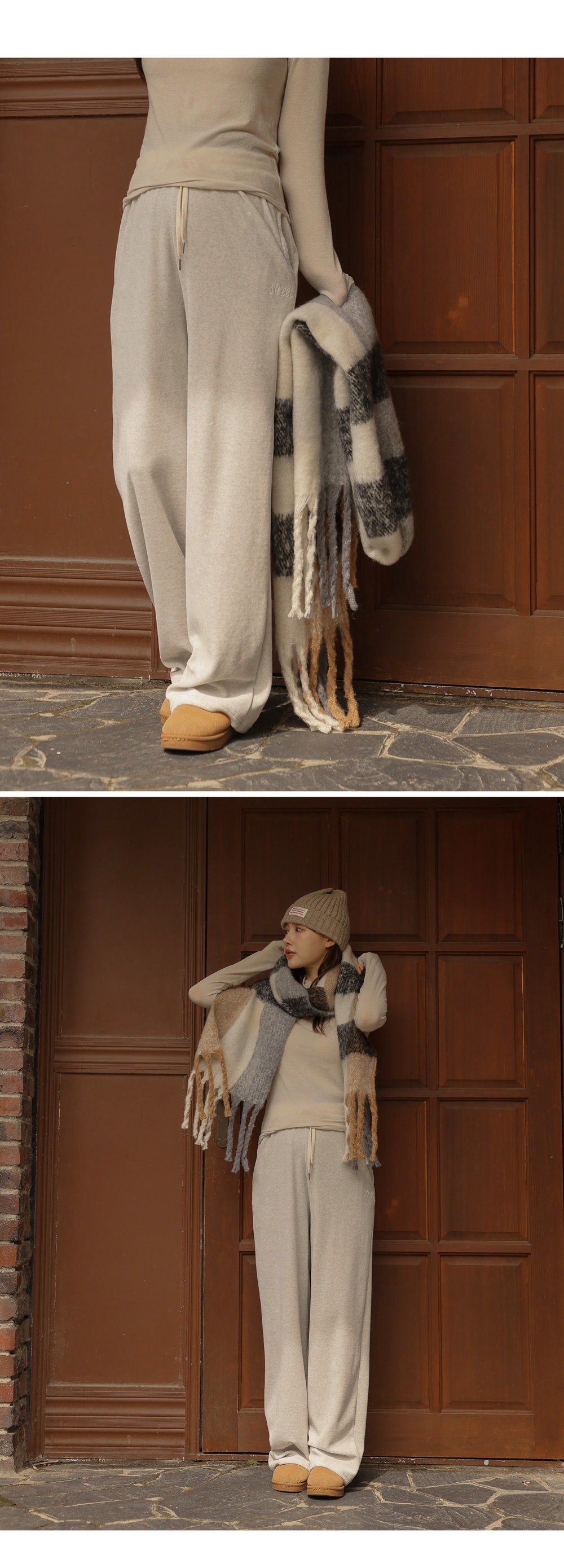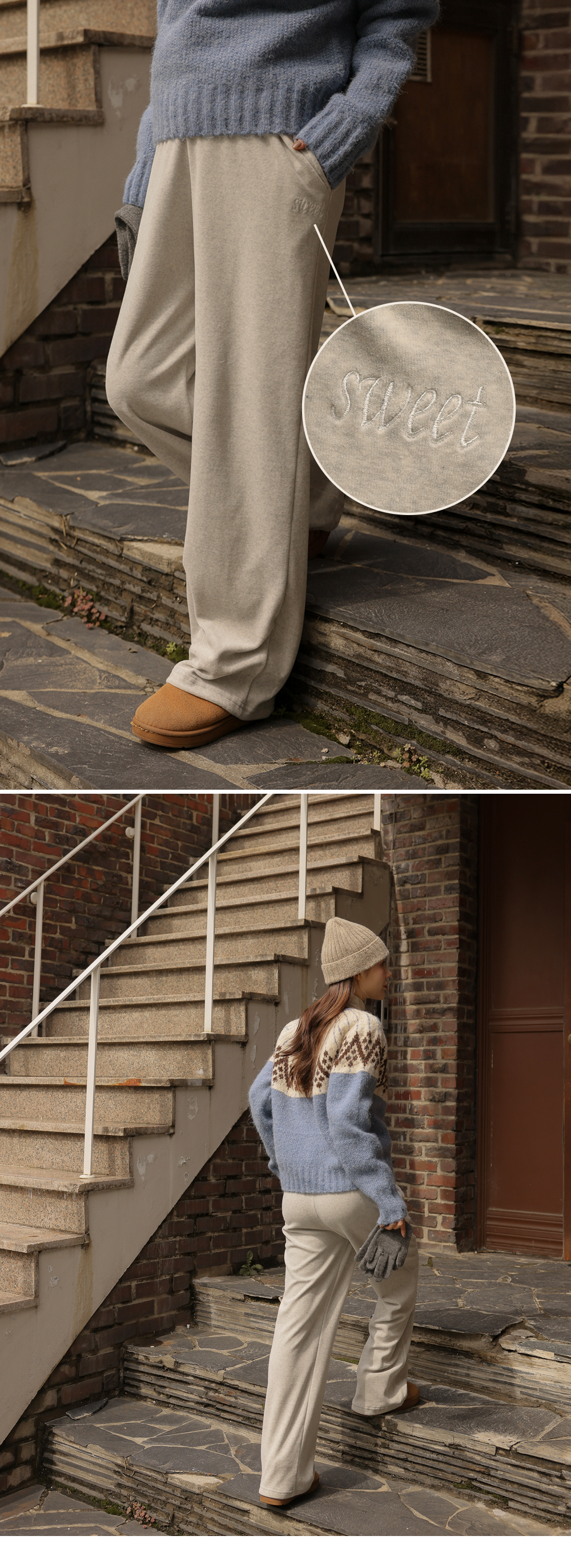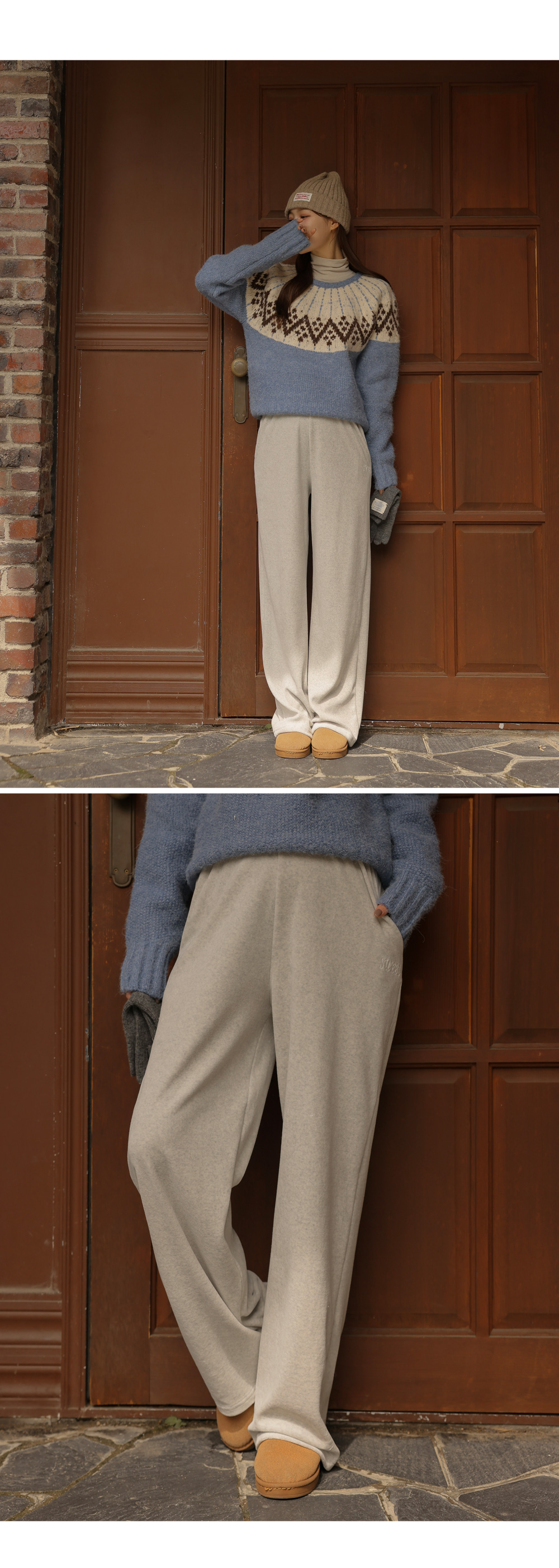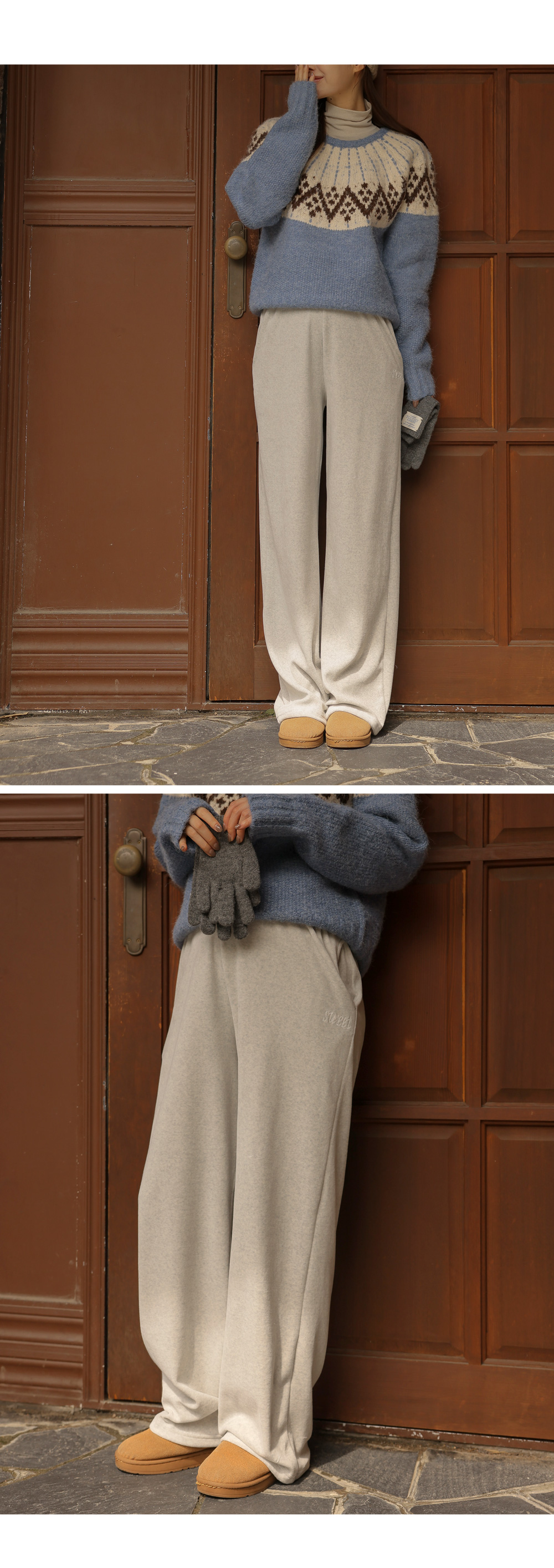 [Cozy fleece material/full banding/adjustable straps] [S-made] Maternity*Color-adjustable fleece wide maternity pants