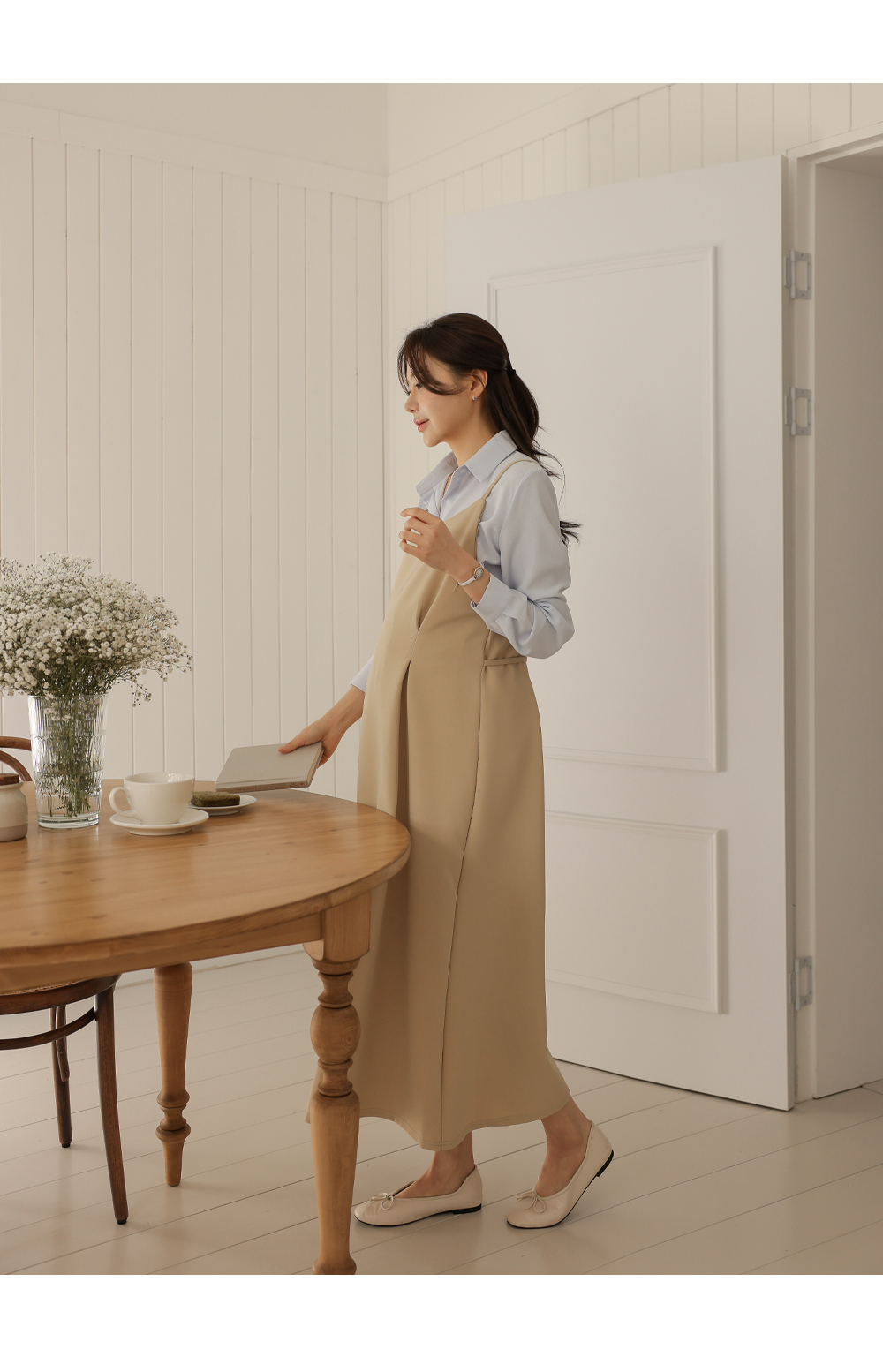 탄탄한 소재로 더 깔끔하게, 격식룩에 찰떡인 뷔스티에드레스 소임 임부복 임신복 임부옷 임부원피스 임부외출복 임부정장 직장임부 직장인임부복 임부복예쁜곳 F사이즈 77사이즈 하객룩 뷔스티에 나시원피스 롱원피스 돌잔치 2부드레스 조절 리본 맞주름 핀턱 ----------------------------------------------------------------------------------------------