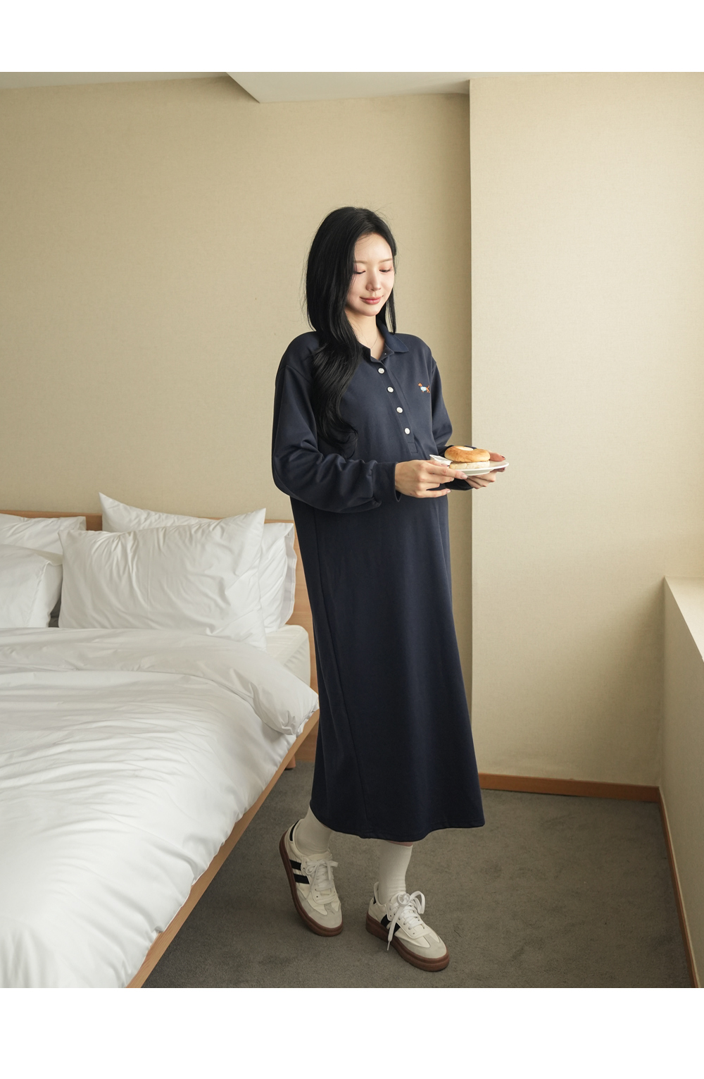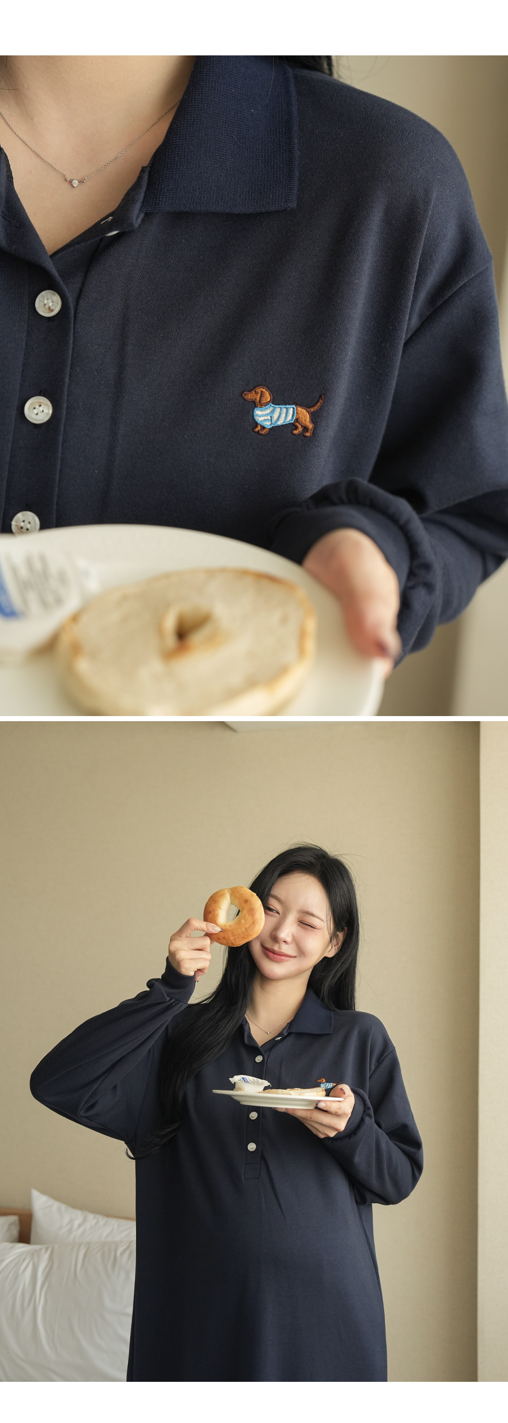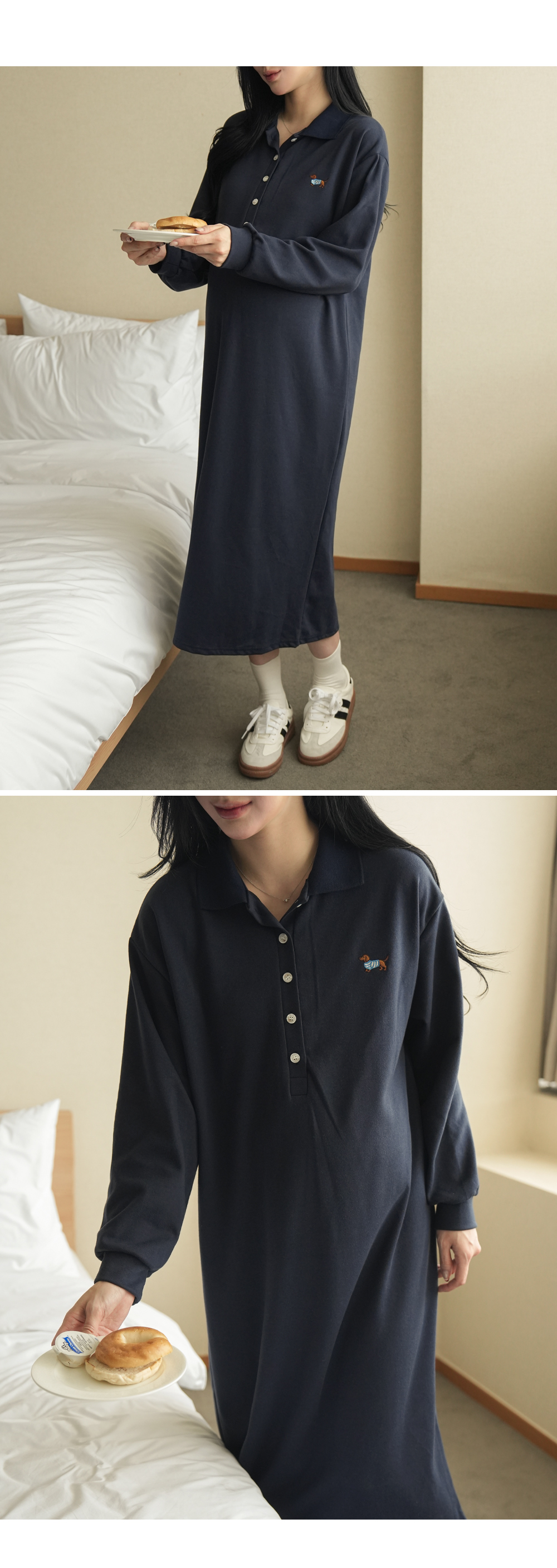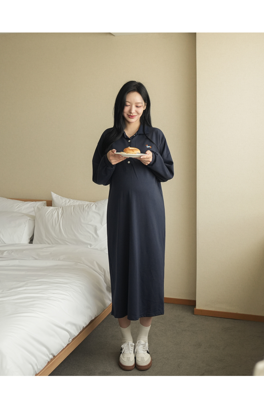 [Limited-time discount] [Cute embroidery] [S-made] Maternity* Cute Hunt embroidery maternity dress (breastfeeding possible)