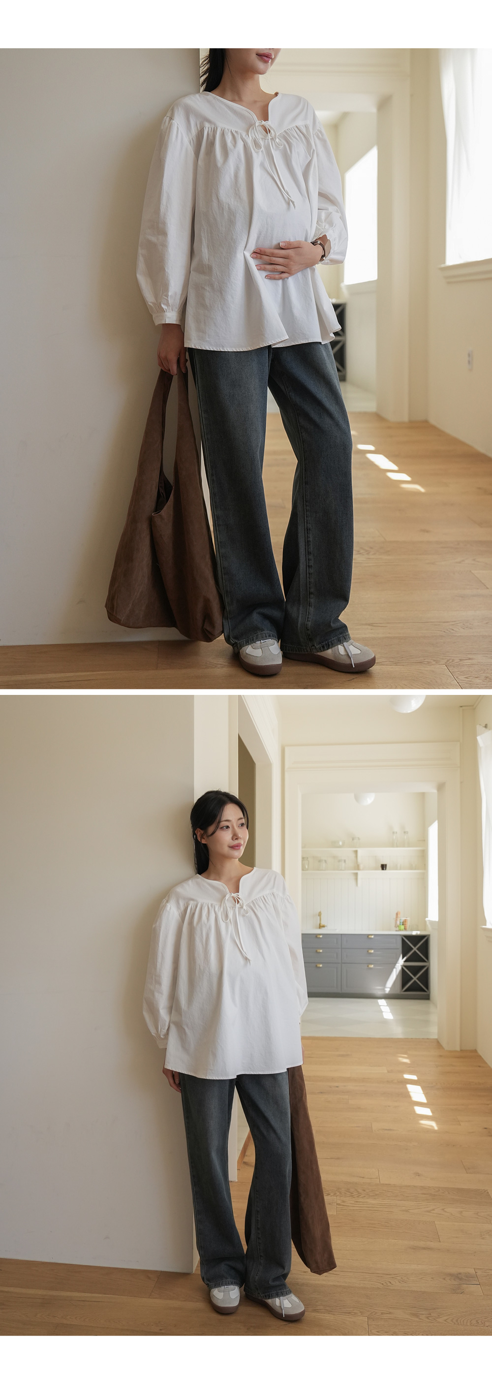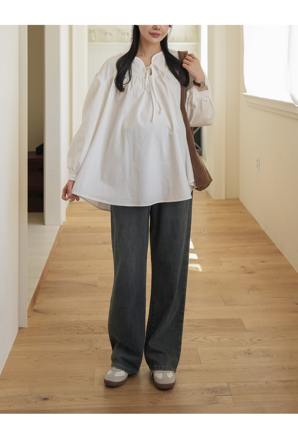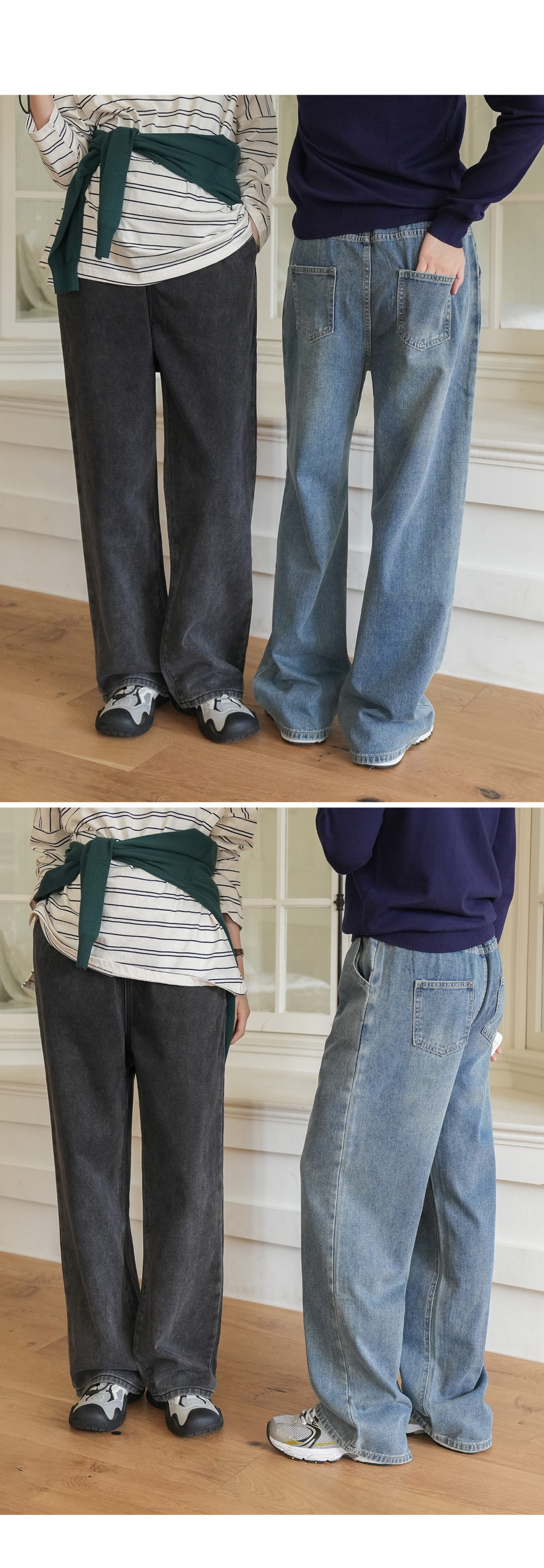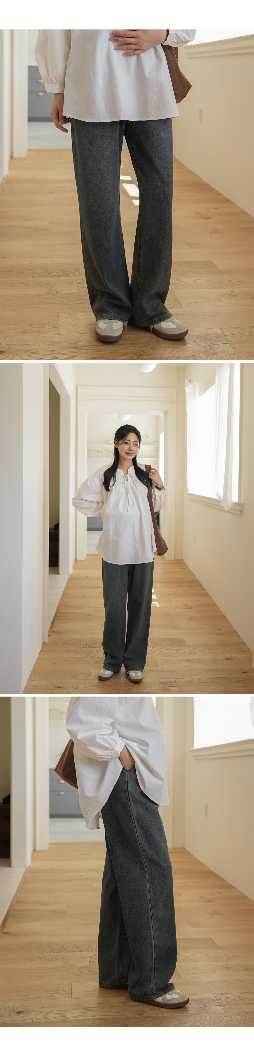 [Limited-time discount] Maternity*Vintage denim wide-stopper maternity pants