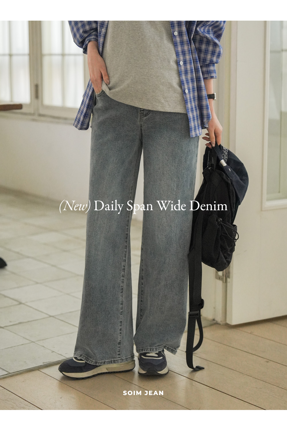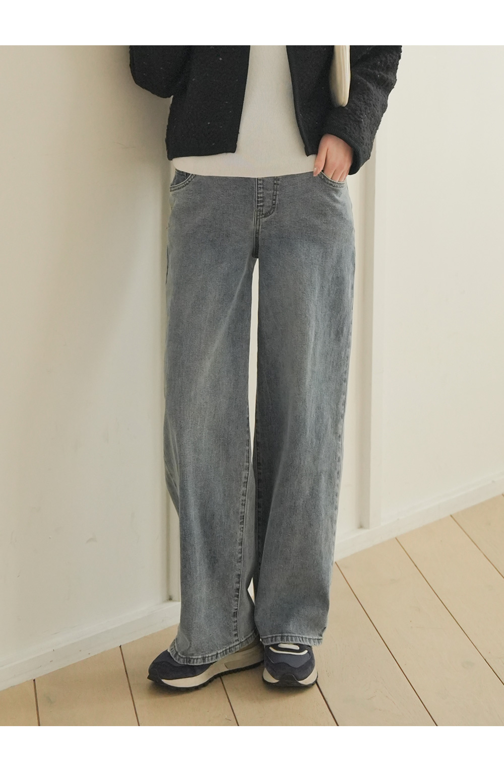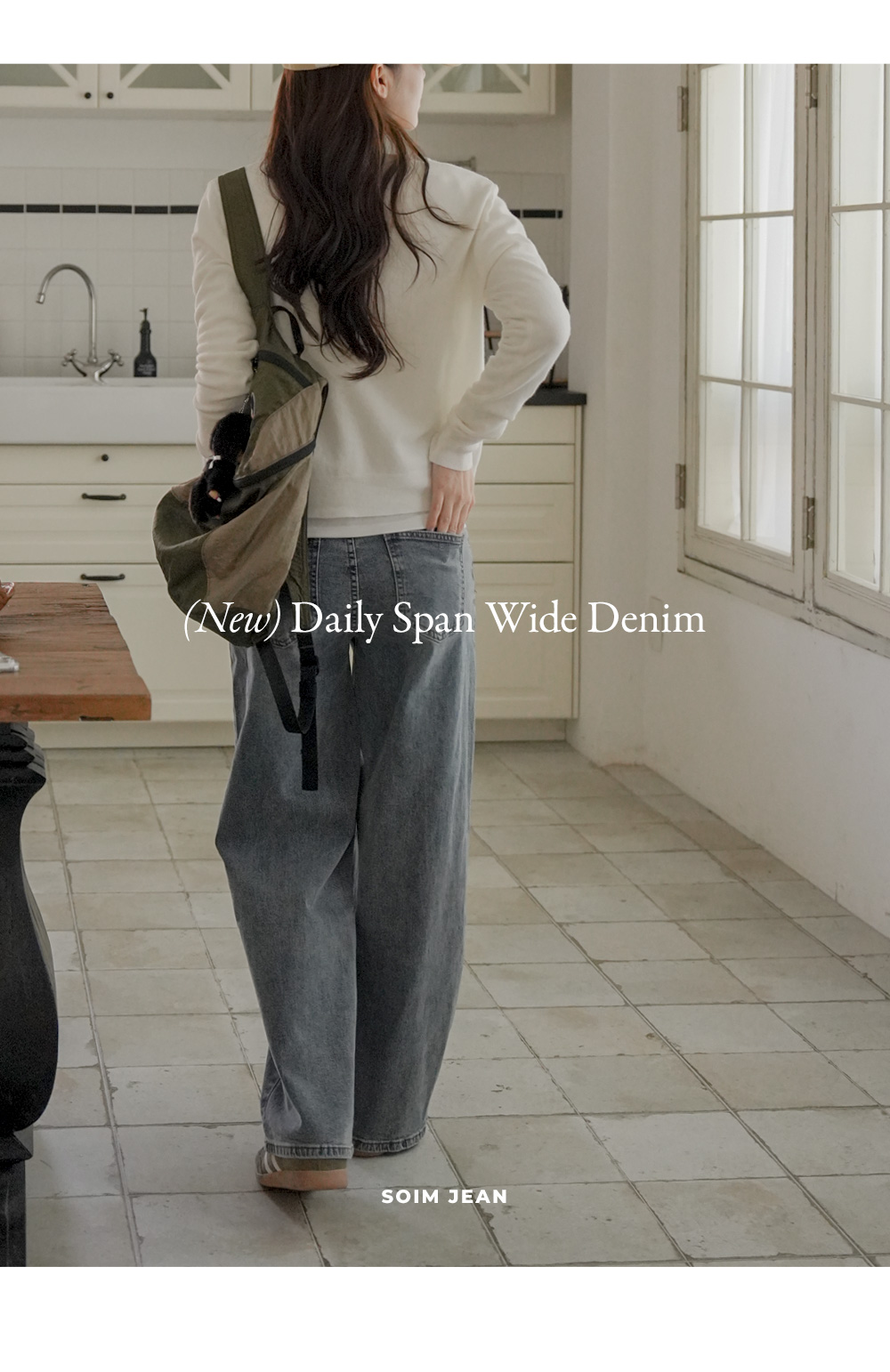 Wide denim pants with a natural mood