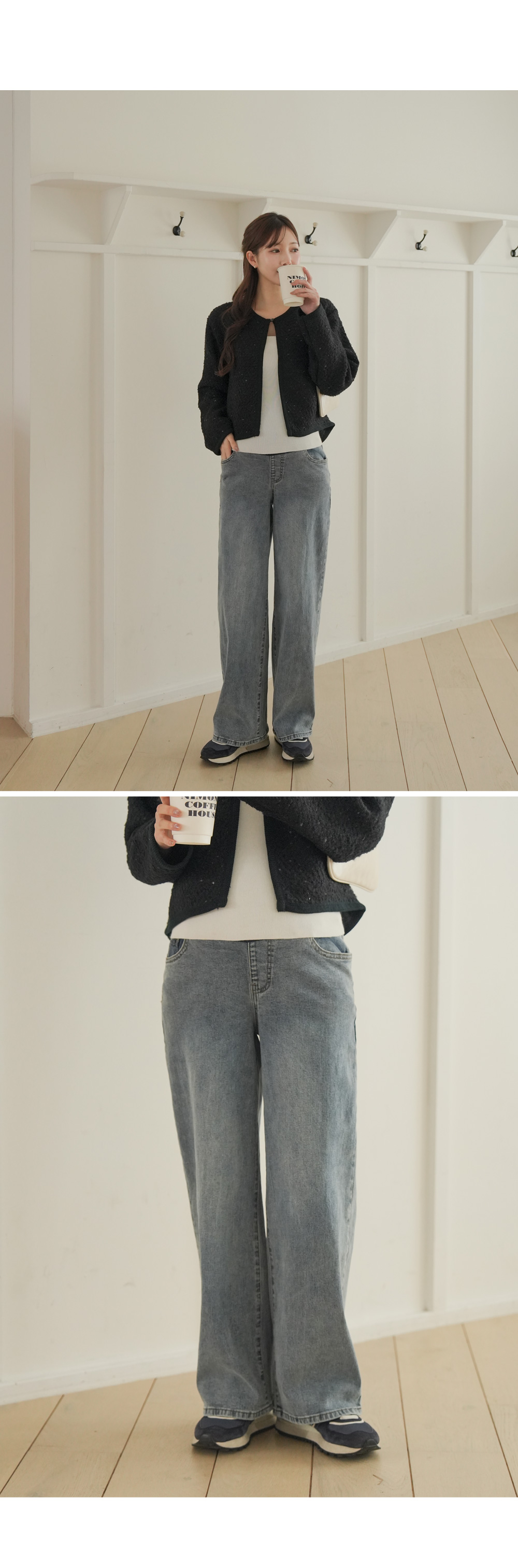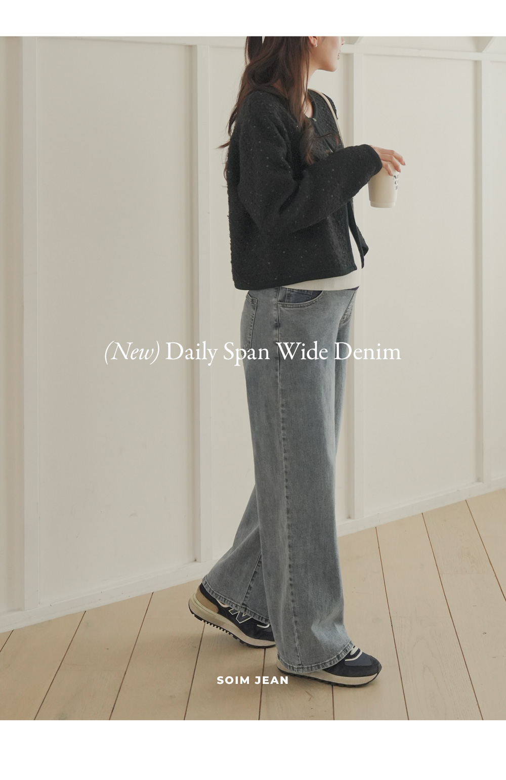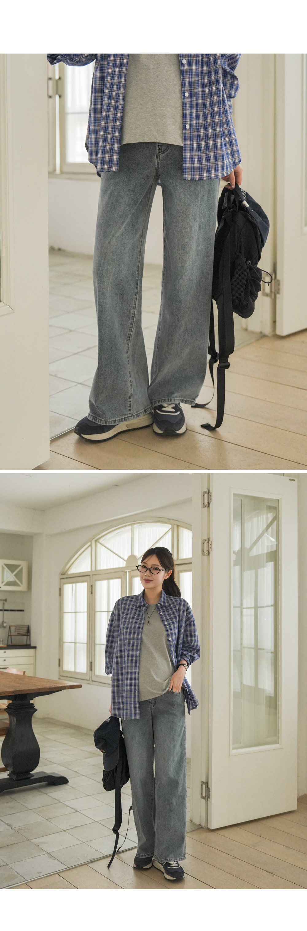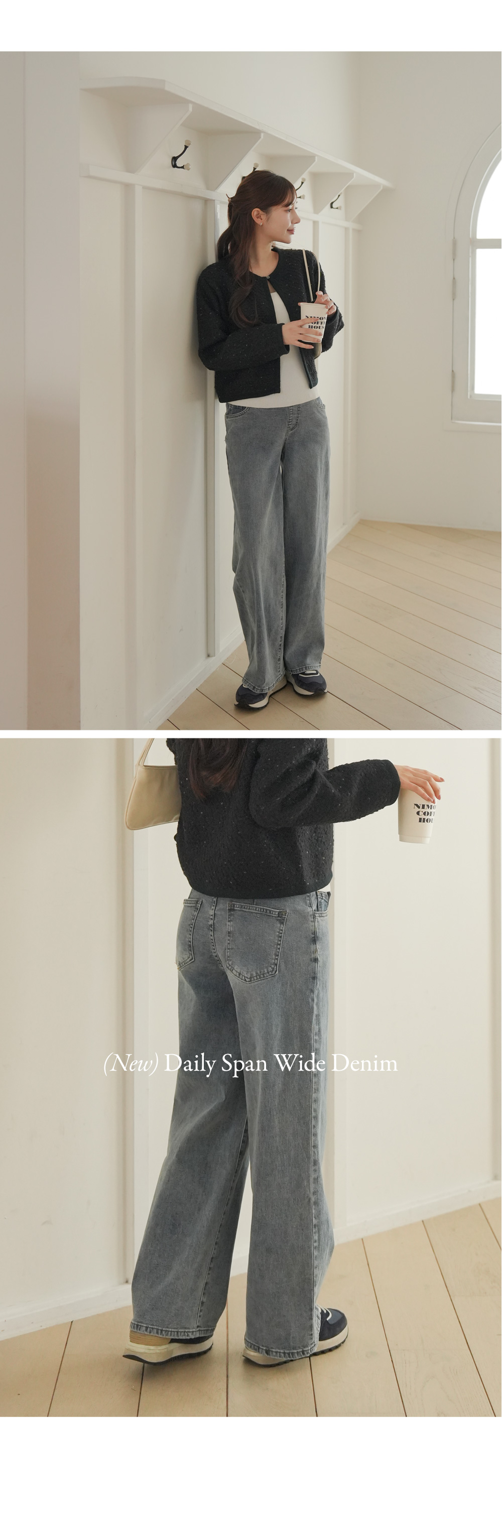 Wide denim pants with a natural mood
