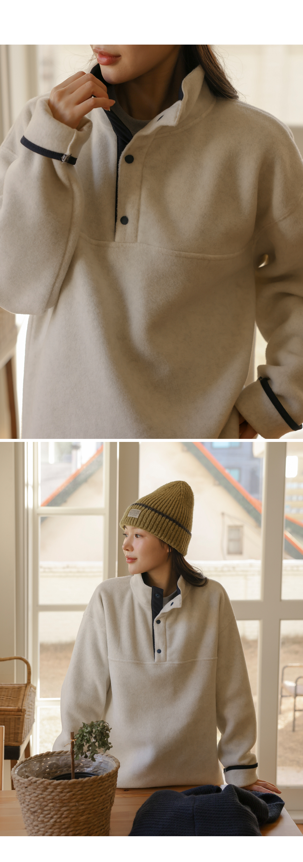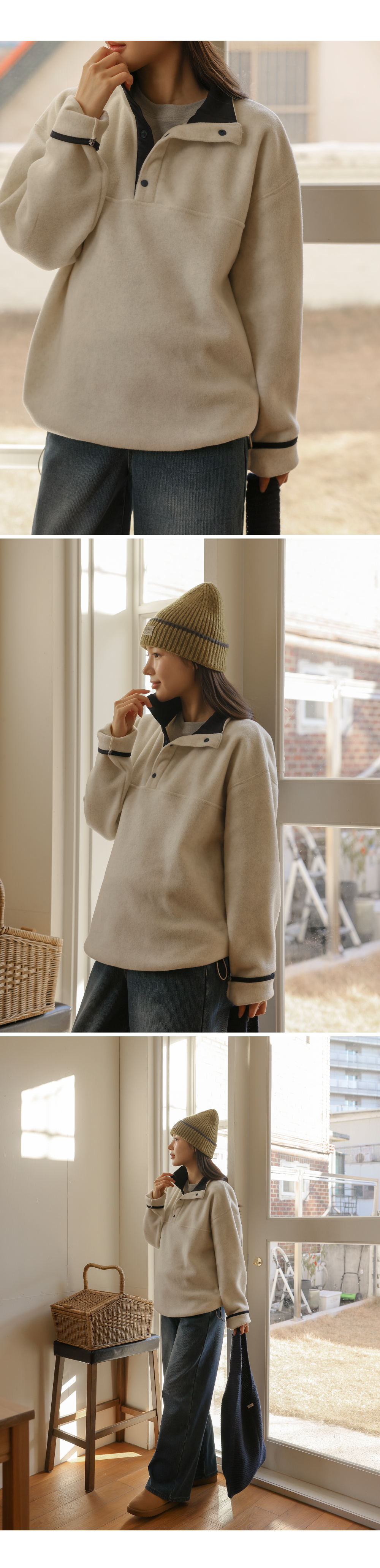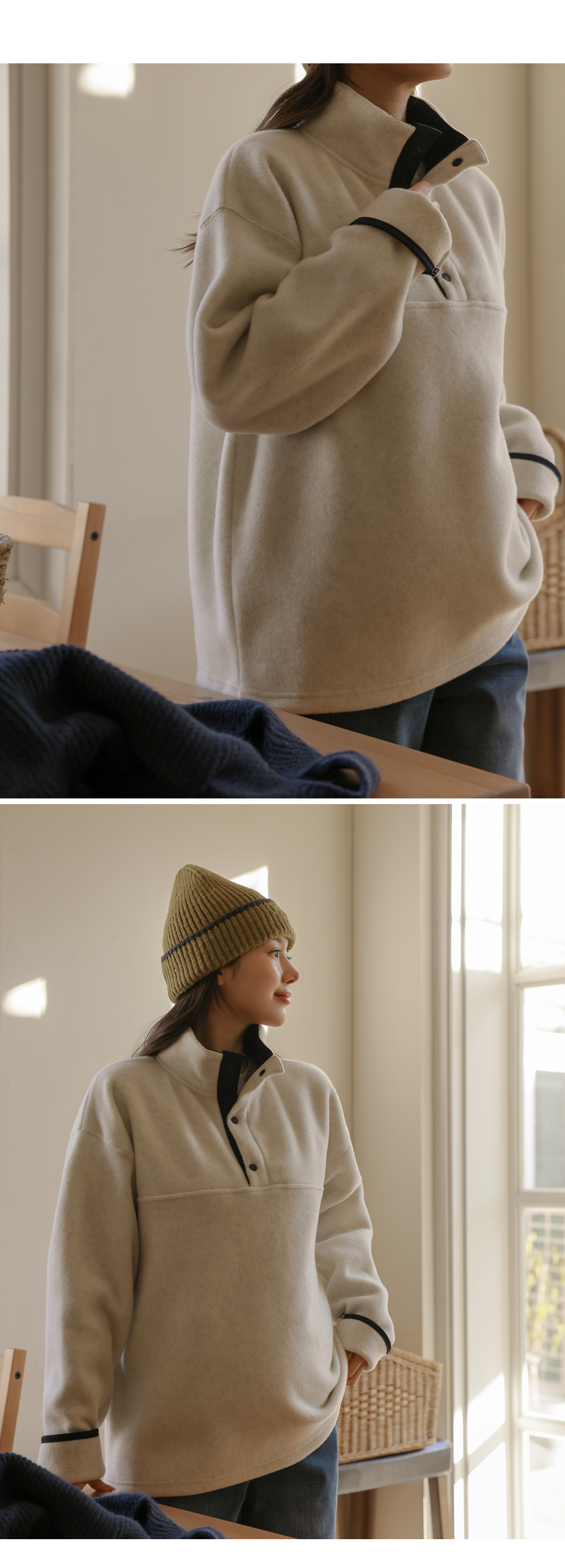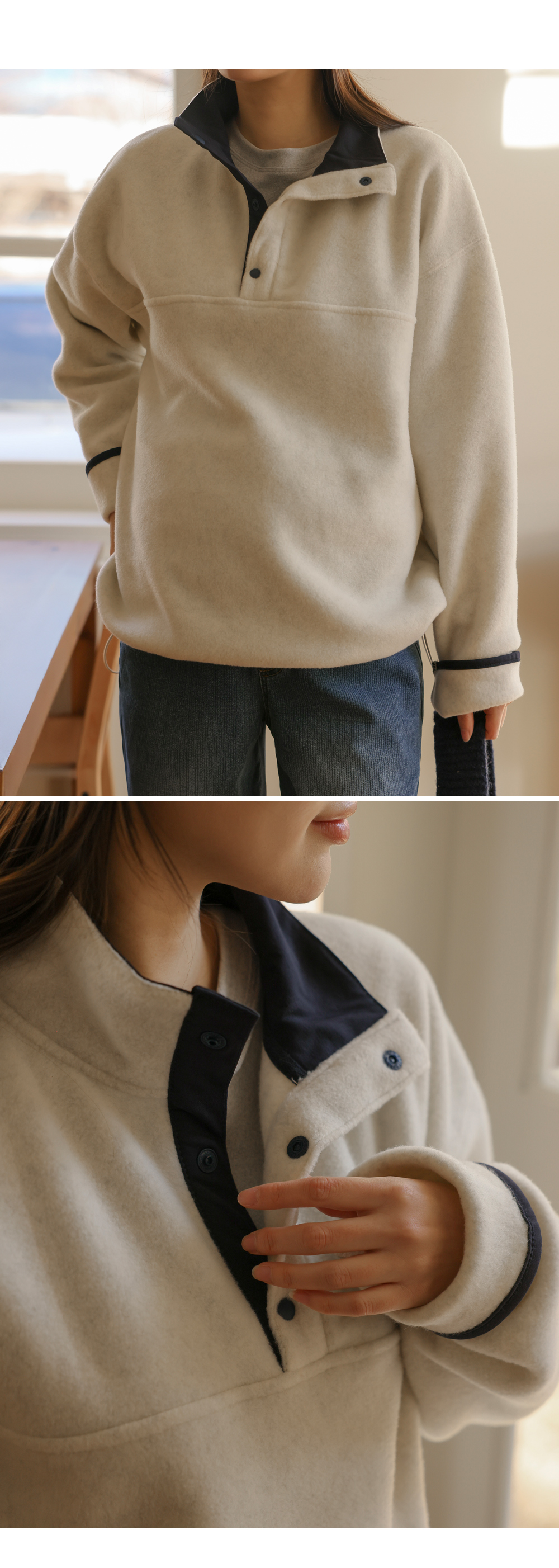 [Opening Special] [Adjustable/Hot Fleece] [S-made] Maternity* Fleece Warm Half-Open Color Block Maternity Man-to-Man