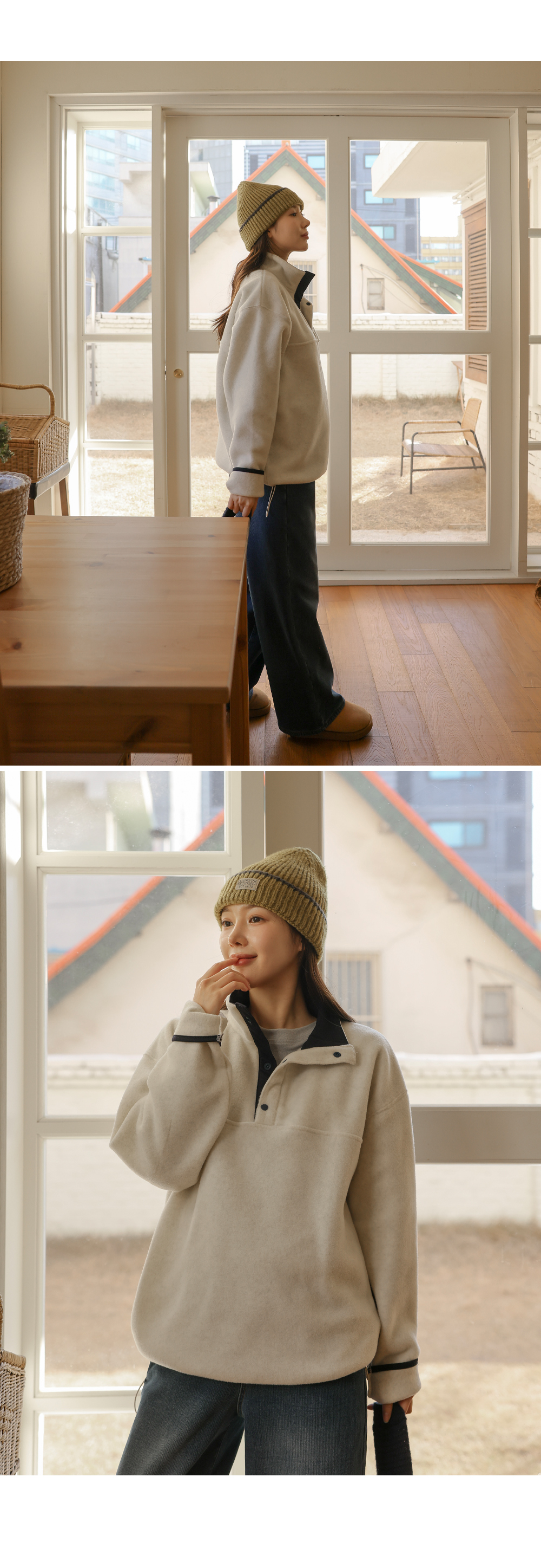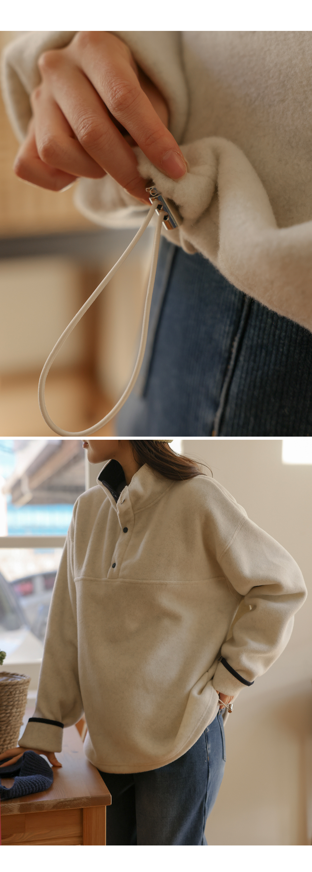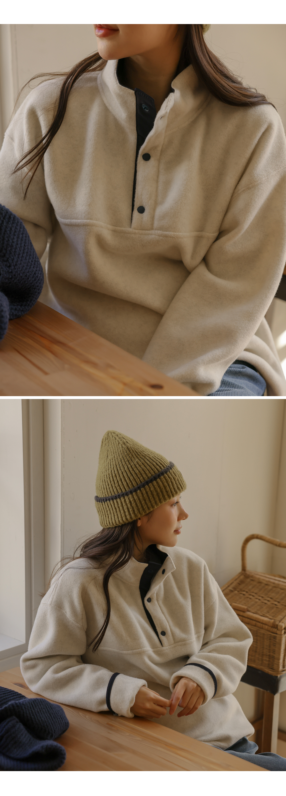 [Opening Special] [Adjustable/Hot Fleece] [S-made] Maternity* Fleece Warm Half-Open Color Block Maternity Man-to-Man