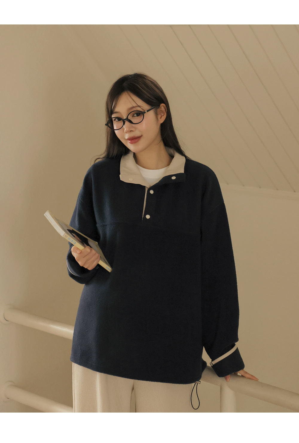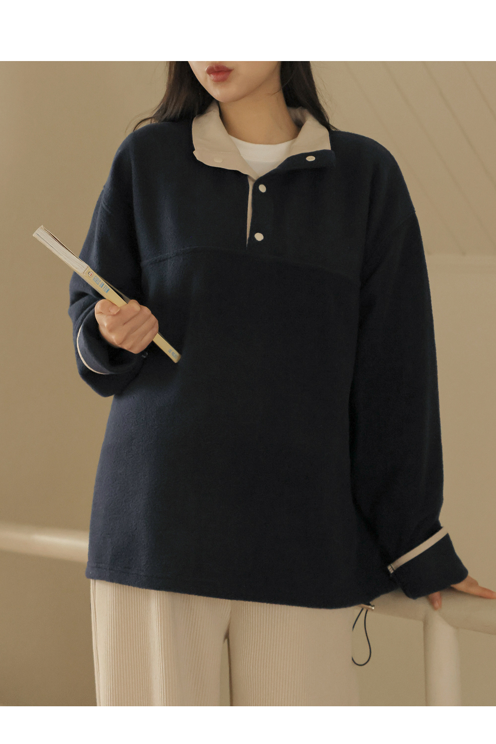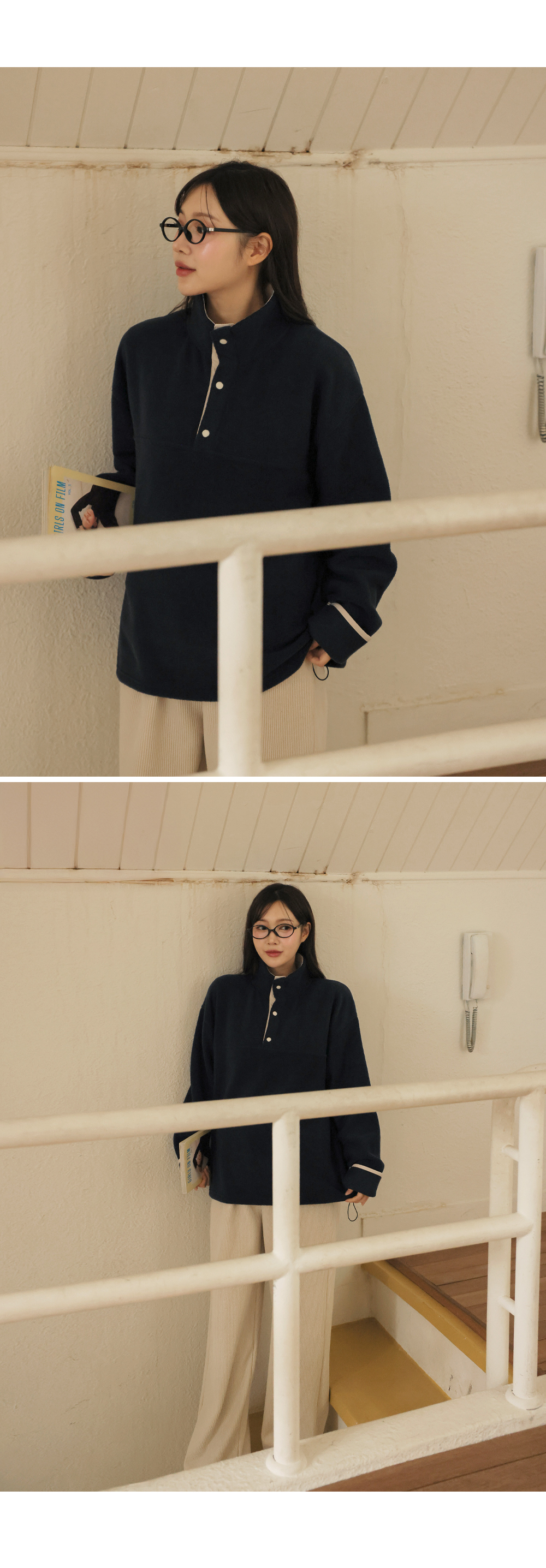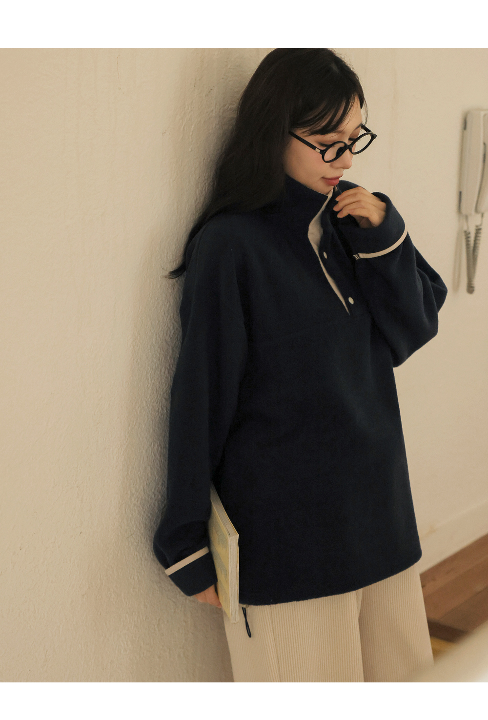 [Opening Special] [Adjustable/Hot Fleece] [S-made] Maternity* Fleece Warm Half-Open Color Block Maternity Man-to-Man