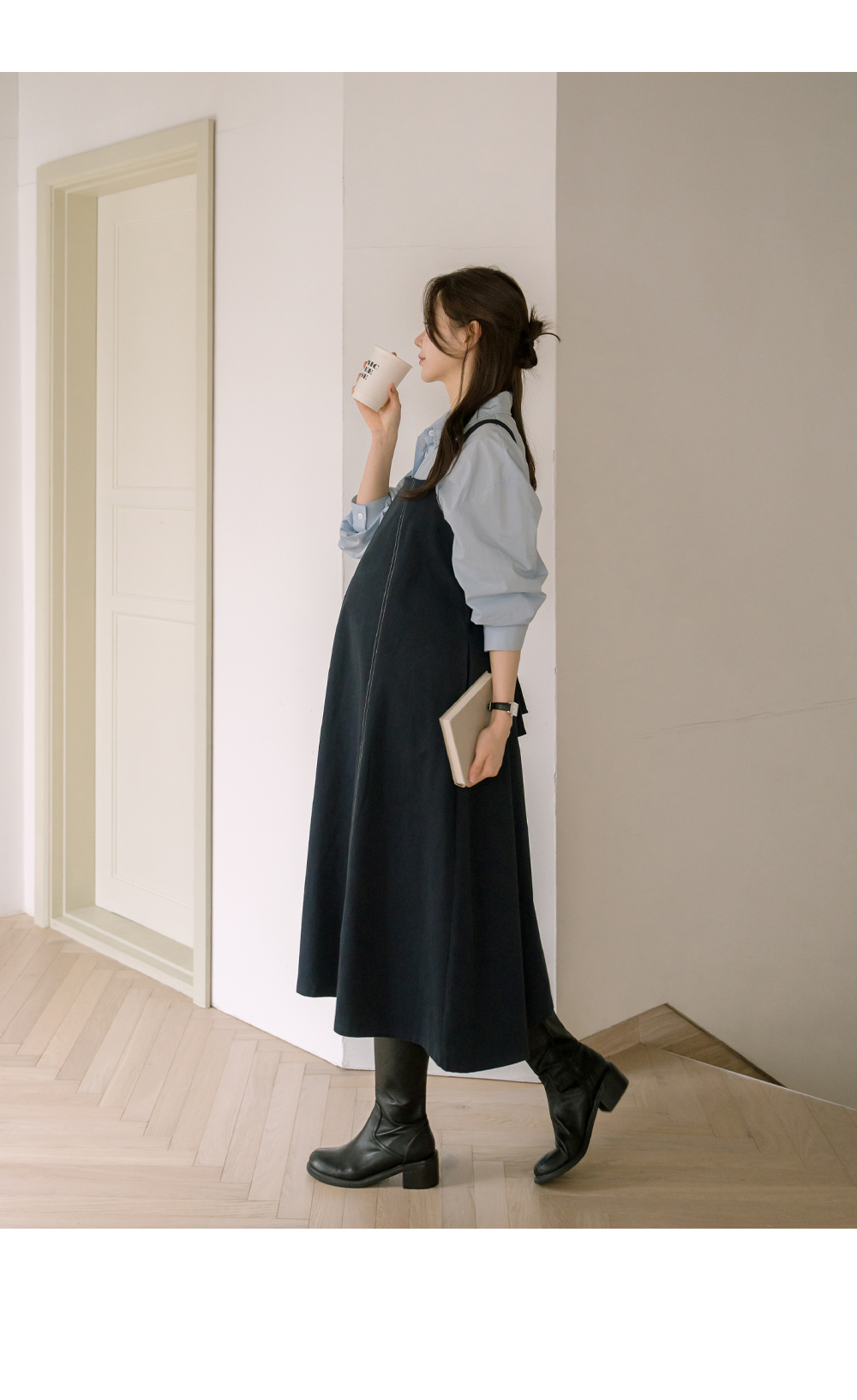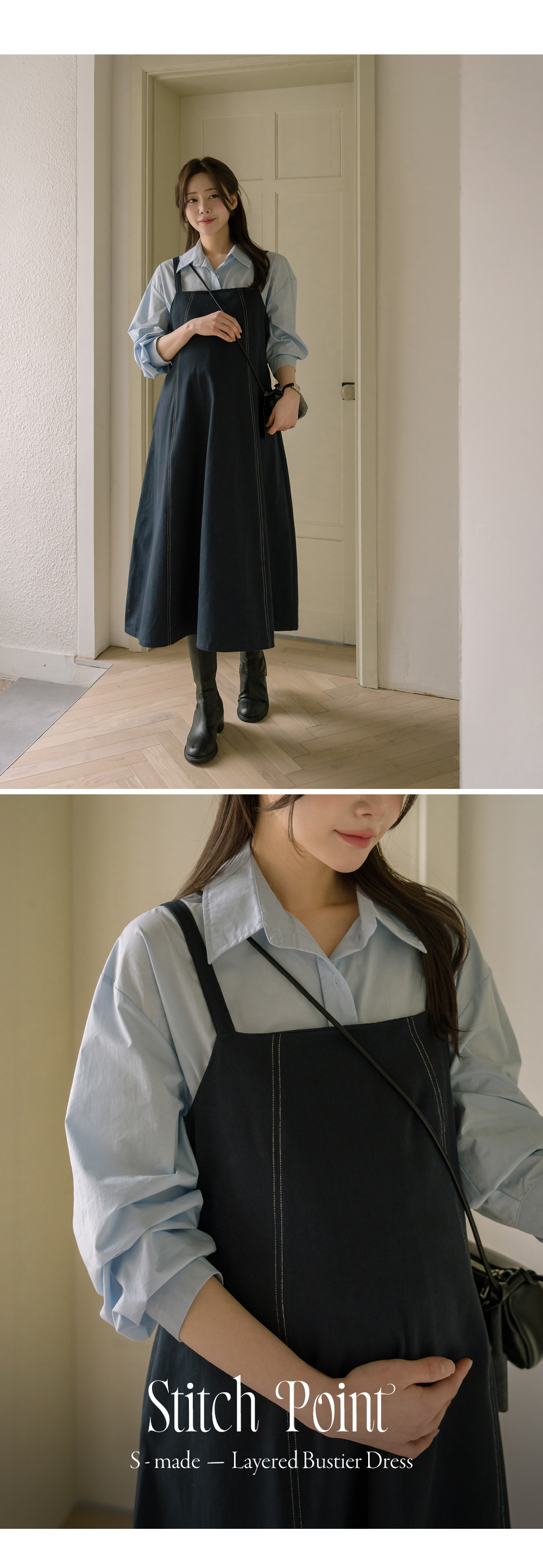 [Opening Special] [Popular Item] [S-made] Maternity*Cotton Twill Stitch Layered Maternity Dress