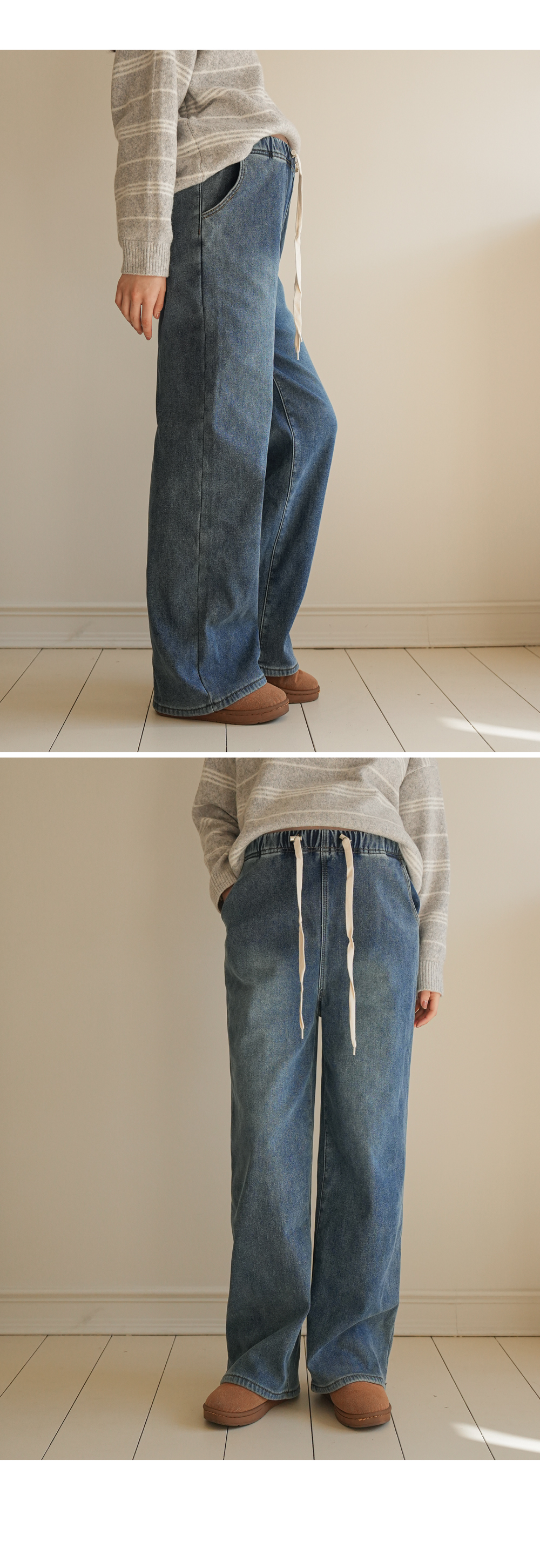 [Opening Special] [Soft Material/Mink Lining/Adjustable Stopper] [S-made] Maternity*Real Soft Stopper Wide Maternity Jeans (Ribbed Fleece)