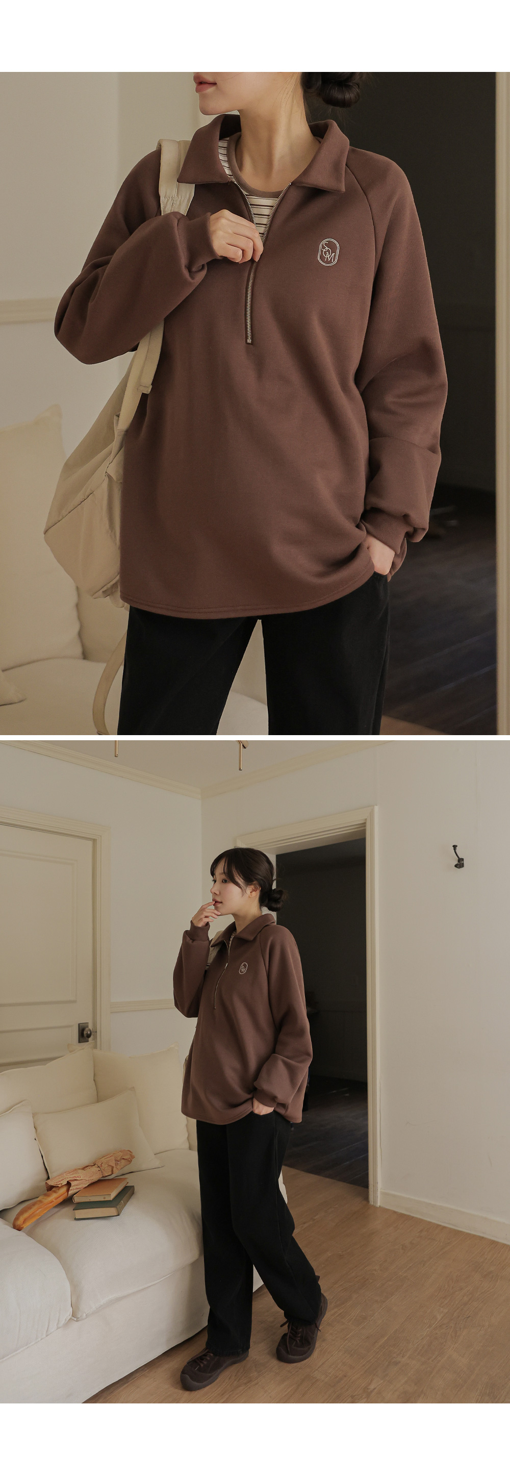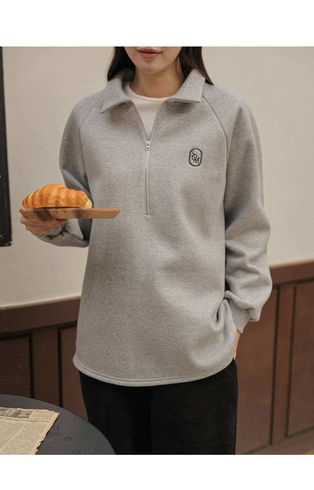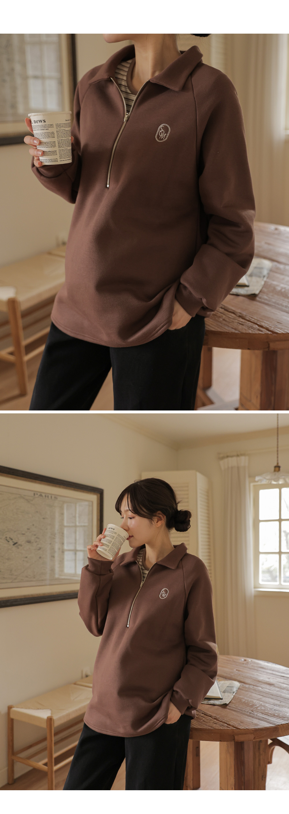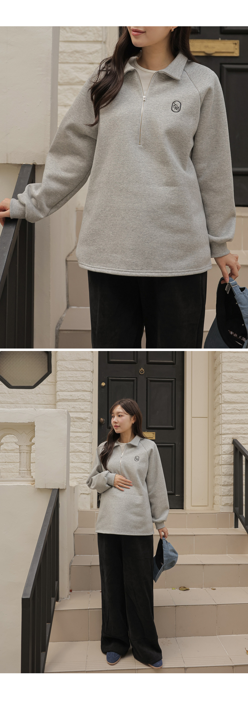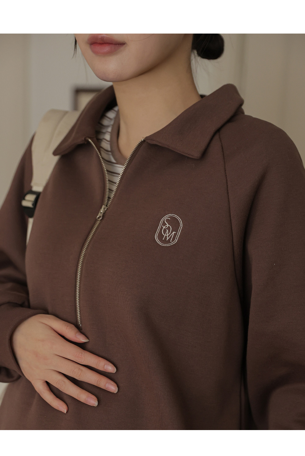 [Opening Special] [Thick Fleece/Good Fit] [S-made] Maternity*Embroidered Half-zip Collar Fleece Maternity T-shirt