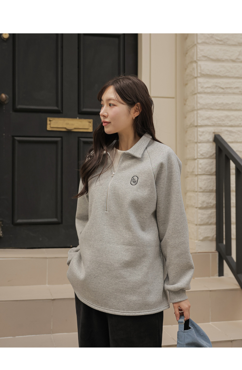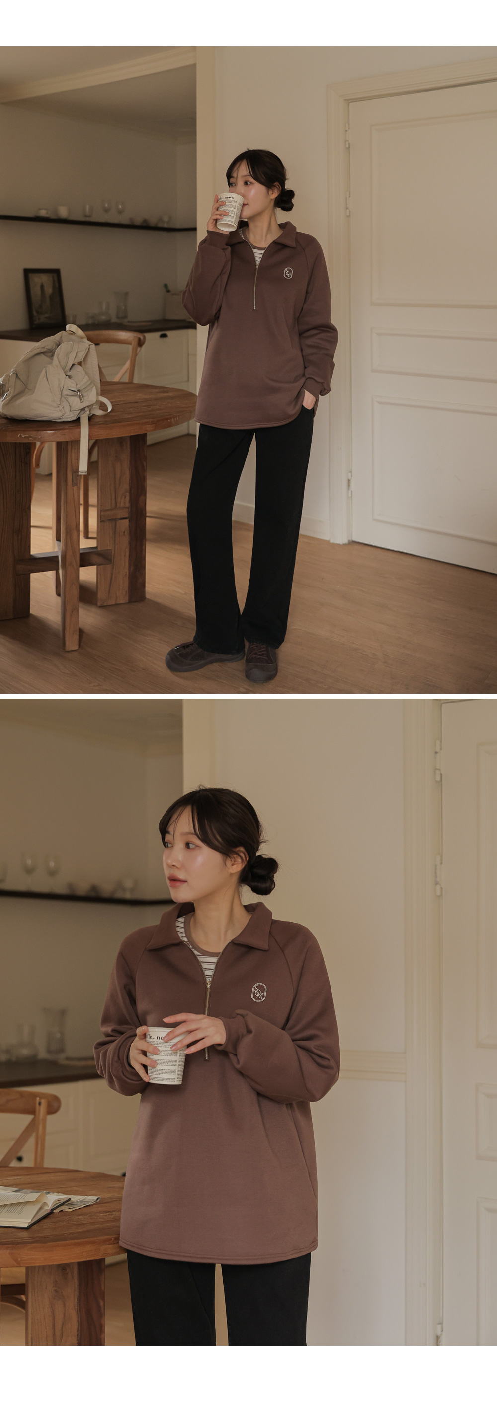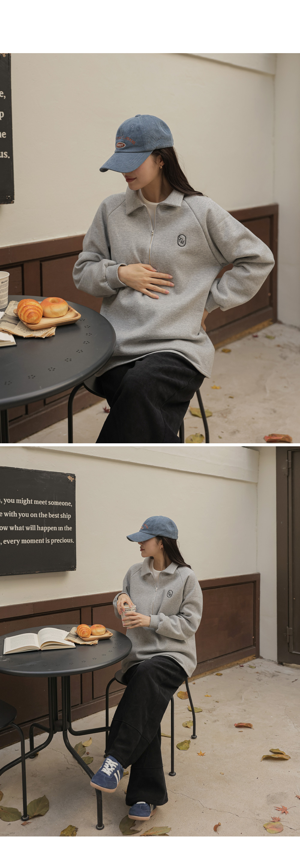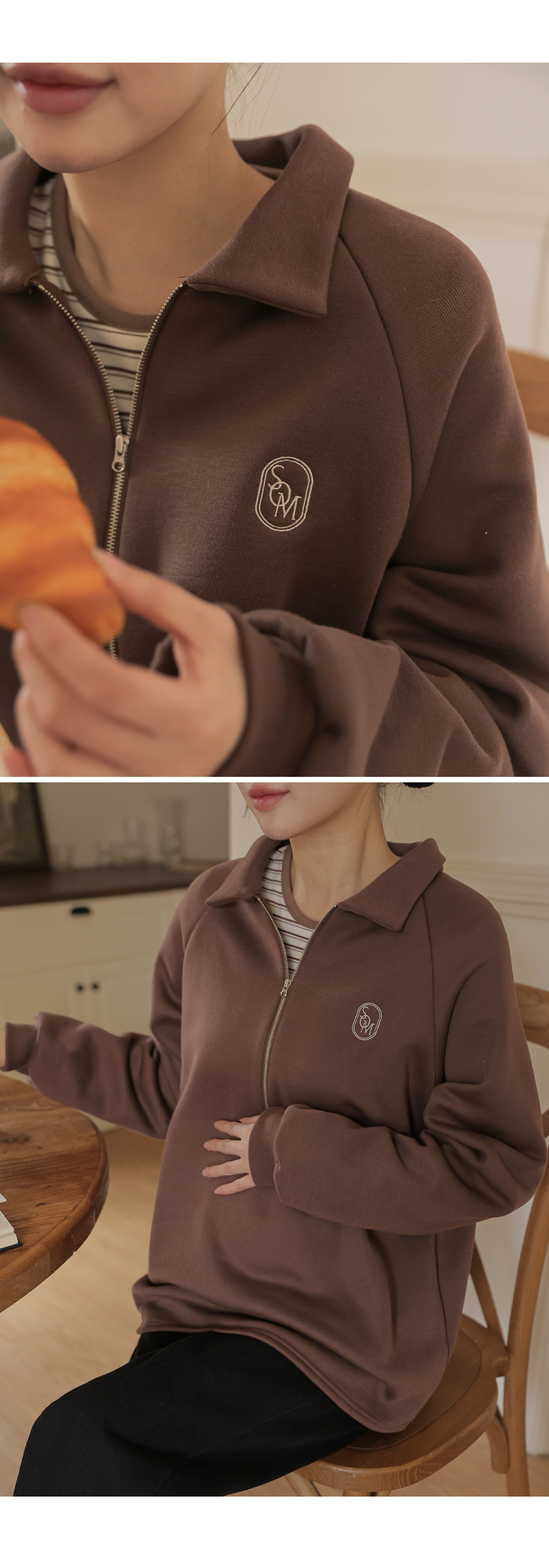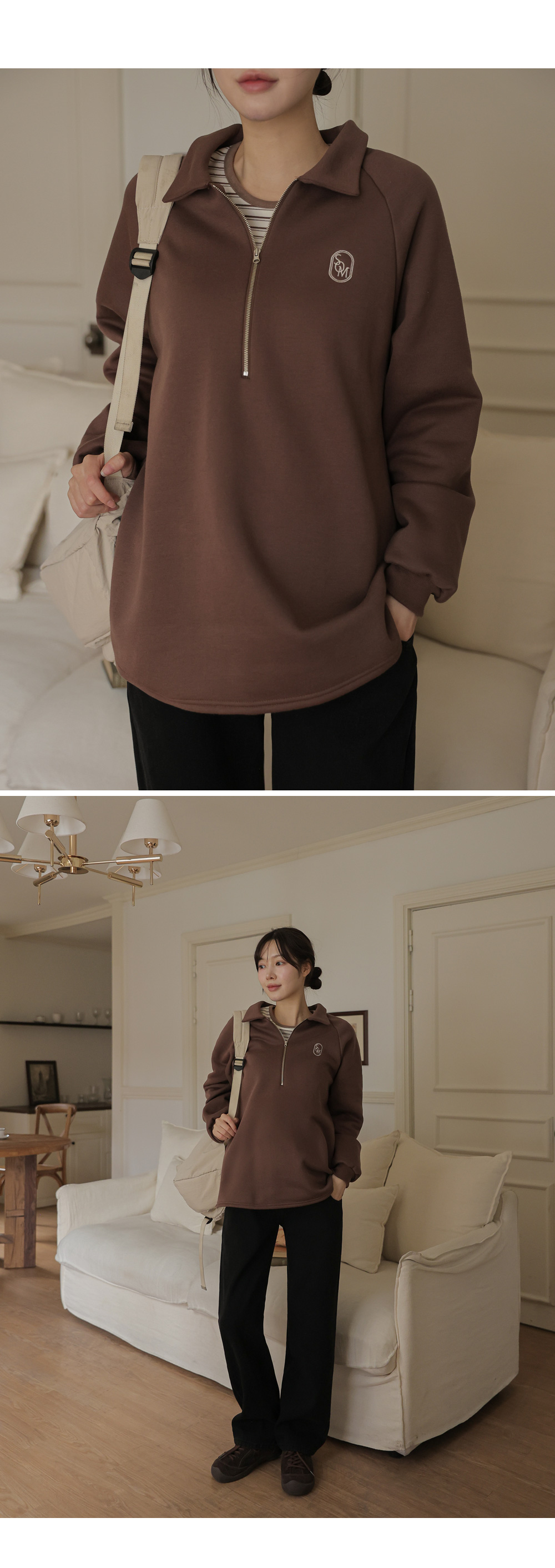 [Opening Special] [Thick Fleece/Good Fit] [S-made] Maternity*Embroidered Half-zip Collar Fleece Maternity T-shirt