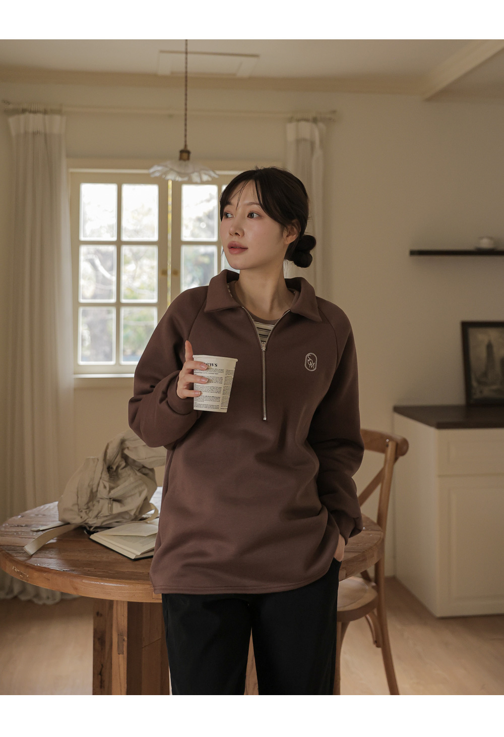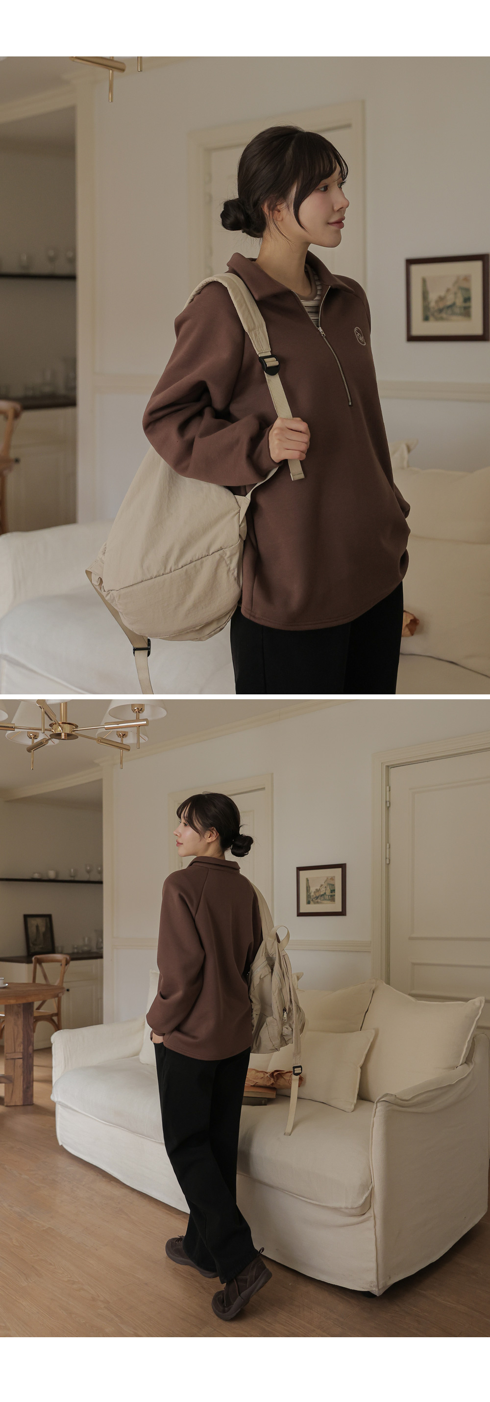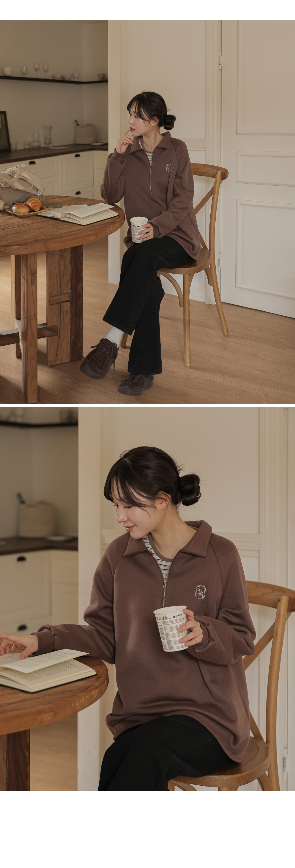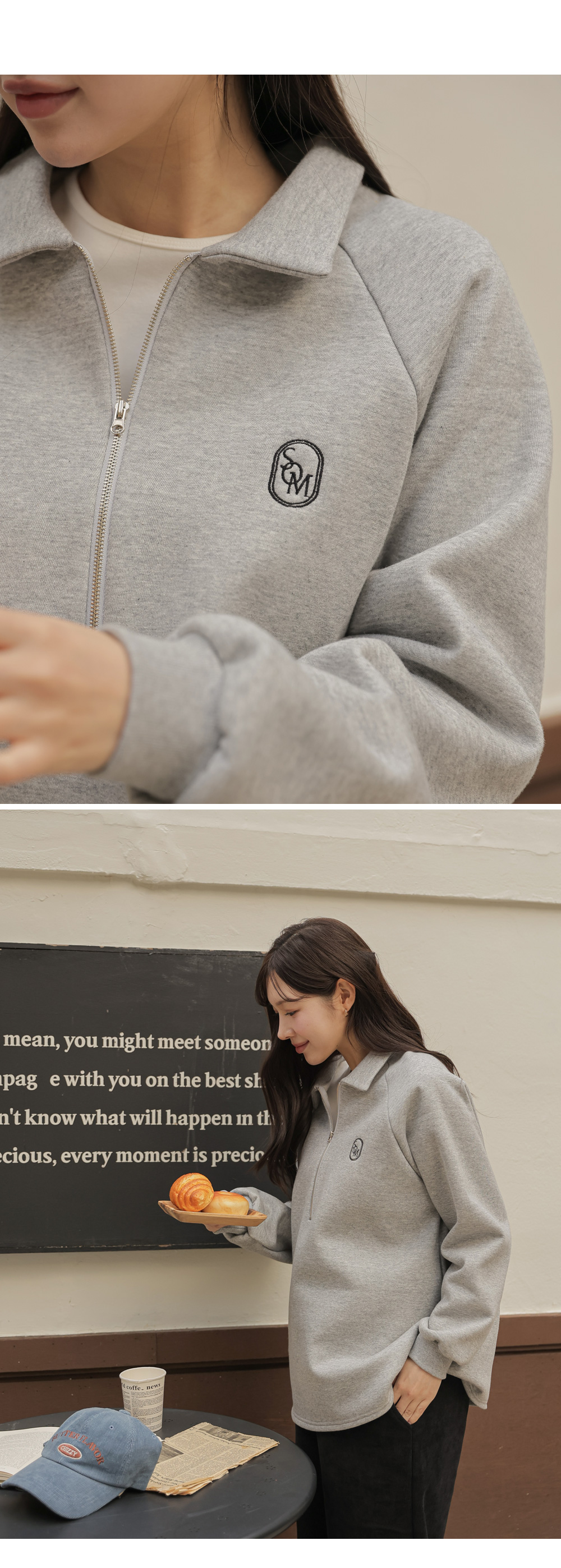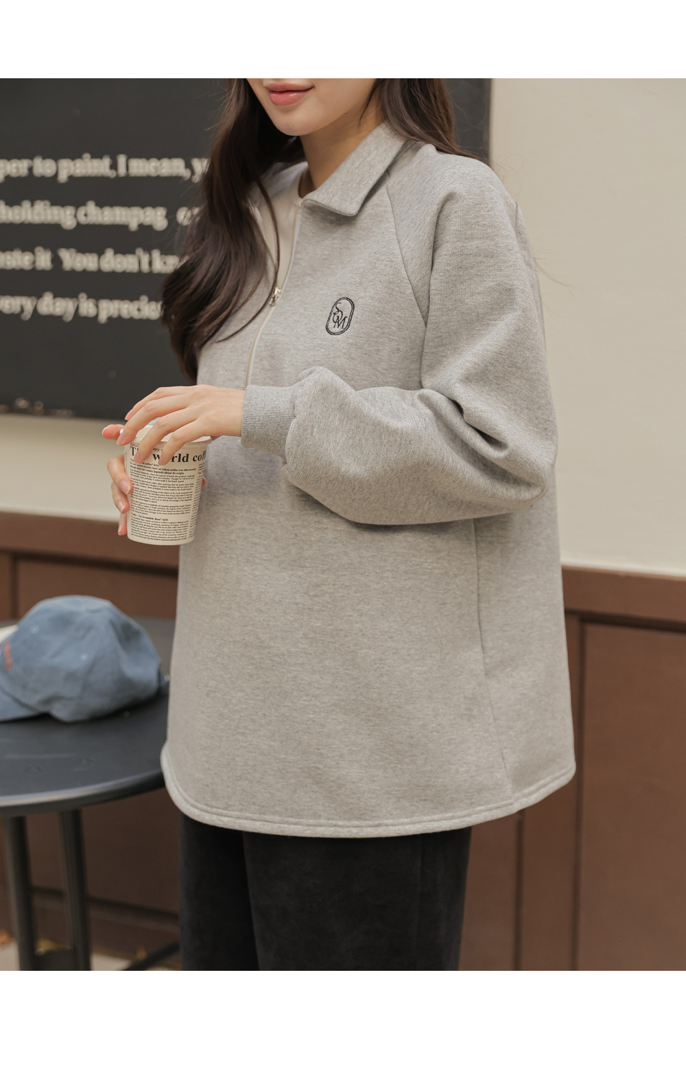 [Opening Special] [Thick Fleece/Good Fit] [S-made] Maternity*Embroidered Half-zip Collar Fleece Maternity T-shirt