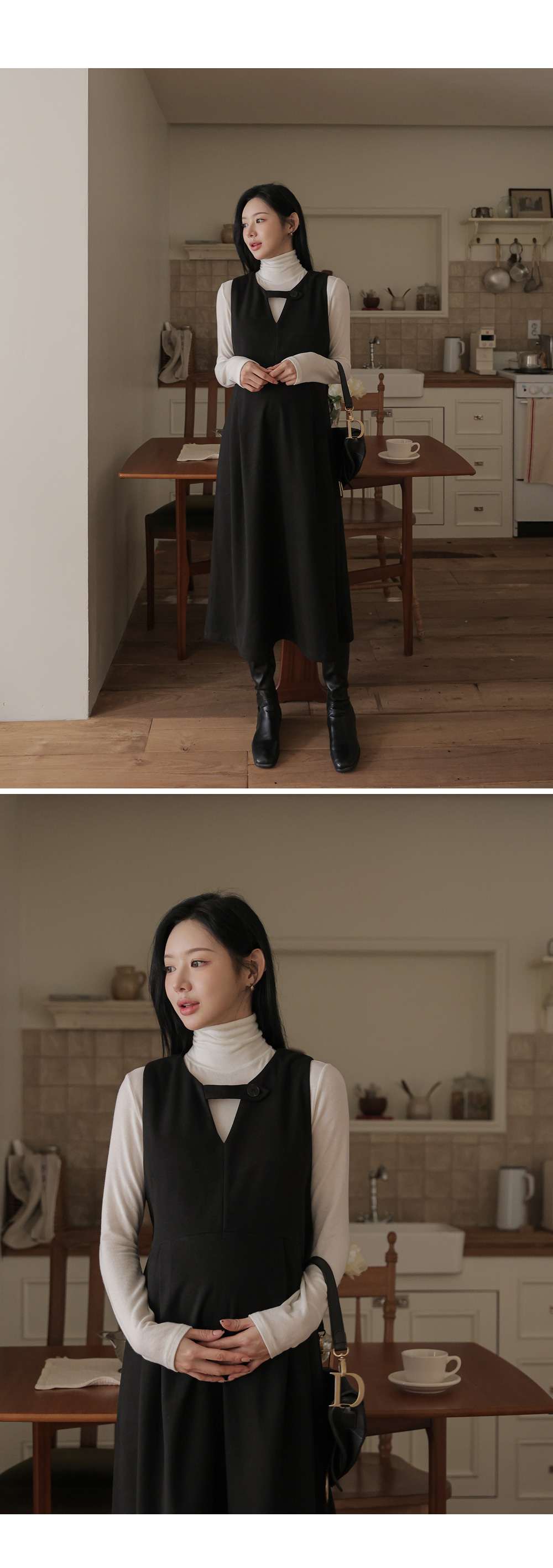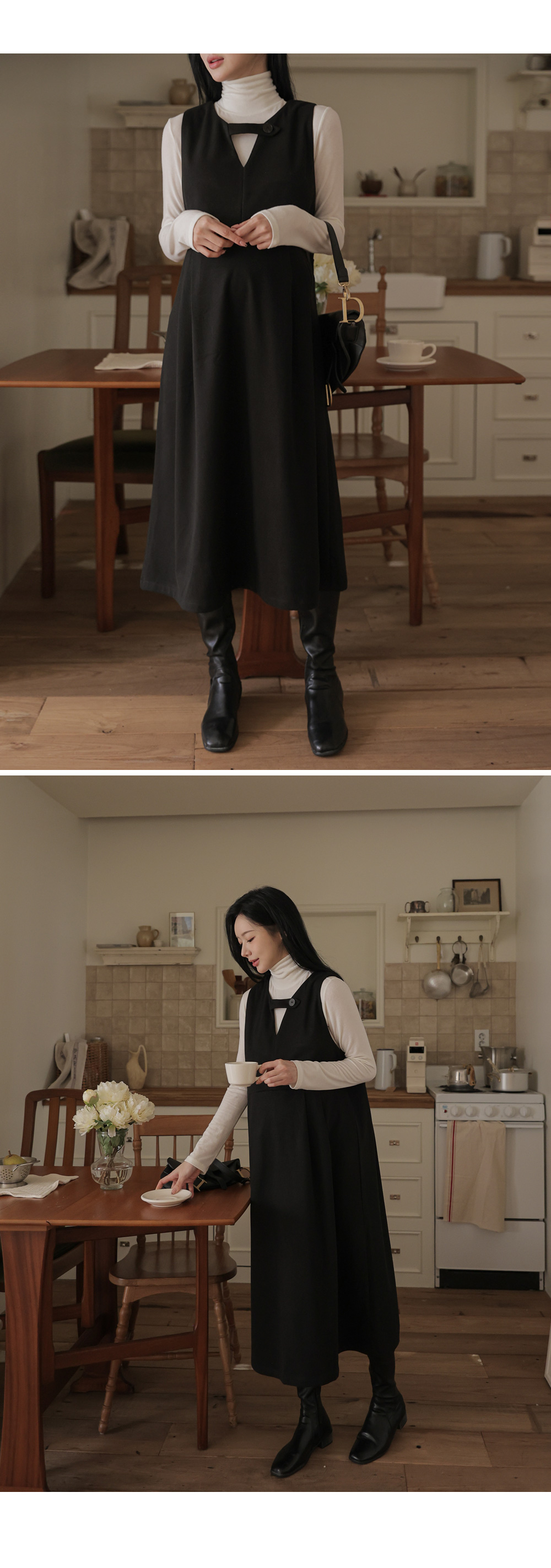 [Opening Special] [Warm Fleece/Layered] [S-made] Maternity* V-neck B-neck Point Layered Maternity Dress