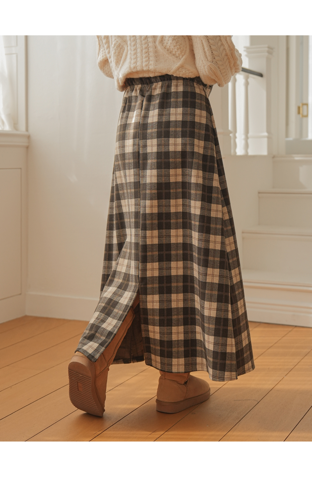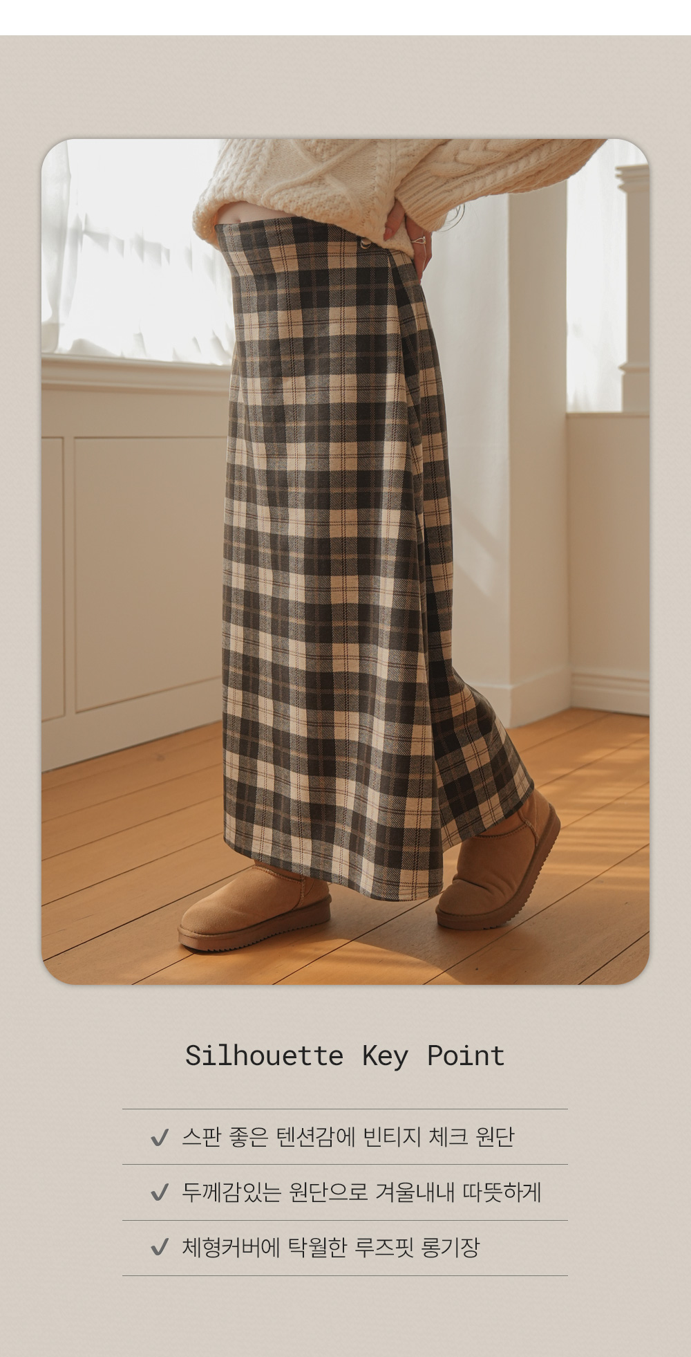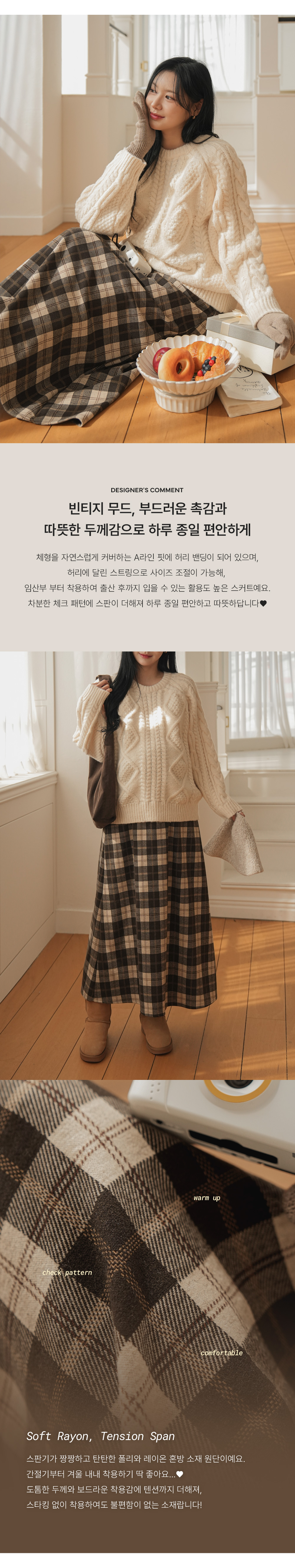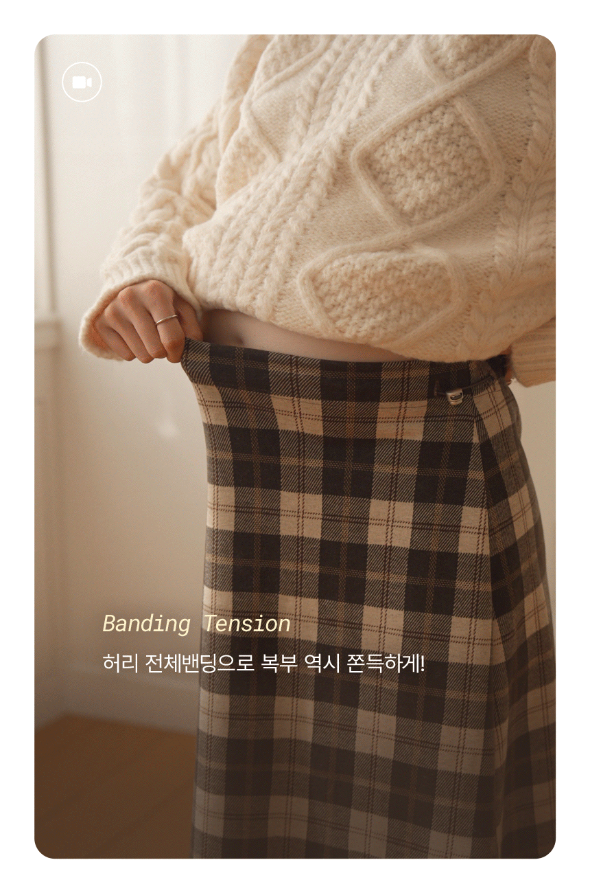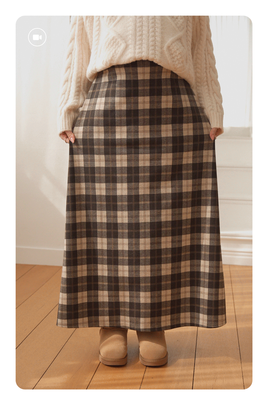 Full band type Vintage Check Patterns Skirt Added warmth and tension!