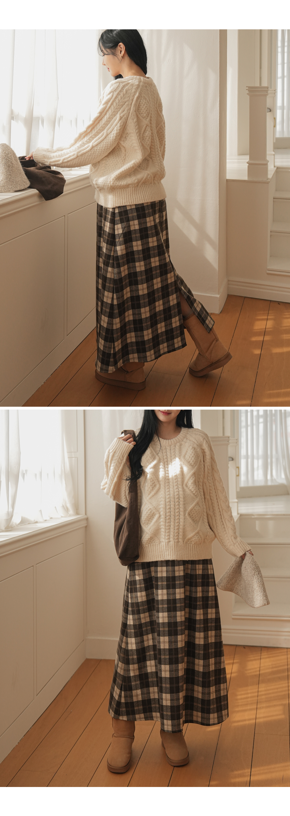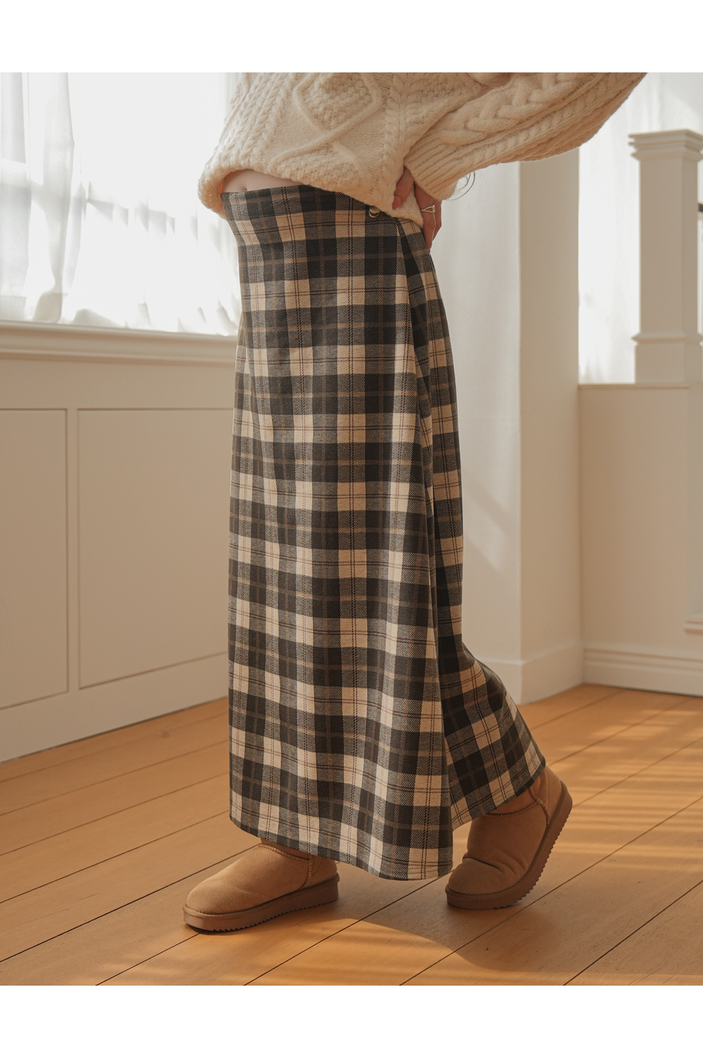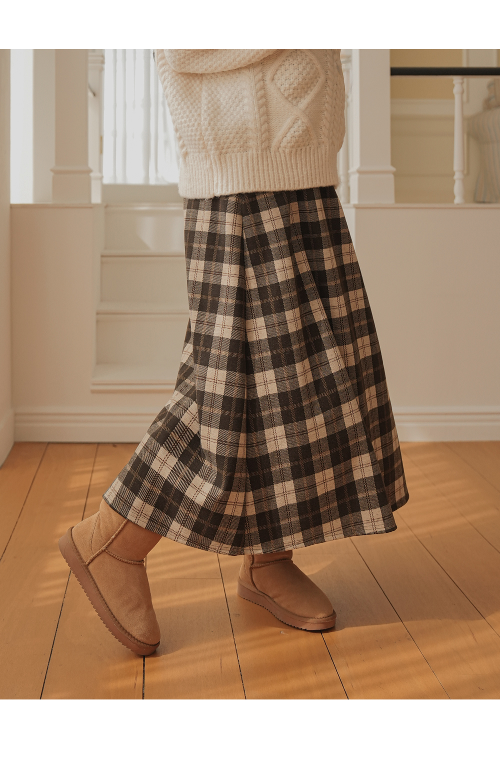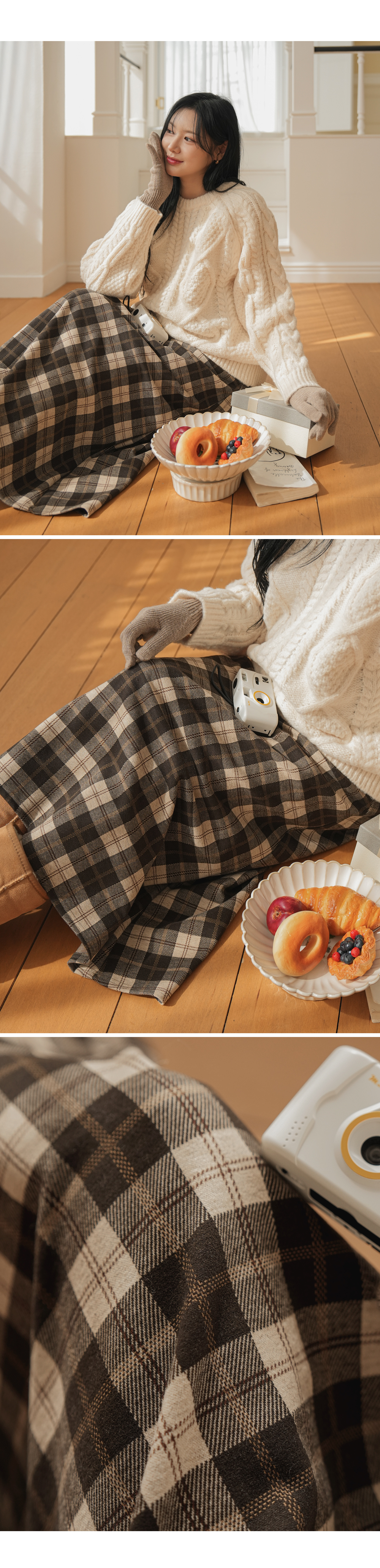 Full band type Vintage Check Patterns Skirt Added warmth and tension!