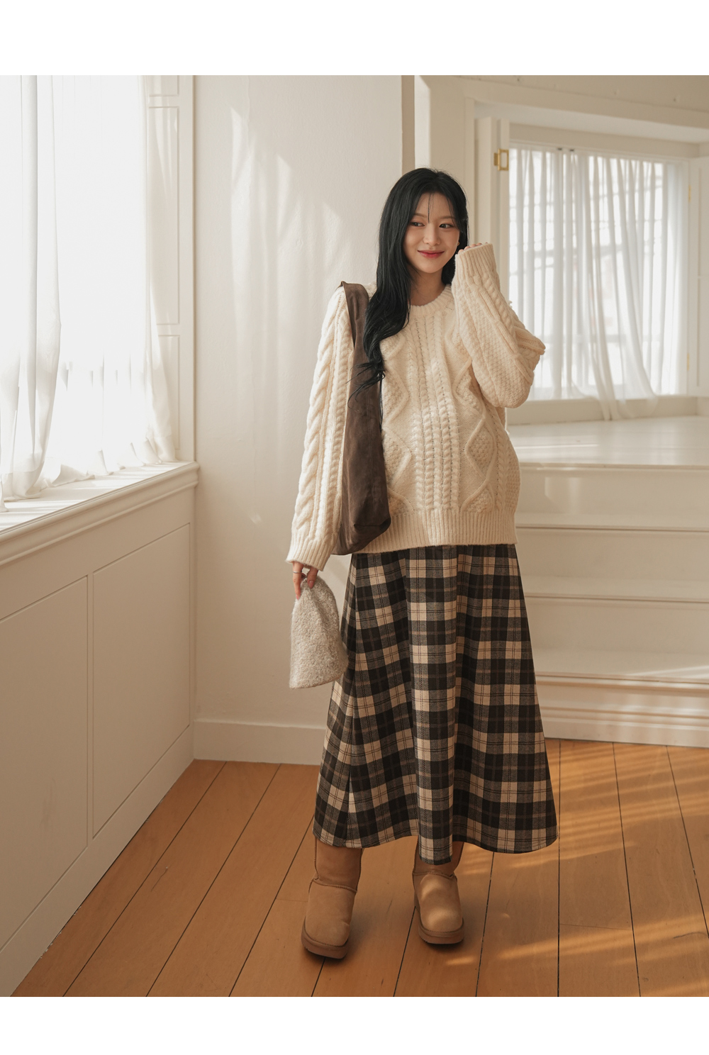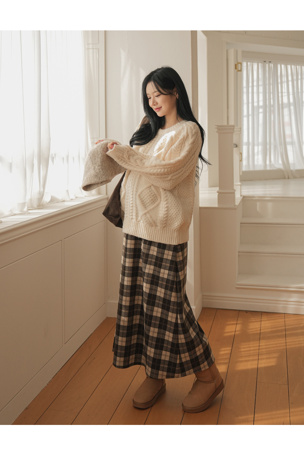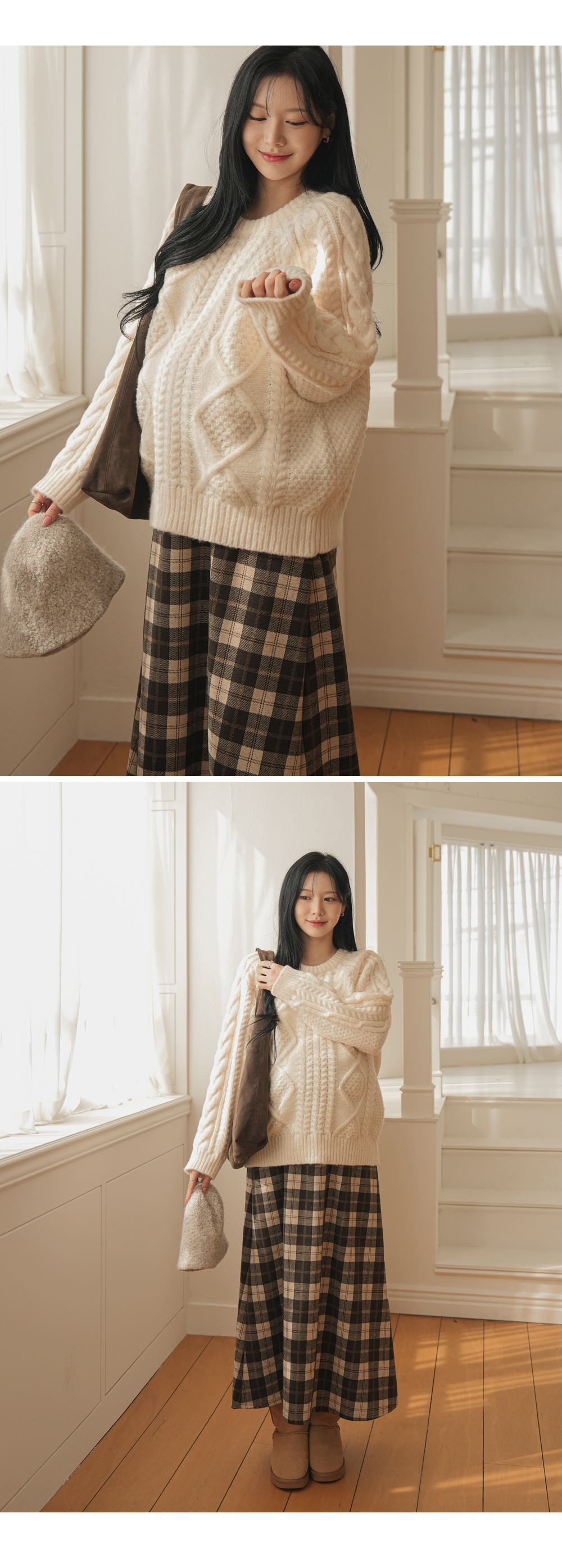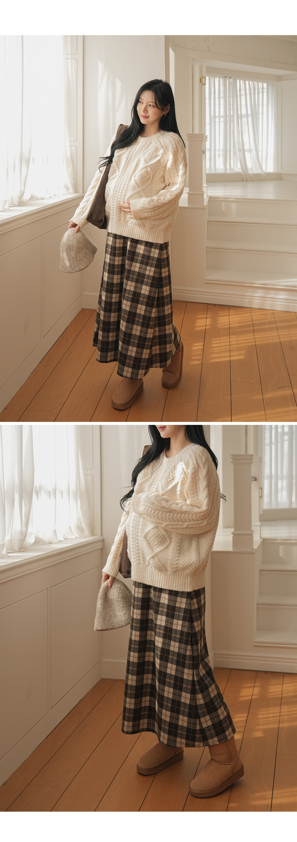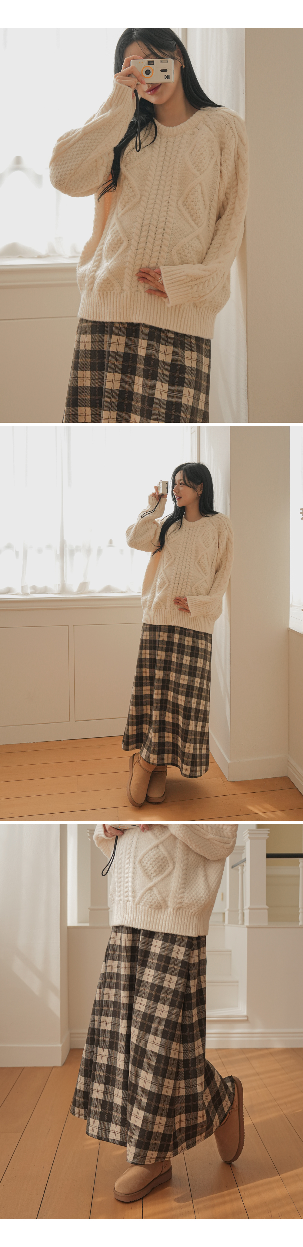 Full band type Vintage Check Patterns Skirt Added warmth and tension!